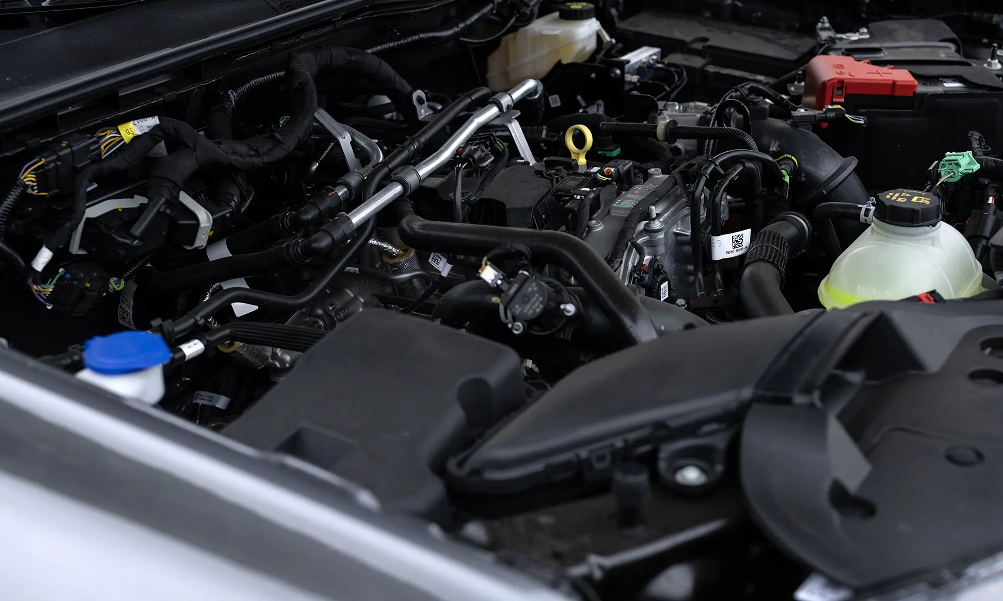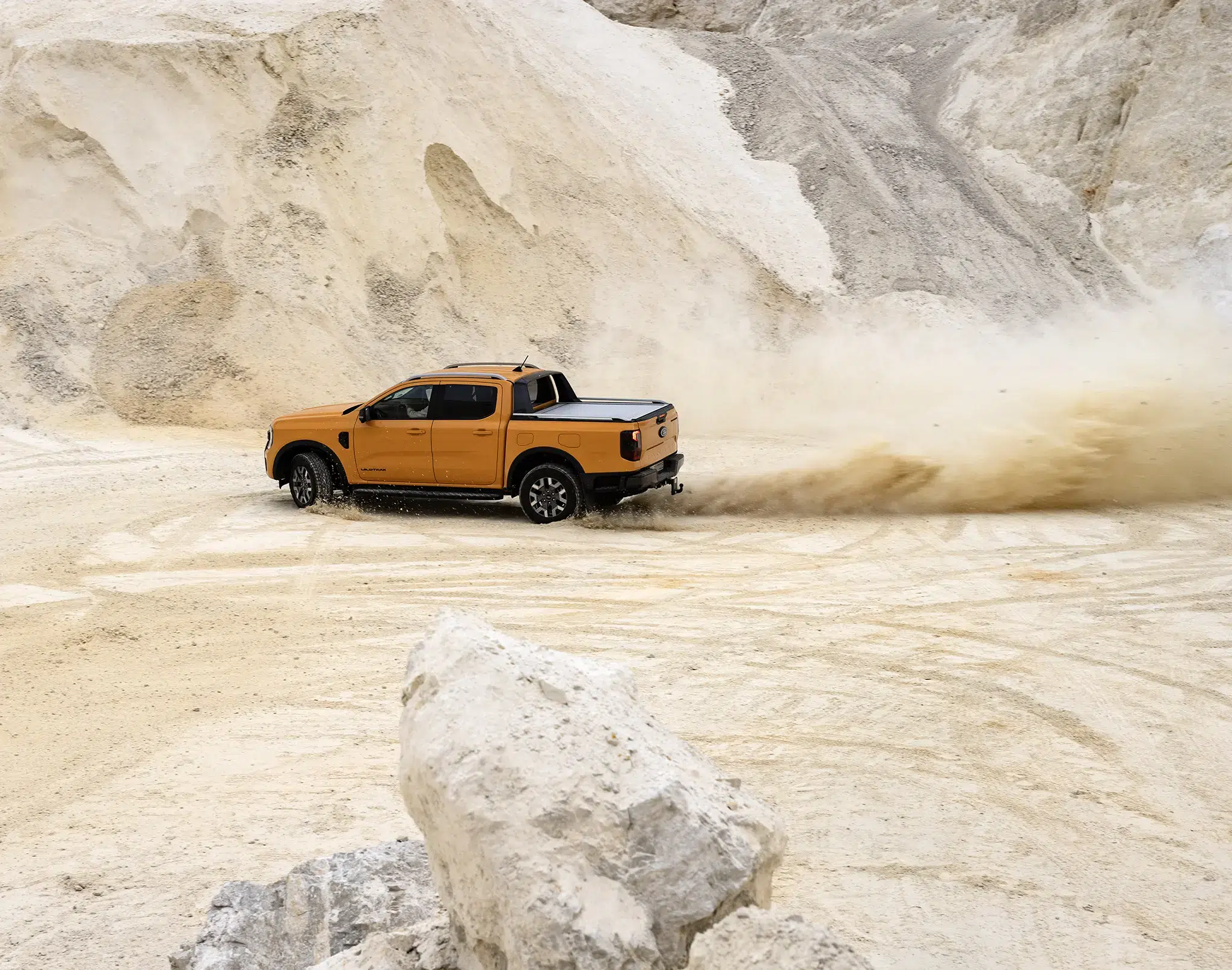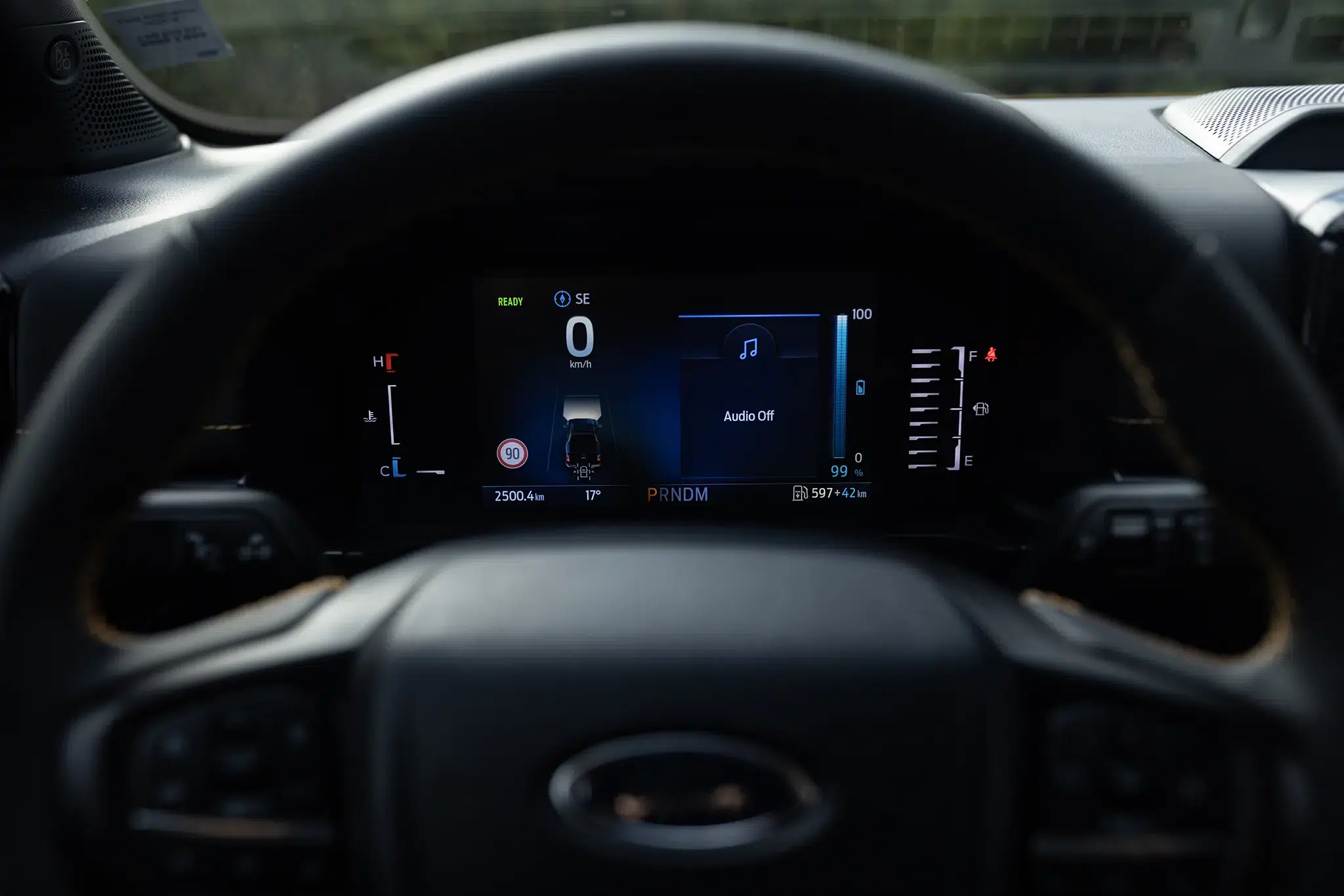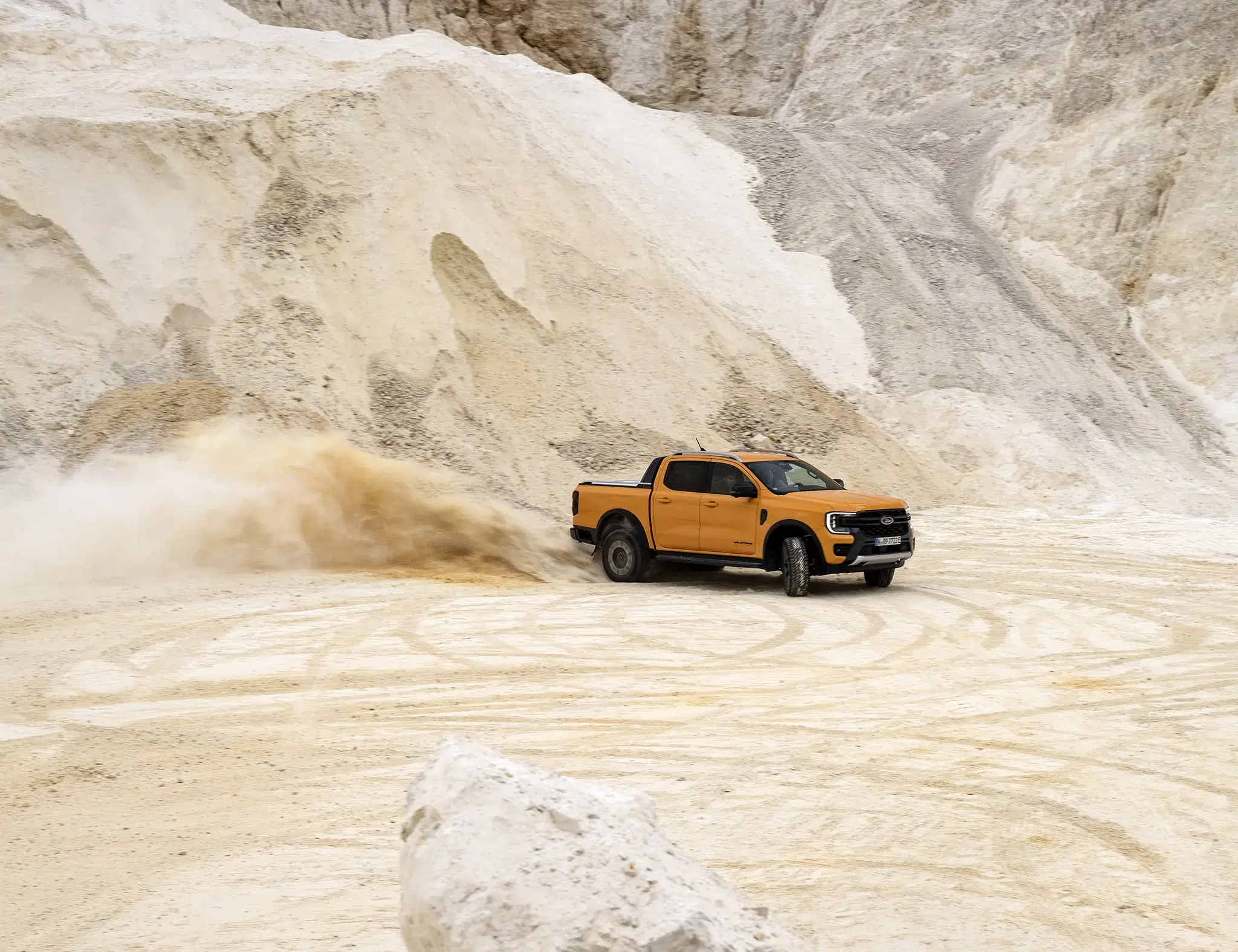 A hajtáslánc alapját a 2,3 literes, négyhengeres benzinmotor adja, ami a Focus ST-ből lehet ismerős. Ám a 10 fokozatú automatikus sebességváltóba beszereltek egy villanymotort. Ez a megoldás kifinomult és kényelmes működést eredményez. Amellett, hogy észrevétlenül vált a benzines és az elektromos hajtás között, az új megoldás azt is lehetővé teszi, hogy az alapáras kétzónás klímaberendezés továbbra is működjön az elektromos forrásról, amikor a start-stop rendszer egy piros lámpánál vagy az araszoló forgalomban leállítja a benzinmotort. A prémium fejhallgatókhoz hasonló aktív zajszűrés pedig a hajtás fajtájától függetlenül is rendkívül csendessé teszi az utasteret, főleg a dízel változatokhoz képest. A futóművet is a nagyobb tömeghez hangolták, de igazából nem érezni különbséget, sem közúton, sem terepen. A szokásos, létravázas konstrukciókra jellemző viselkedést mutat a Ranger.