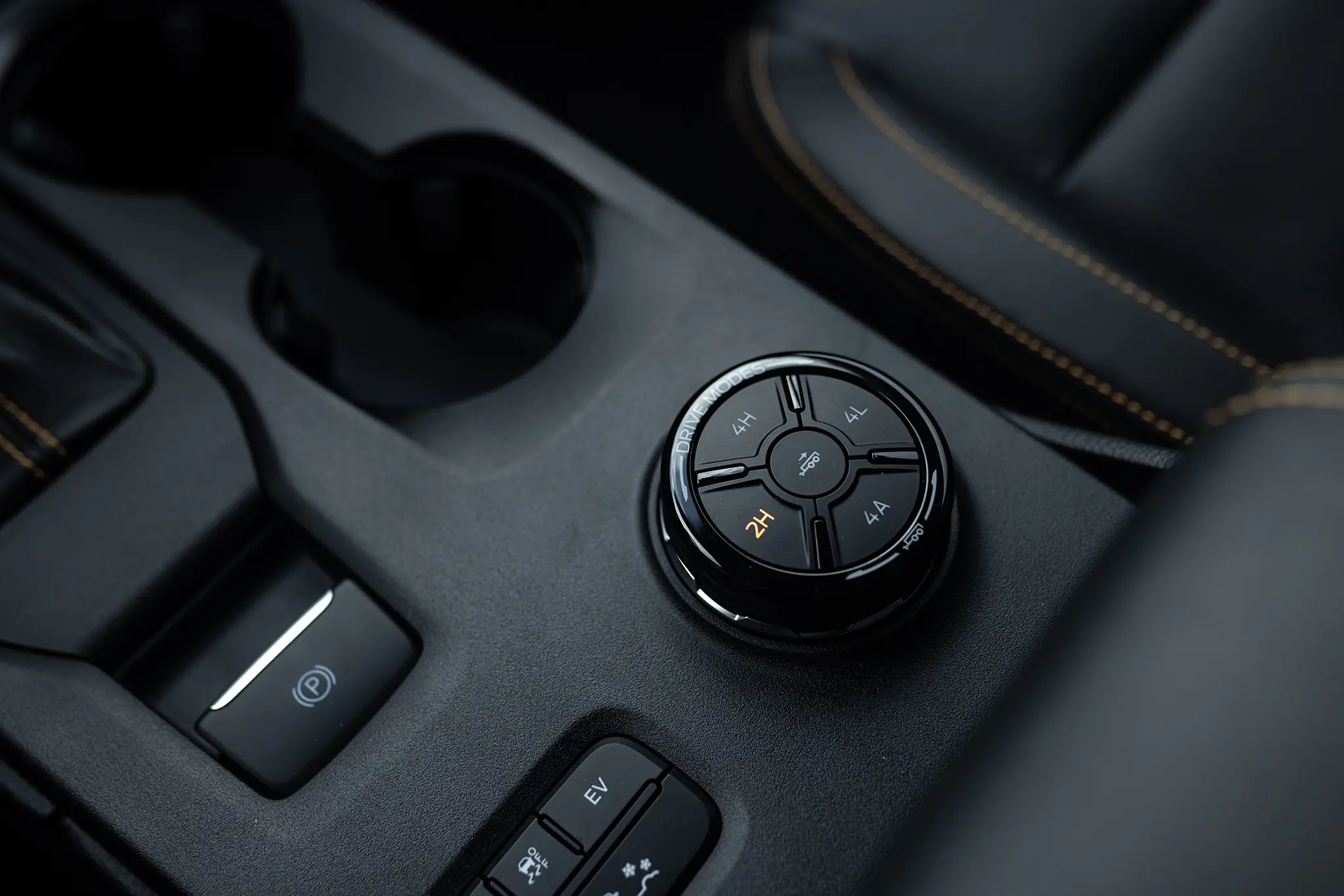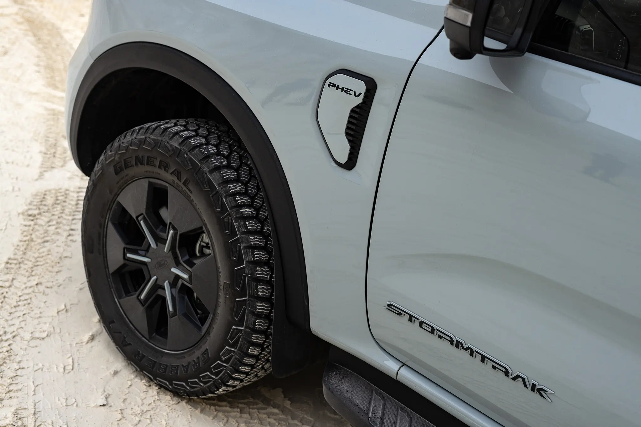 Bent is minden a megszokott, igényes anyaghasználat, kellemes atmoszféra a Wildtrak és a Stormtrek csúcsváltozatokban. Maradt a függőlegesen elhelyezett, 12 colos közpinti érintőképernyő és a 8 colos digitális műszeregység is. Az egyetlen eltérő elem az EV gomb a kardánalagúton, az üzemmódválasztó mellett. Ezzel lehet kapcsolni a full villany, az "áramtartalékoló", illetve a motor általi visszatöltés funkciók között.