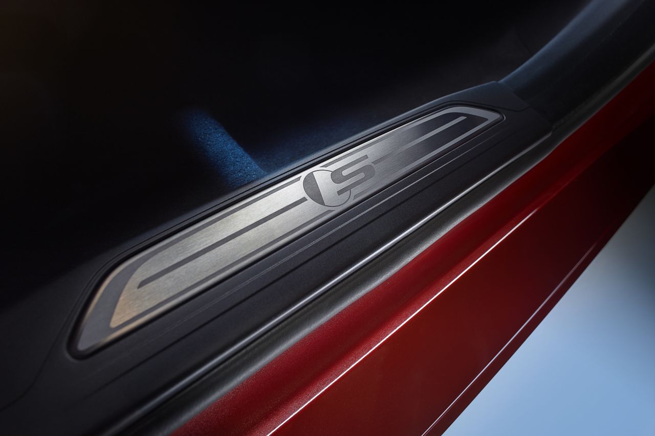 S-es jegyek: kettős kipufogóvég a sportos lökhárítóban, jelölt küszöbborítás, logó a méhsejtes hűtőmaszkon