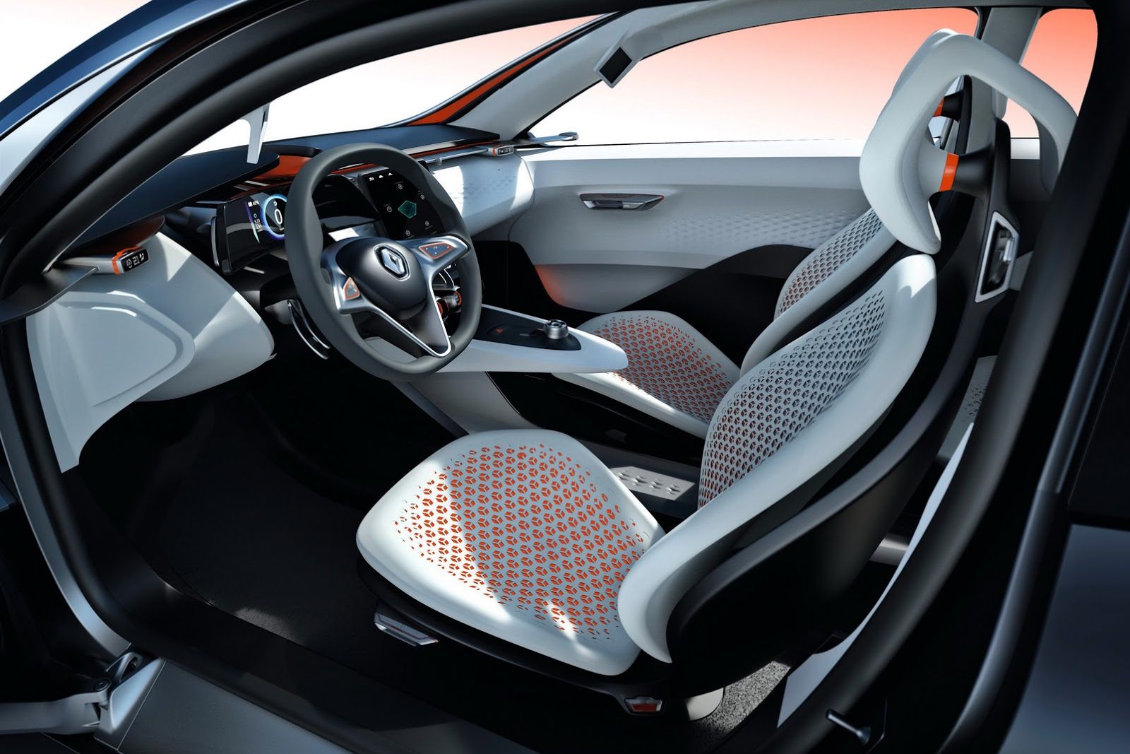 Méretadatok egyelőre nincsenek, az viszont jól látható, hogy a Hyundai Velosterhez hasonlóan a sofőr oldalán egyetlen, az utasén két, egymással szembe nyíló ajtó van a független négyüléses utasterű Eolabon. A panorámatetős, meredek farú karosszéria is egyedi, de még érdekesebb a hajtáslánc. Az 1 l/100 km-esnek és 22 g/km CO2 emissziójúnak mondott ciklus szerinti étvágy ugyanis egyértelműen arra irányítja a figyelmet. A Renault szerint 10 év múlva is lesz benzinmotor az autókban, az Eolab gépházába 1,0 literes, 75 lóerős, 95 Nm nyomatékú szívó benzinmotor kerül (az elképzelések szerint) és van benne egy 67 lóerős, 200 Nm állandó nyomatékú villanymotor is. Váltója 3 fokozatú, kuplung nélküli, s a villanymotort is magába foglaló. Utóbbit 6,7 kWh-s lítium-ion akkumulátor táplálja, a hibridrendszer kombinált teljesítménye 122 lóerő, azaz az egységesen az első kerekeket hajtó motorok ereje részint összeadódik. A konnektorból tölthető hibrid 60 kilométert tud megtenni emissziómentesen, utána és 120 km/órás tempó felett mindenképp jár a villanymotor is. Ami pedig a fogyasztást illeti: az 1 l/100 km érték telített akkukkal indulva értendő, akkor 60 kilométert emissziómentesen, majd 40 kilométert 1 liter benzinnel tesz meg, lemerült akkumulátor esetén 2,5 liter üzemanyag is kell 100 kilométerre, ami még mindig igen barátságos érték.