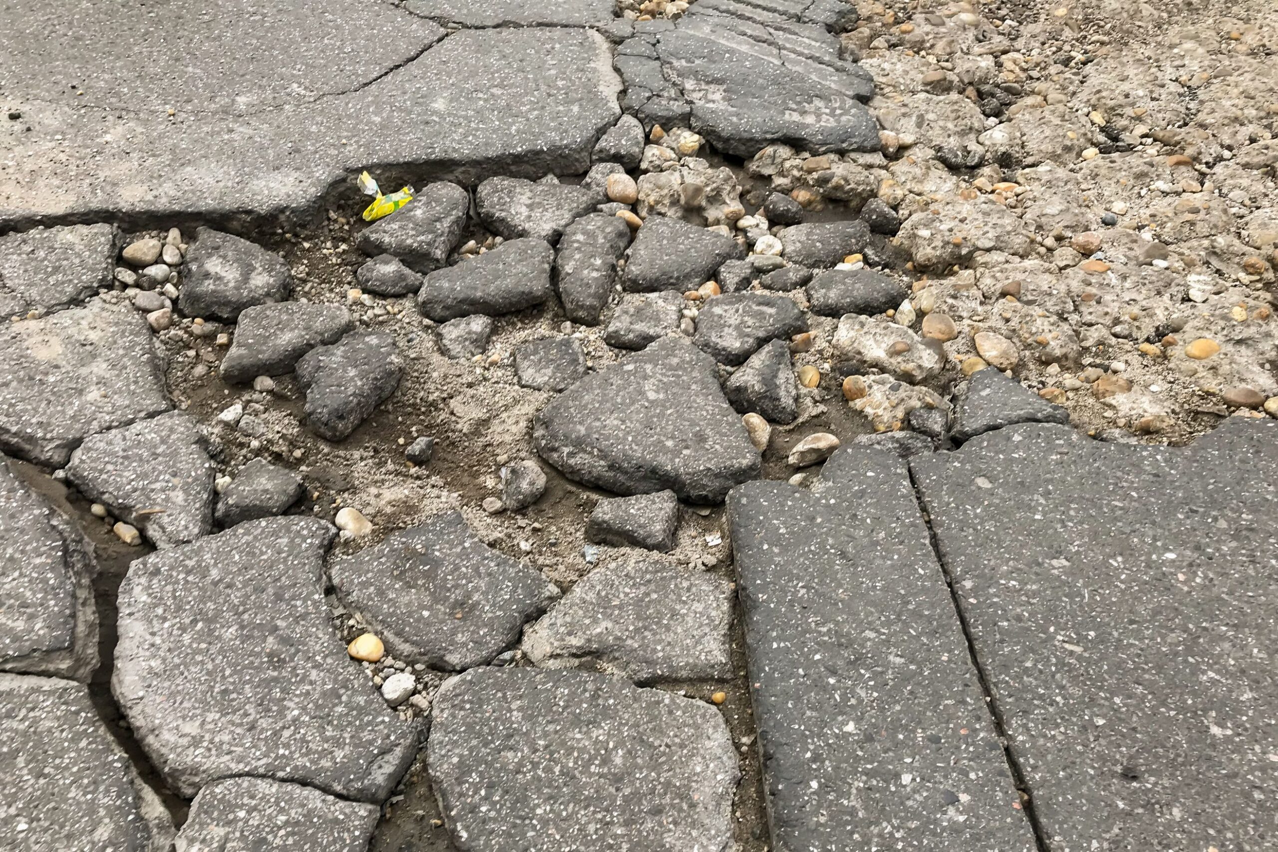 A jó idő beköszöntével a téli, ideiglenes útjavítások után végre visszatérnek a közutasok a hosszabb távú megoldásokra, hogy megszüntessék a képen látható úthibákat