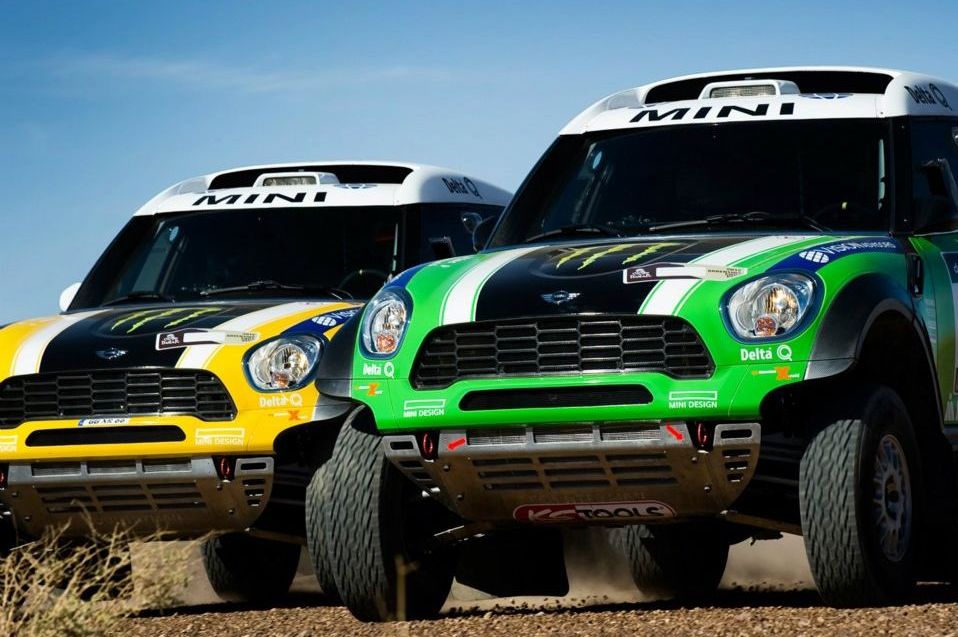Countryman-alapú járgány persze voltaképp BMW, s már tavaly is meglepően szépen hasított. Motorja az utcai modellekből is ismert háromliteres, biturbó dízel óvatos 315 lóerővel és 700 Nm-rel, váltója 6 fokozatú szekvenciális, kasztnija közel 2 méter széles, 2 méter magas és 2 tonna súlyú, szóval legfeljebb nevében Mini. Az X-Raid Team összesen 5 Minivel és 3 BMW-vel támad, s akik még - Peterhanselen kívül - győzelemre vihetik a Minit, az az ugyancsak rendkívül rutinos Krzysztof Holowczyc vagy Nani Roma.