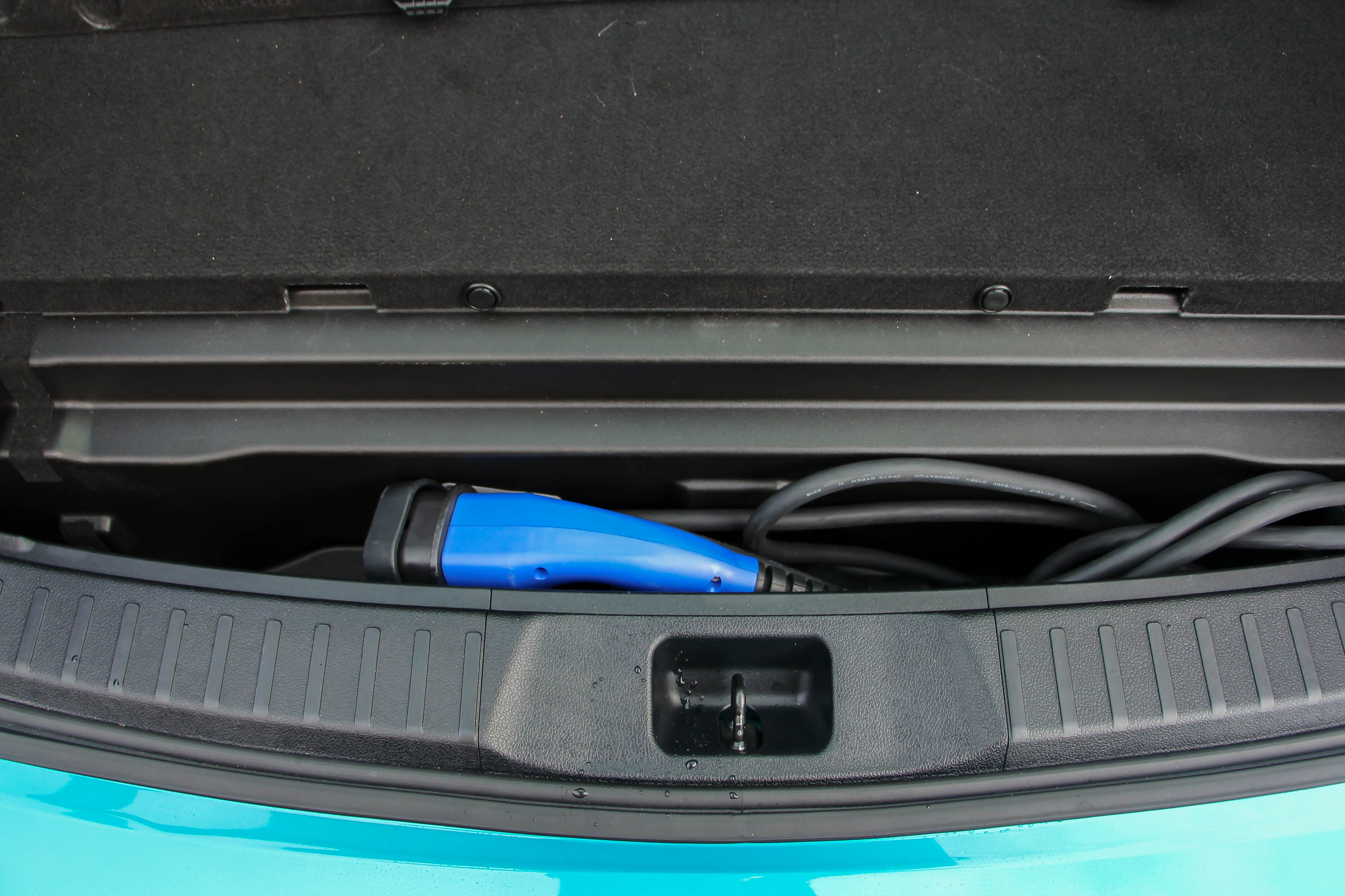 A csomagtér végében dedikált rekeszbe rakható a töltő, nem kell a csomagtérben kallódnia. A hátsó ülések közötti könyöklő - az elsőhöz hasonlóan - pohártartókat is ad