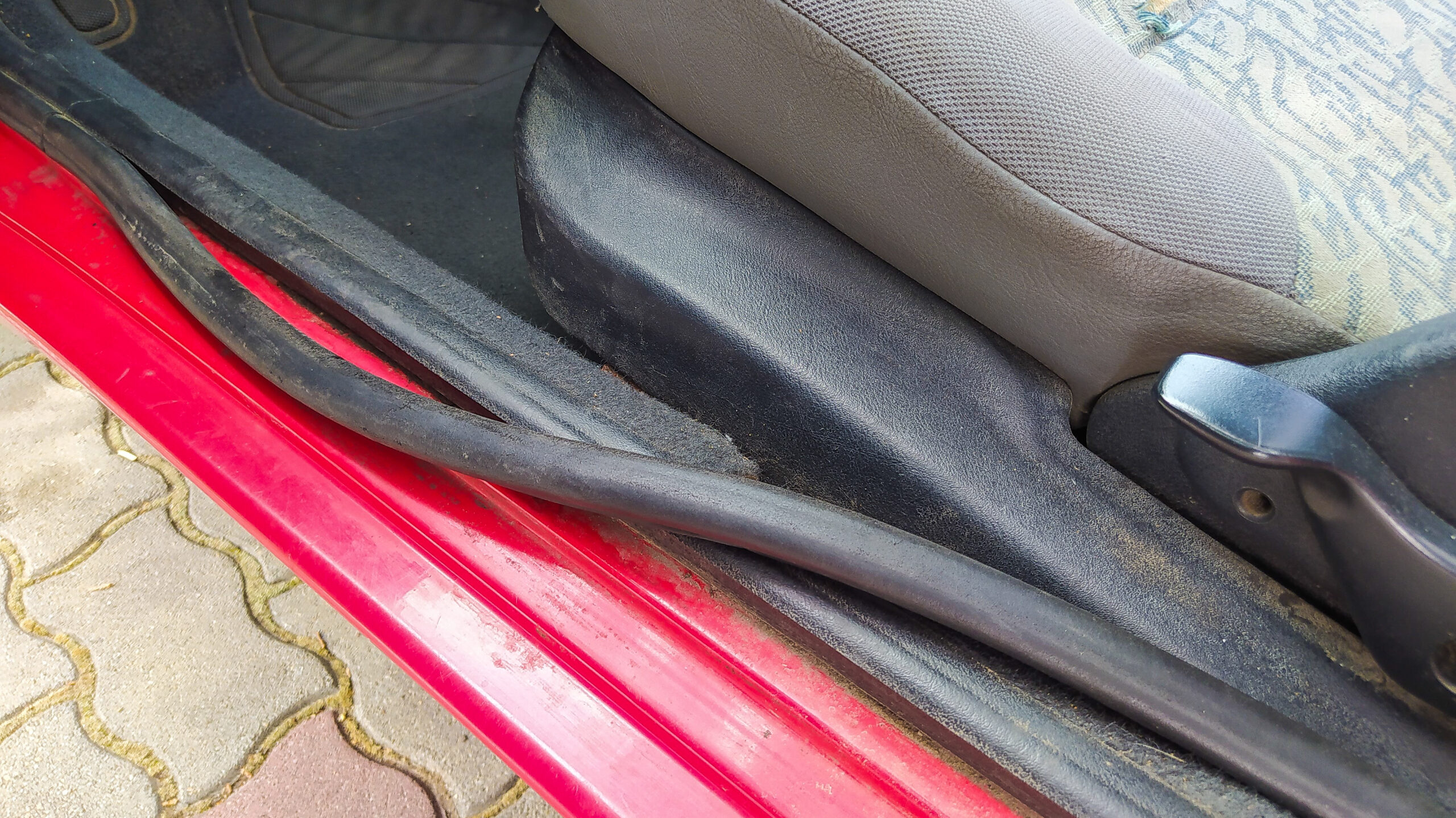 Az ülés inkább csak szakadt, mint kiült, váltószoknya nincs a golflabdában végződő karon, klíma nem is volt ebben a példányban, de legalább utólagos elektromos ablak került bele