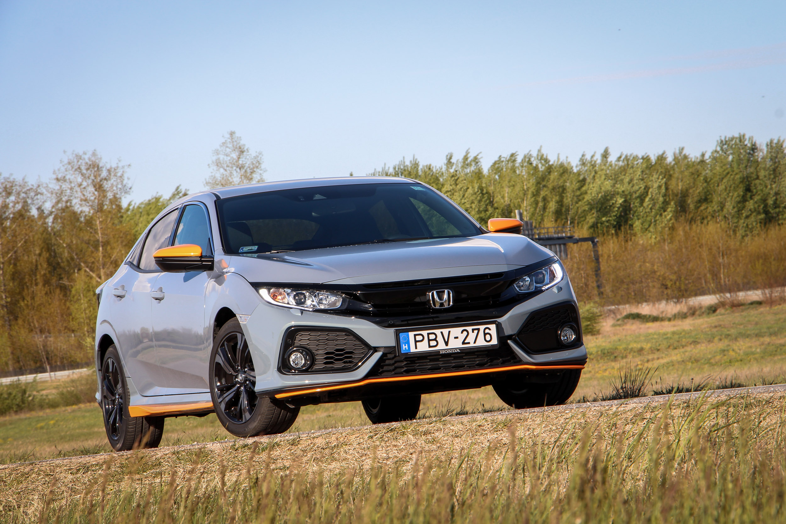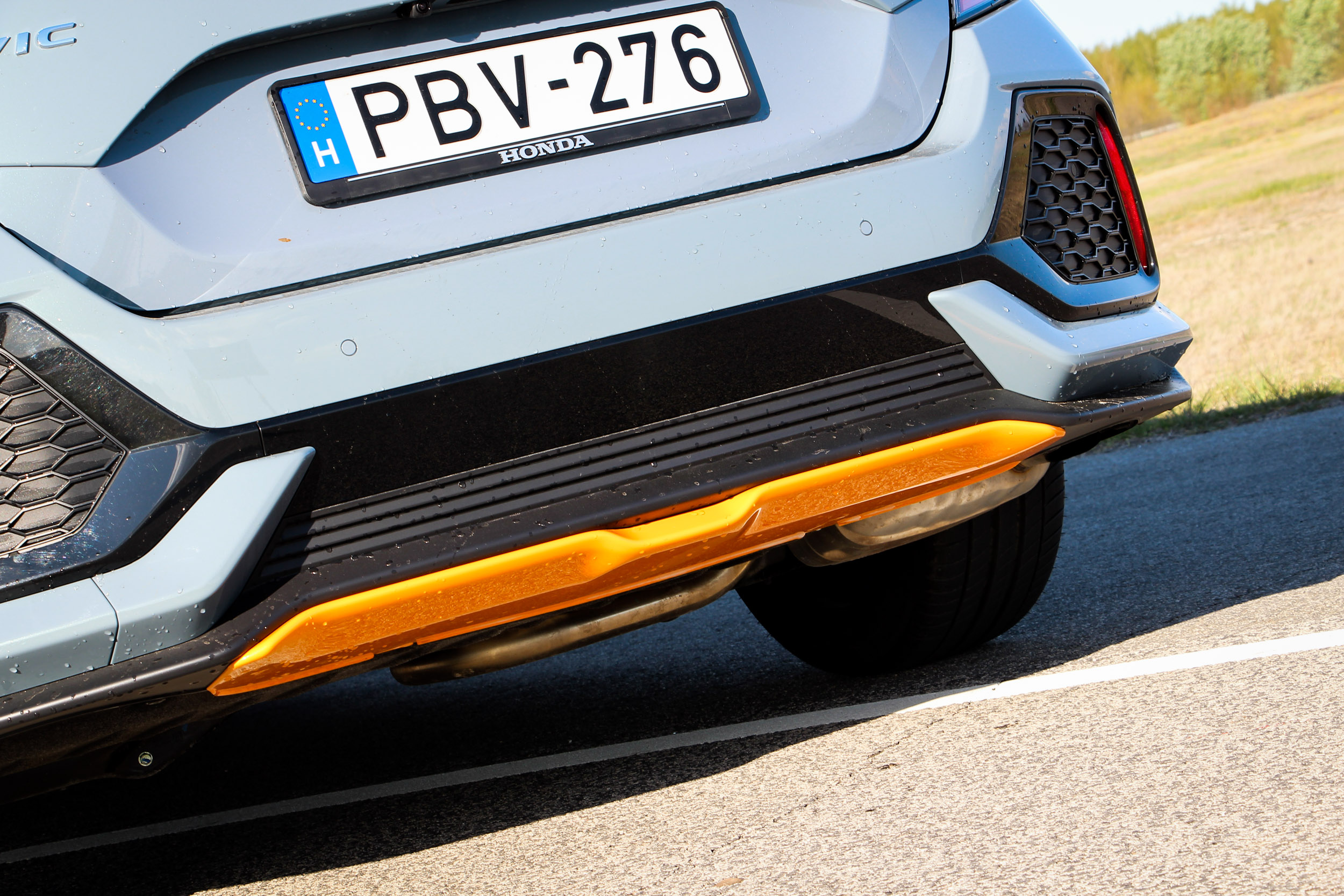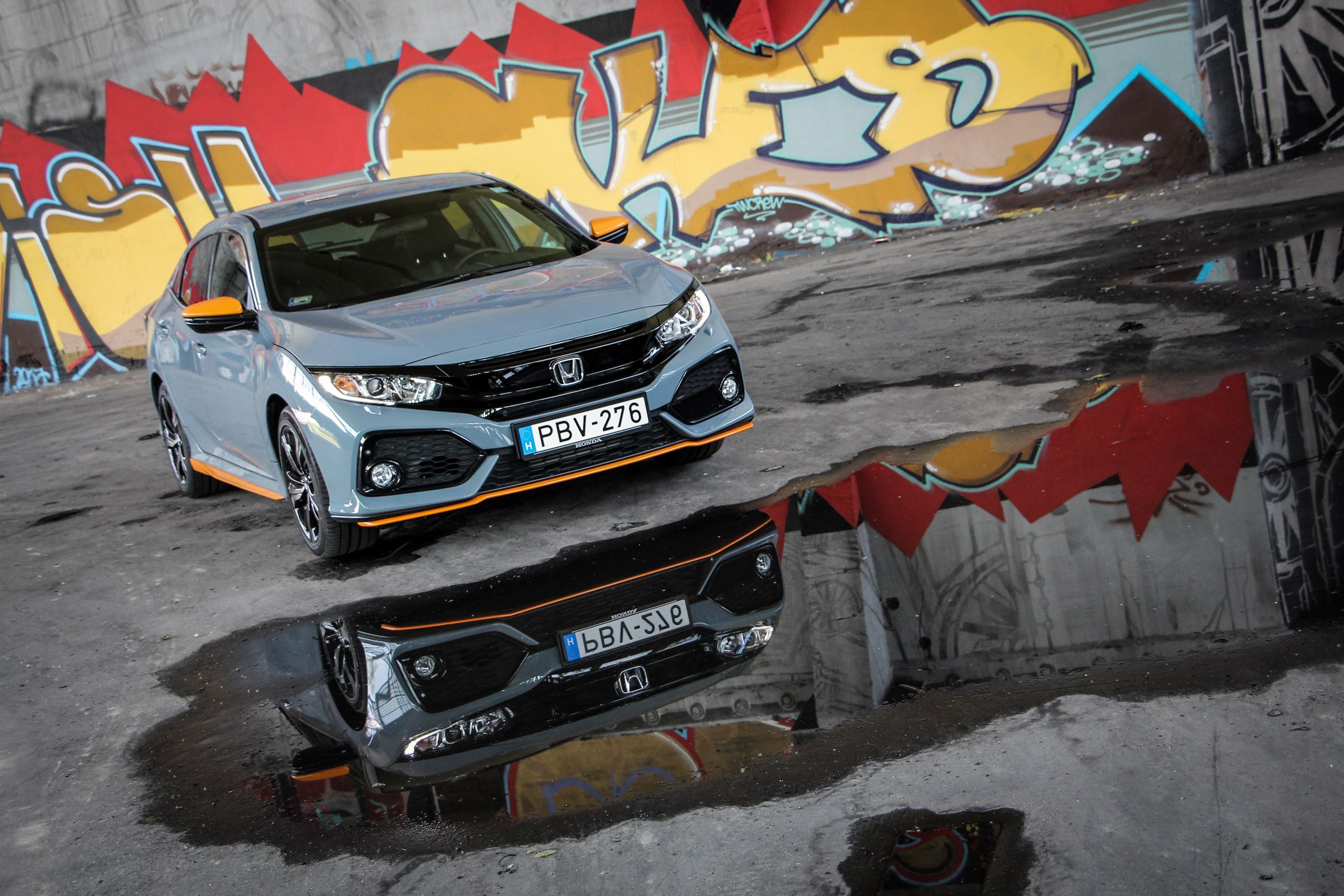 Hogyan tovább? A Hondánál folyton kísérleteznek a Civickel, minden generáció elég különböző, és folyton mást és mást kínál. Ha csak az elődöt nézzük, ott volt a fergetegesen praktikus és rengeteg helyet kínáló kombi, valamint dízelmotor is. Az új, 10. generációs Civicnél utóbbi kettőnek vége, ahogy a szívómotoroknak is leáldoztak, helyette viszont szinte minden földrészen ugyanazokat a modelleket forgalmazzák majd. A korábbi szedán egész máshogy nézett ki, mint az ötajtós, most nagyon hasonló mindegyik modell, ráadásul nálunk is forgalmazzák, árlistája is elérhető, de lesz kétajtós rendes nyújtott kupé is. Formája persze megosztó, de sokkal autószerűbb a karakter, nem annyira vasalóforma, mint az elődök. Lehet durva, vagy ilyen játékos megjelenésű, mint ezekkel a narancssárga kiegészítőkkel, amikből bentre is jutott, bár nekem nem hiányoznának.