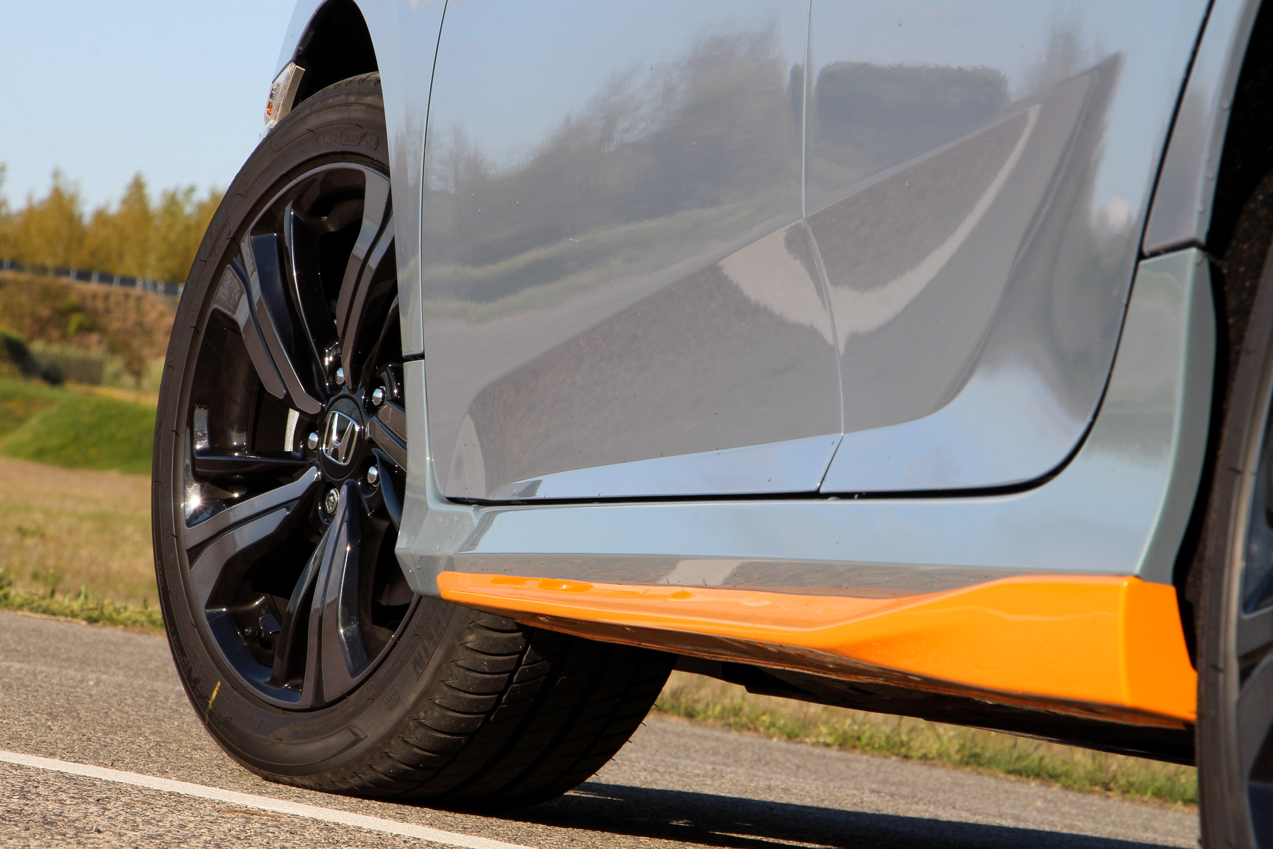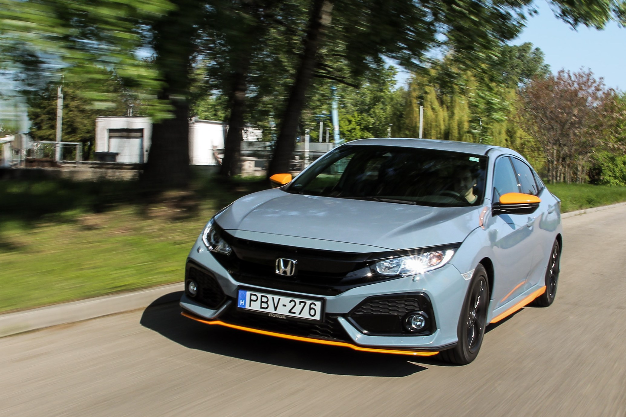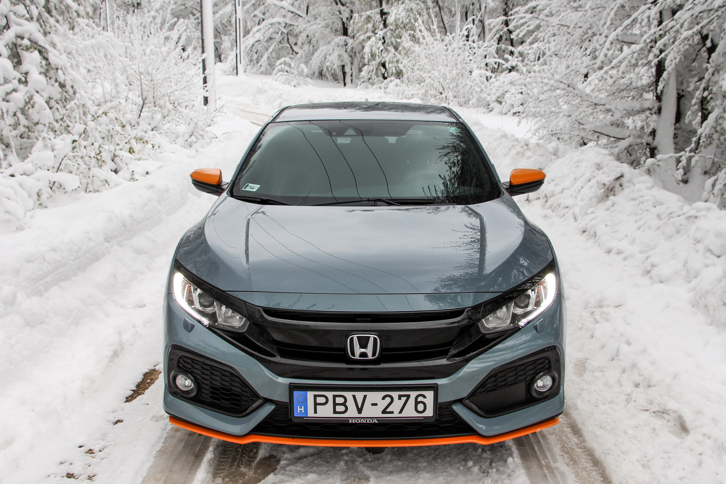 Hogyan tovább? A Hondánál folyton kísérleteznek a Civickel, minden generáció elég különböző, és folyton mást és mást kínál. Ha csak az elődöt nézzük, ott volt a fergetegesen praktikus és rengeteg helyet kínáló kombi, valamint dízelmotor is. Az új, 10. generációs Civicnél utóbbi kettőnek vége, ahogy a szívómotoroknak is leáldoztak, helyette viszont szinte minden földrészen ugyanazokat a modelleket forgalmazzák majd. A korábbi szedán egész máshogy nézett ki, mint az ötajtós, most nagyon hasonló mindegyik modell, ráadásul nálunk is forgalmazzák, árlistája is elérhető, de lesz kétajtós rendes nyújtott kupé is. Formája persze megosztó, de sokkal autószerűbb a karakter, nem annyira vasalóforma, mint az elődök. Lehet durva, vagy ilyen játékos megjelenésű, mint ezekkel a narancssárga kiegészítőkkel, amikből bentre is jutott, bár nekem nem hiányoznának.