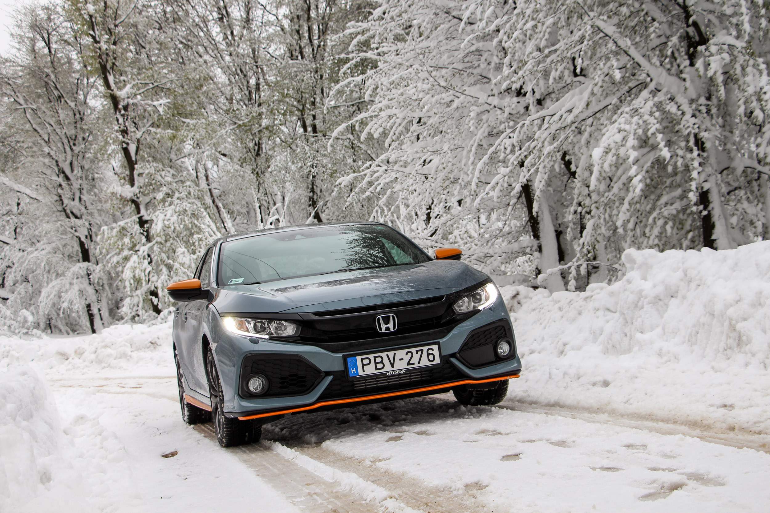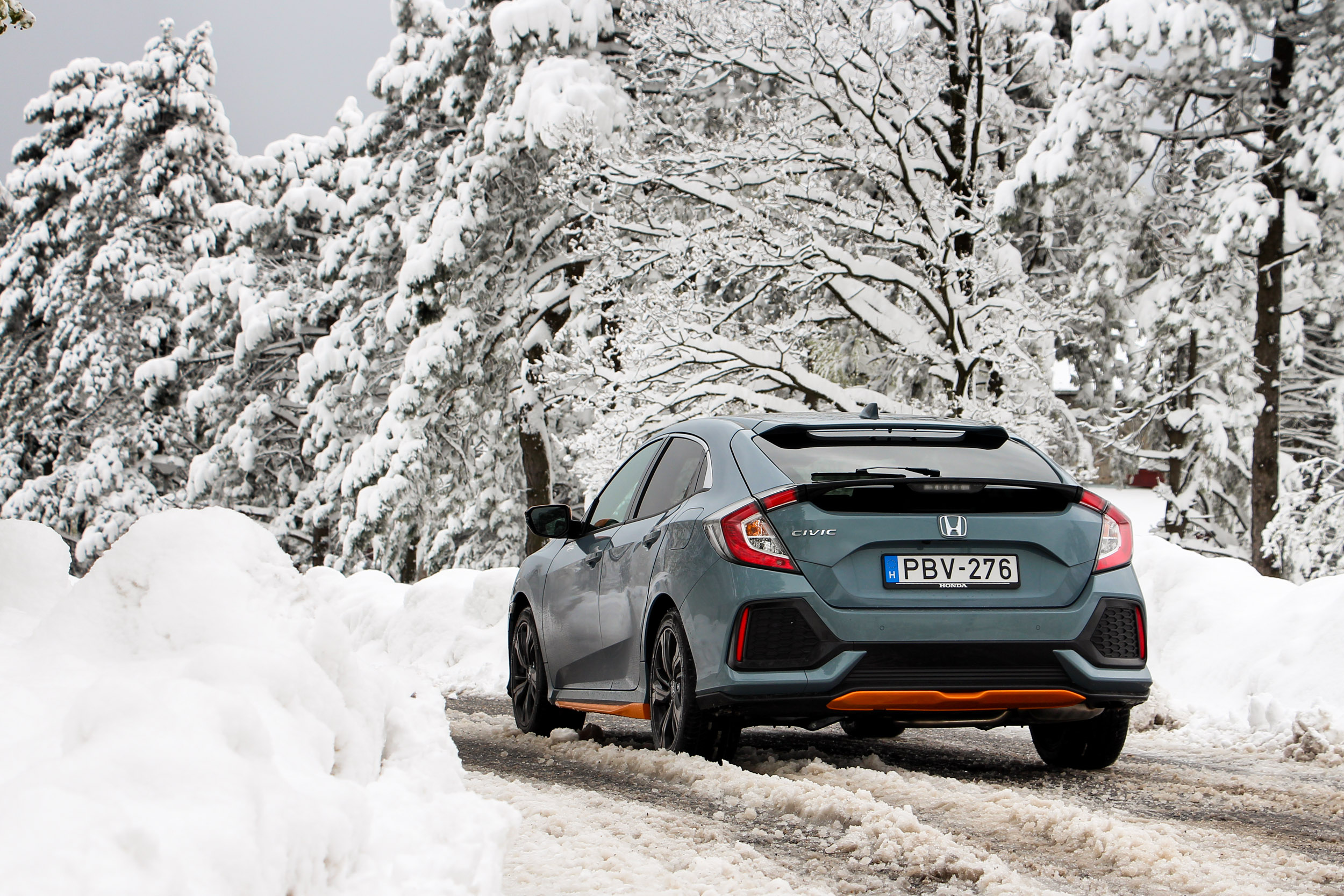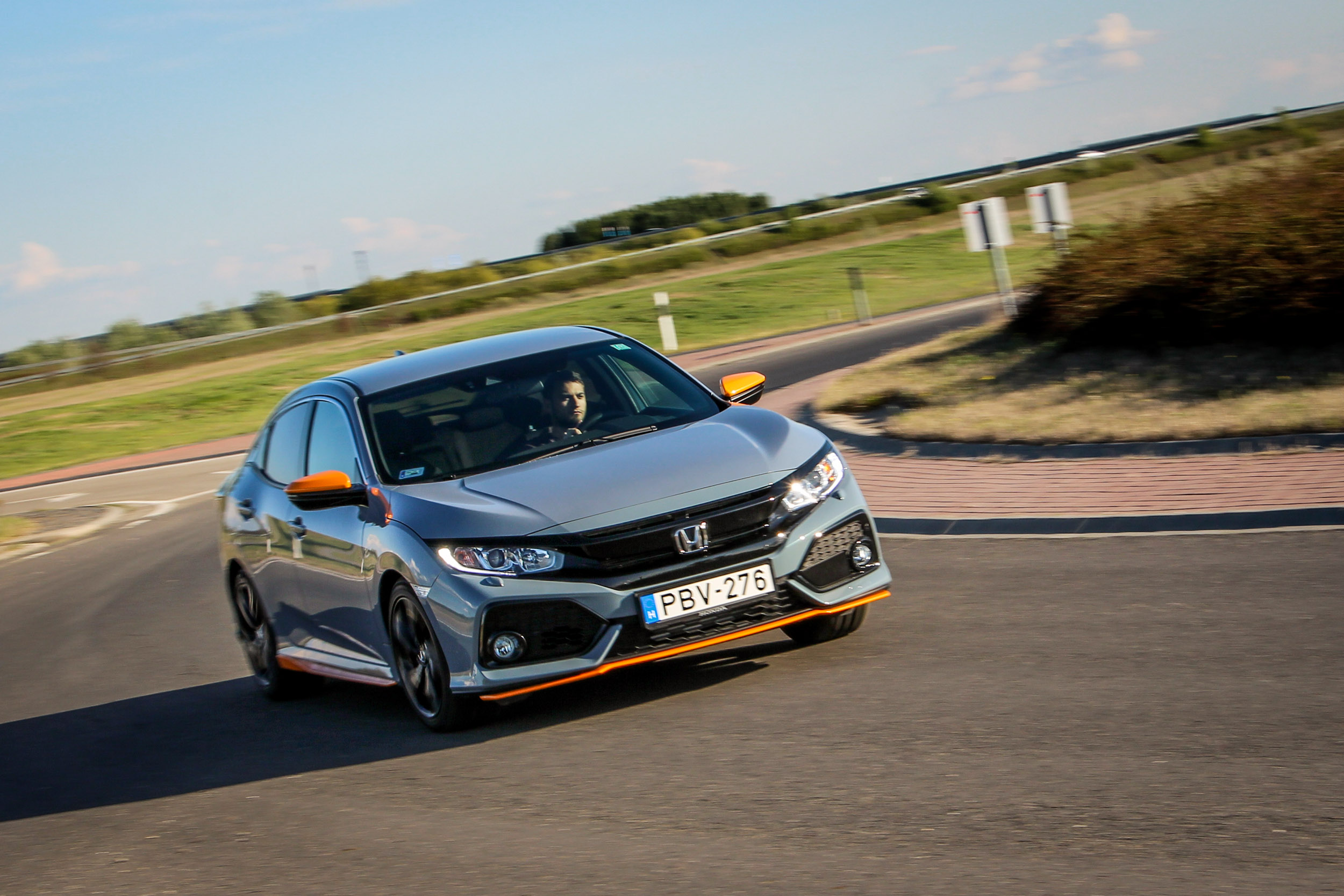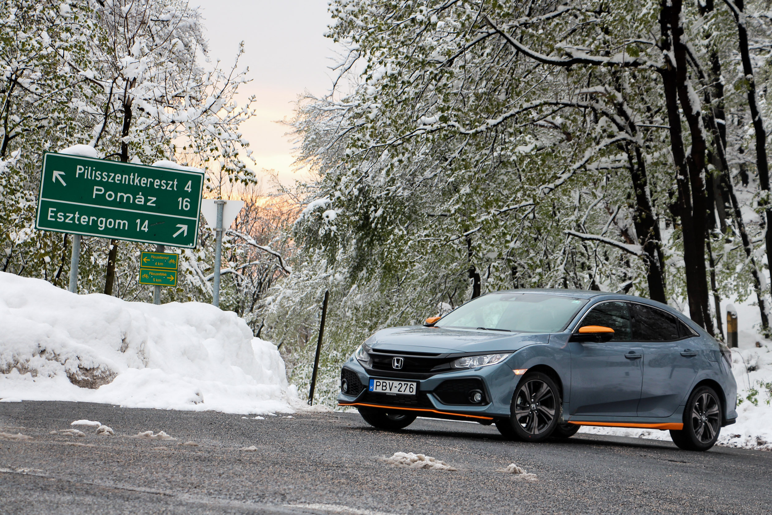Három hengerből nehéz csodát tenni. Vannak olyan pontjai a Civicnek, amik egyszerűen nem lehetnek rosszak, és amiért én személy szerint nem tudtam belekötni az előző tesztautóba. Ilyen a fergetegesen közvetlen, viszonylag keveset forduló kormánymű, vagy a minden körülmények között jól vizsgázó futómű, de még a fura holtjátékkal kapcsolható kézi váltó is élvezhető. Ebbe az 1,5-ös által felállított idillbe rondított bele a háromhengeres. Persze használható, a 129 lóerő jól mozgatja a karosszériát, egy átlagos sofőrnek, vagy mindennapi használatra, városi ingázáshoz elég, teszi a dolgát, és kész. A kuplunggal viszont a kelleténél többet kell játszanunk, rendkívül nehezen kiismerhető motor, nagyon nehéz kitalálni, vajon bírja-e még, vagy vissza kéne váltanunk, de mire el tudjuk dönteni, kettőt is vissza kell kapcsolnunk, mert hirtelen elfogy az ereje.