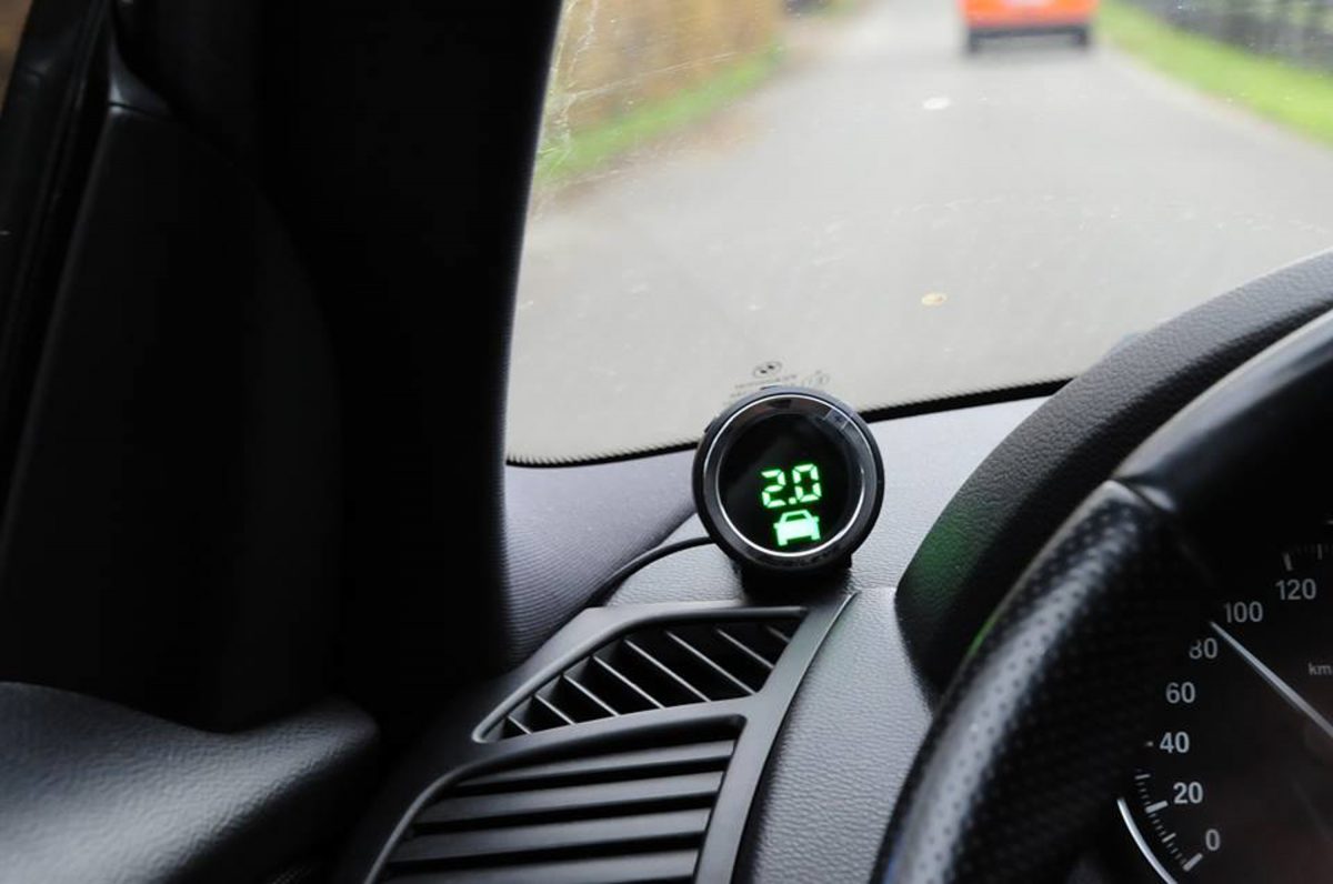 Alacsony követési távolságra figyelmeztetés az i-Cell Mobileye rendszerének kijelzőjén. A beépített eszköz saját GPS-szel is rendelkezik, de az autó szenzoraitól is megkap minden jelet