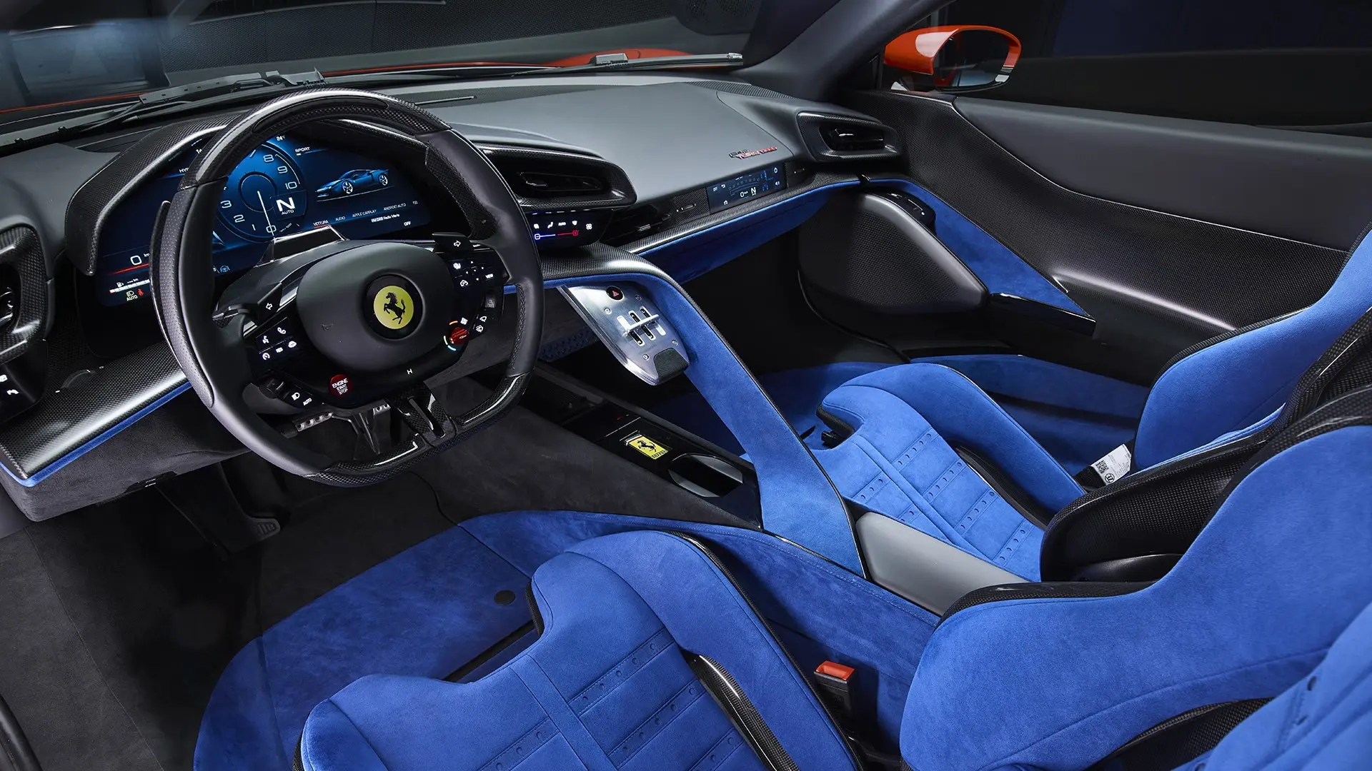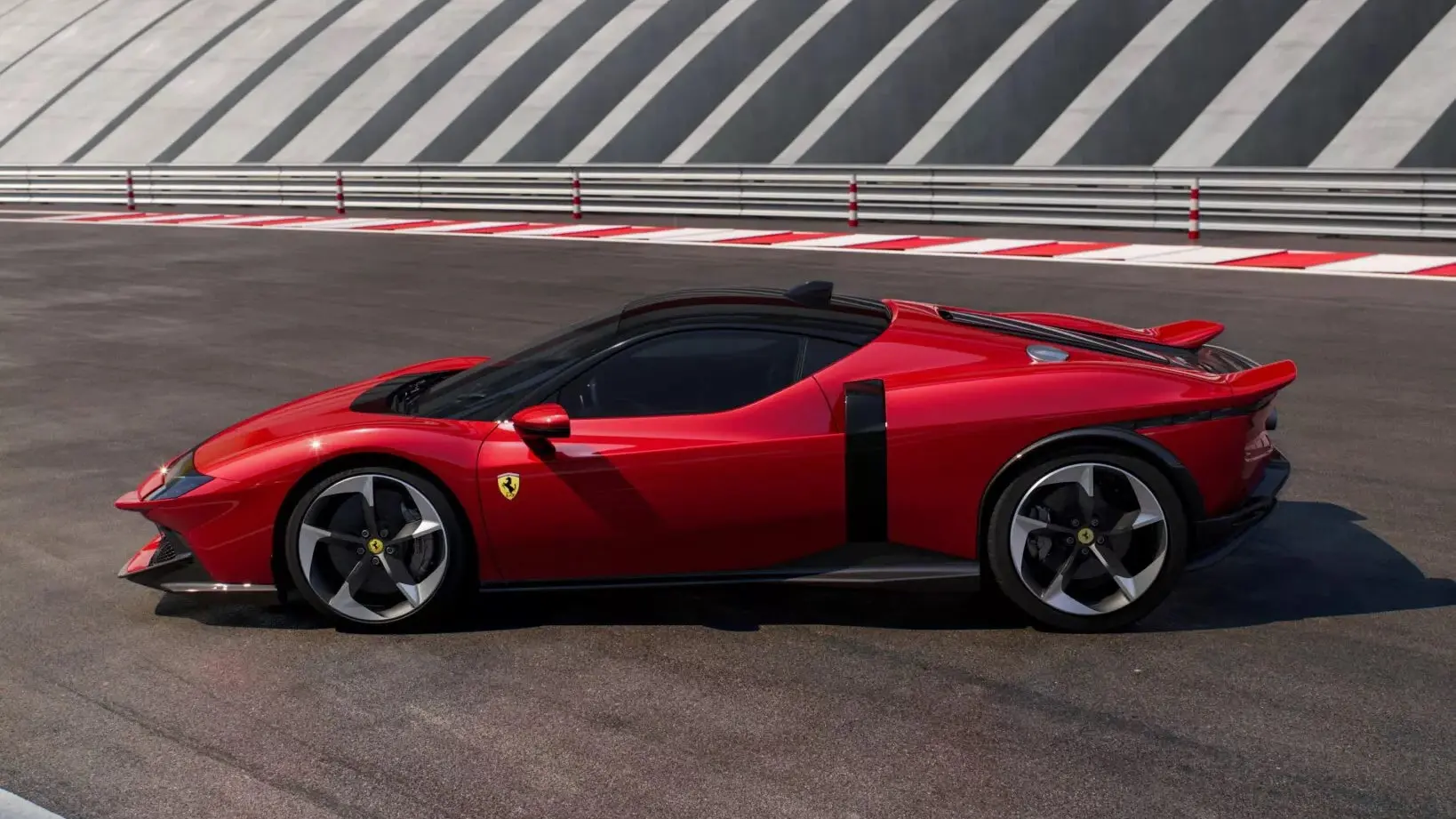 Műszakilag bőven van köze az SF90-hez, például a motor is onnan származik. A 4,0 literes, ikerturbós V8-as alapjaiban egyezik, de átdolgozták a hengerfejet és a leömlőket, illetve a márka történetének legnagyobb turbóit pakolták a motorra, így érték el a 830 lóerőt. Ezt egészíti ki három villanymotor (elől kettő, hátul egy), a rendszerteljesítmény 1050 lóerő. Hála az apró, 7,45 kWh-ás akksinak, van elektromos üzemmód is, egészen mókás paraméterekkel. Ilyenkor elsőkerekessé válik a Ferrari, a tempó pedig maximum 130 km/h lehet, de ezt nem lehet sokáig élvezni, a villamos hatótáv legfeljebb 25 kilométer. A villanymotorok értelmét nem a Toyota Prius irányából kell vizsgálni, itt a bődületes teljesítmény elrése a cél, a csendes üzemmód bónusz, ami például a belvárosi korlátozott övezetekben jöhet jól. A végsebesség egyébként 330 km/h, kétszázra 6,3, százra 2,2 másodperc alatt ugrik. Az aerodinamikai ezúttal is kulcsfontosságú, az aktív és passzív elemeknek köszönhetően 250 km/h-nál már 415 kilónyi erő passzírozza az aszfalthoz a sportautót.