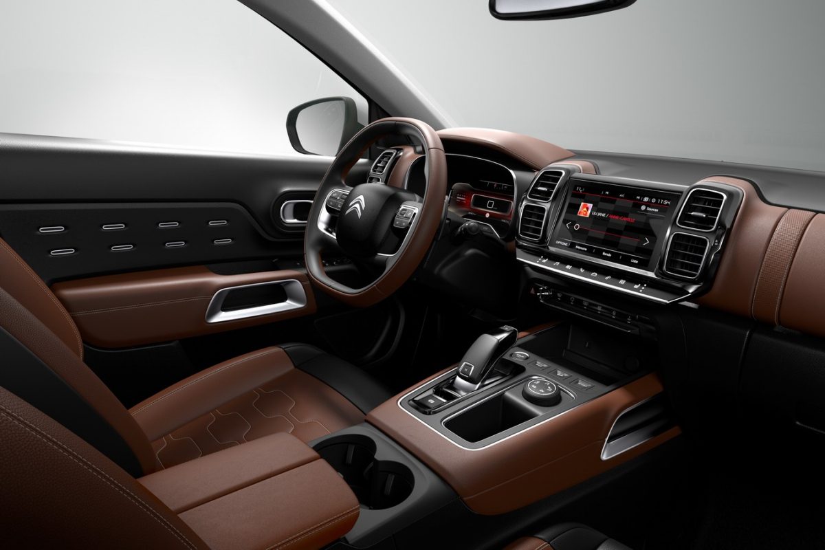Ismerős formák, a Cactusnál és a C3-nál komolyabban előadva. Középen 12,3 colos képernyőn irányítható a fedélzeti rendszer, de kínál vezeték nélküli mobiltöltőt is