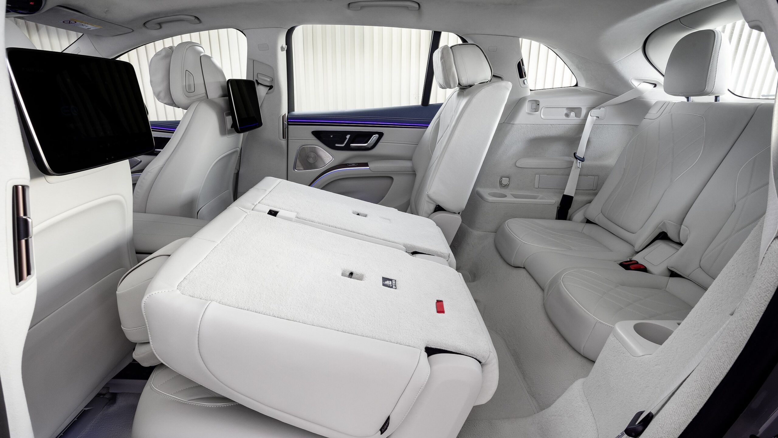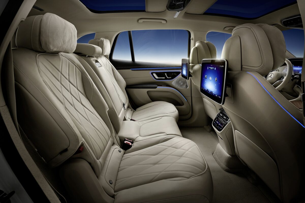 Egy kicsit nőtt csak nagyobbra az EQS a már említett riválisoknál, hiszen hossza 5130 mm, szélessége 1955 mm, magassága pedig 1727 mm. Tengelytávolsága megegyezik az EQS limuzinéval, tehát 3200 mm, de a legnagyobb ütőkártyája az opcionálisan rendelhető harmadik üléssor, amellyel hétszemélyessé válik az autó. Persze a második sor is előre-hátra állítható, összesen 127 mm a mozgástere, szóval a helykínálatban valószínűleg a csúcson helyezkedik el kategóriájának ritka képviselői között.