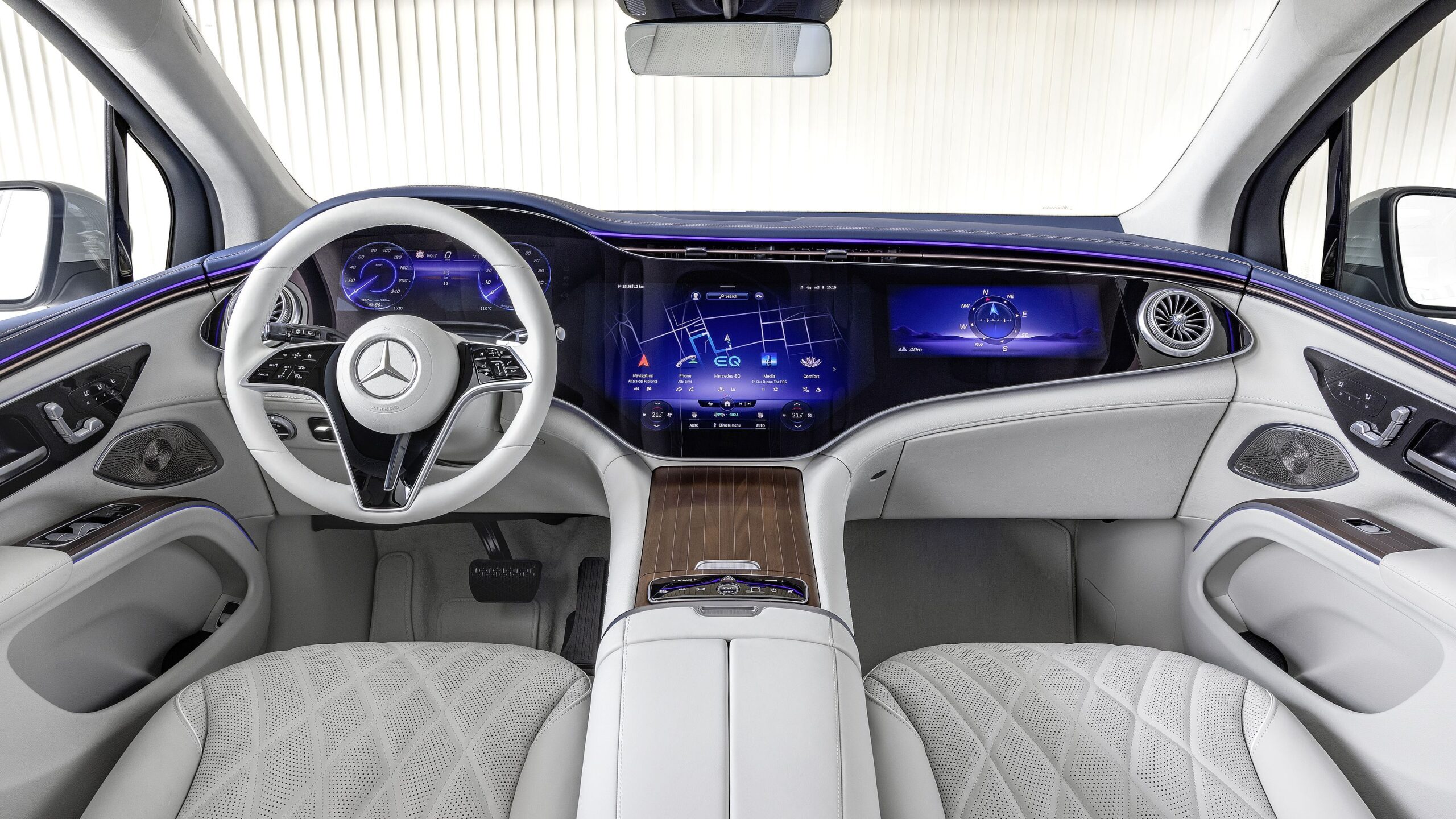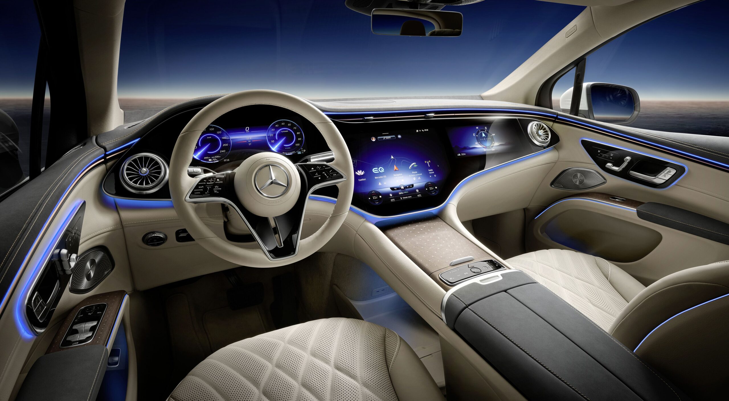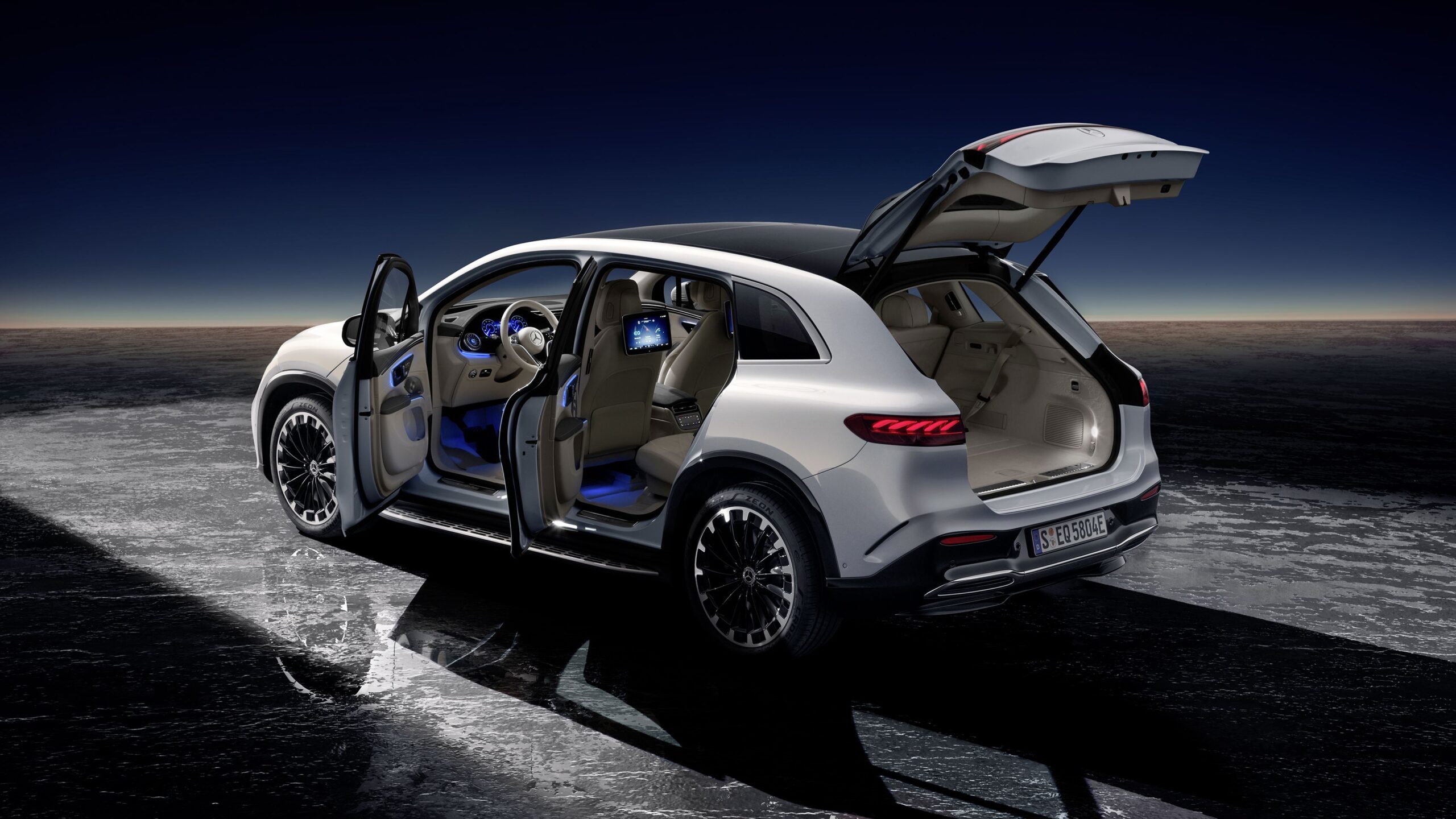 Formailag is hű maradt a limuzinhoz, annak felfújt változataként tekinthetünk rá, stíluselemei mér ismerősek róla. Bent ugyanez igaz, alapfelszereltségként 12,8 colos infotainment képernyővel, valamint 12,3 colos digitális műszeregységgel vásárolható meg, ám extraként ott az MBUX Hyperscreen, amelynek három képernyője egyetlen 56 colos, ívelt üveglap alatt helyezkedik el. Persze hátul is 11,6 colos monitorok várják az utasokat, valamint középre is kérhető egy táblagép, ami ráadásul kivehető. Az EQS SUV alapfelszereltségéhez tartozik még a légrugós, adaptív lengéscsillapítós futómű, valamint a 10 fokos elfordulásra képes hátsókerék-kormányzás is.