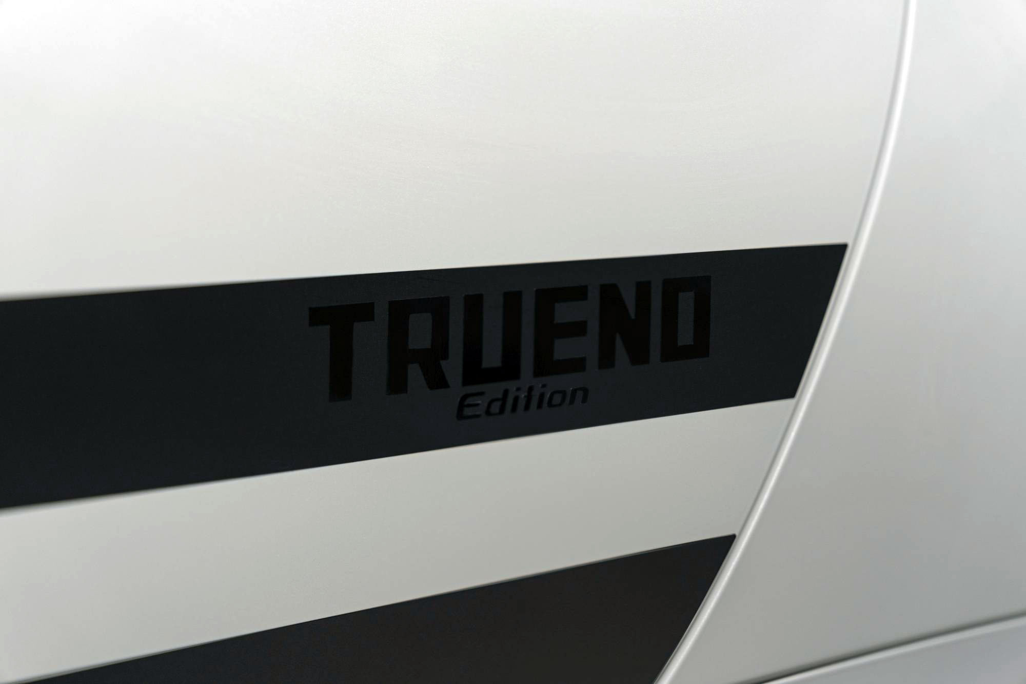 Fekete motorháztető, fekete TRUENO Edition oldalsó csíkgrafika és fekete hátsó szpojler teszi egyedivé és kéttónusúvá a fehér alapszínű modell megjelenését, az első lökhárító alján és a csomagtérfedélen a TRUENO Edition logó is megjelenik. A fekete metálfényezésű, 18 colos, 10 küllős alumínium könnyűfém keréktárcsák, valamint a fekete ajtókilincsek és tükörházak szintén csak ennek a különkiadásnak a jellegzetességei. Belül is különbözik a szériamodelltől a TRUENO Edition, az Alcantarával kárpitozott sportülések piros bőrcsíkokkal vannak díszítve, az egyedi váltógomb és a kormánykerék bőrborítását piros cérnával varrták, a sportos atmoszférát a speciális szőnyegek és küszöbborítások teszik teljessé.