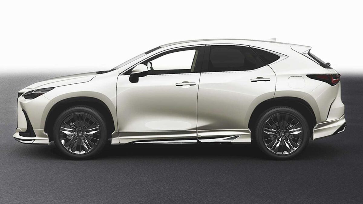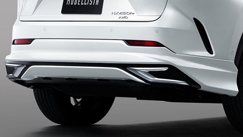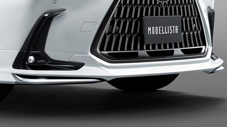 Hű maradt önmagához a Modellista, ugyanis ízléses kiegészítőket tervezett az NX-hez. Például az első lökhárító aljára szerelt, krómbetétes, szélesített kötényt, ami persze rontja a terepjáró-képességet, mivel a szabad magasságot 28 mm-rel csökkenti, az első túlnyúlást pedig 45 mm-rel növeli. De hát a tuning nem mindig az észszerűségről szól. Azonban ezt és a hátsó lökhárítóhoz készített légterelőt nem lehet megrendelni az F Sport felszereltségű NX-ekhez, azok ugyanis eleve sportos, mélyre húzott, díszbetétes lökhárítókkal és diffúzorral hagyják el a fukuokai gyárat.