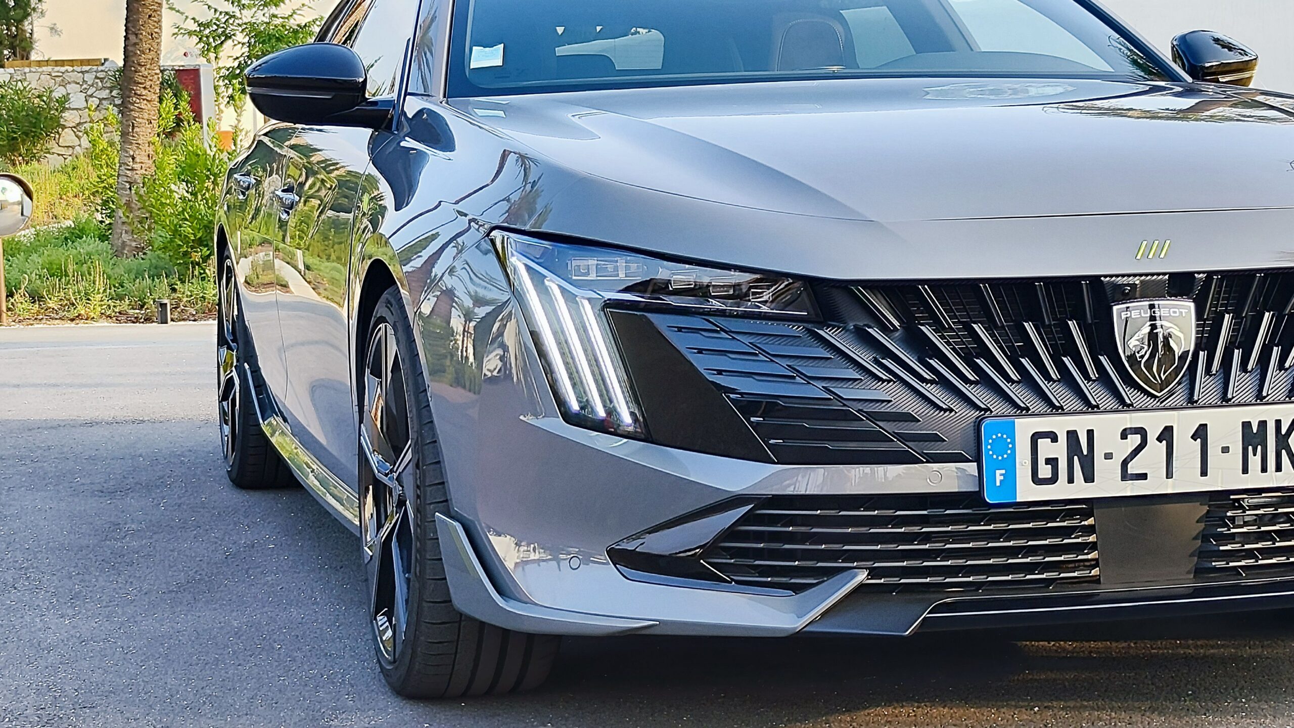 Végére hagytam az 508-ast, ami a ráncfelvarrással még kívánatosabb lett. Kár, hogy a kor divatja a SUV-okat erőlteti, mert az 508 limuzin és kombi változata egyaránt kiváló vezetési élménnyel, kényelemmel és használhatósággal csábít. A frissített modellen itt is az átalakult orr az igazán nagy durranás. A korábbi egyetlen karmos nappali menetfény helyett most már hárommal rendelkezik, illetve alapból LED Matrix fényszórókat kap, ám ezek keskenyebbek az új modellen. Megváltozott a hűtőmaszk is, ami így jobban illeszkedik a Peugeot aktuális formanyelvébe.