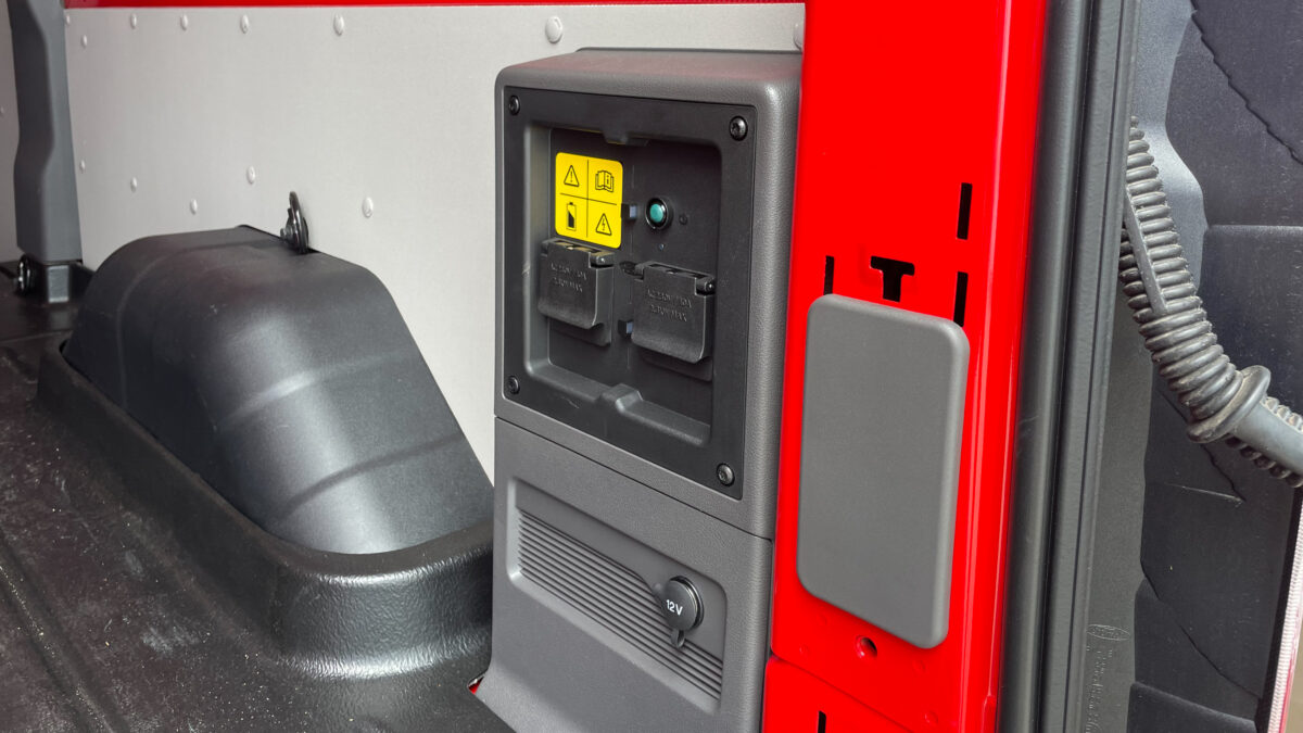 A raktér és a temérdek pakolóhellyel ellátott utasfülke egyaránt ad konnektorokat is, így elöl a laptop, hátul bármilyen munkagép is gond nélkül üzemeltethető, egyben ráébreszt: