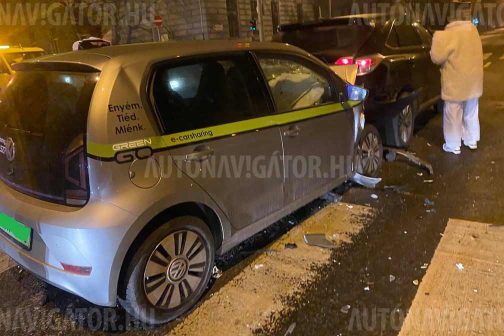 Tegnap este 23 óra magasságában került fel egy fotó a GreenGo-val csapatom Facebook csoportba arról, hogy a Tímár utca magasságában a Pacsirtamező utcán alaposan eltalált hátulról a GreenGo egyik Volkswagen e-up!-ja egy Lexus RX SUV-t. A baleset-info.hu weboldalra nagyjából ugyanekkor több infó is felkerült. Az autómegosztó Volkswagenjét hajtó sofőr ittas volt, ezért őt a rendőrök vitték el a helyszínről. Az e-up! jól láthatóan nem csak gazdasági, műszaki totálkáros is, orra nagyjából megsemmisült, de az alig több mint 2 éves autónak a teljes karosszériája torzult, még hátsó (C) oszlopán is nyomot hagyott a baleset. [BANNER type="1"] A légzsákok nem csak a hátulról érkező e-up!-ban, a vétlen Lexusban is nyíltak. Mivel egy korábbi generációs Lexus RX-ről van szó, s annak hátulja is jelentősen sérült, erős a gyanú, hogy az is totálkárosra tört. Az e-up! vezetője nem csak azért kerülhet szorult helyzetbe, mert a rendőrségtől bírságot kap, hanem azért is, mert ittas vezetés esetén a biztosító jellemzően nem fizet, az anyagi kárért tehát alighanem ő lesz a felelős.