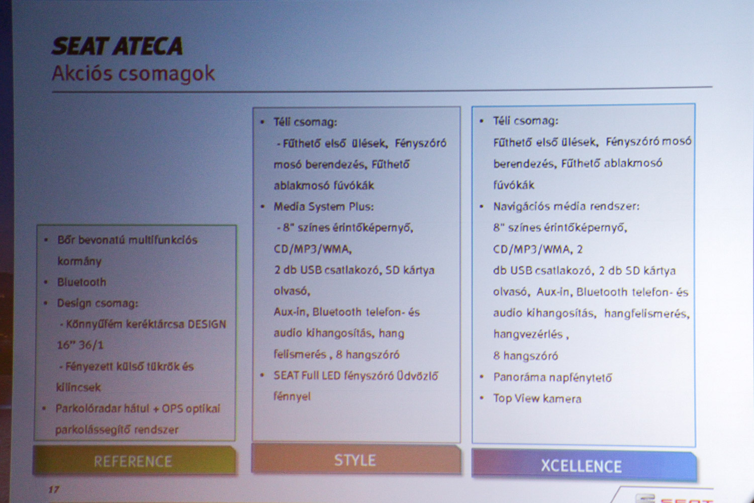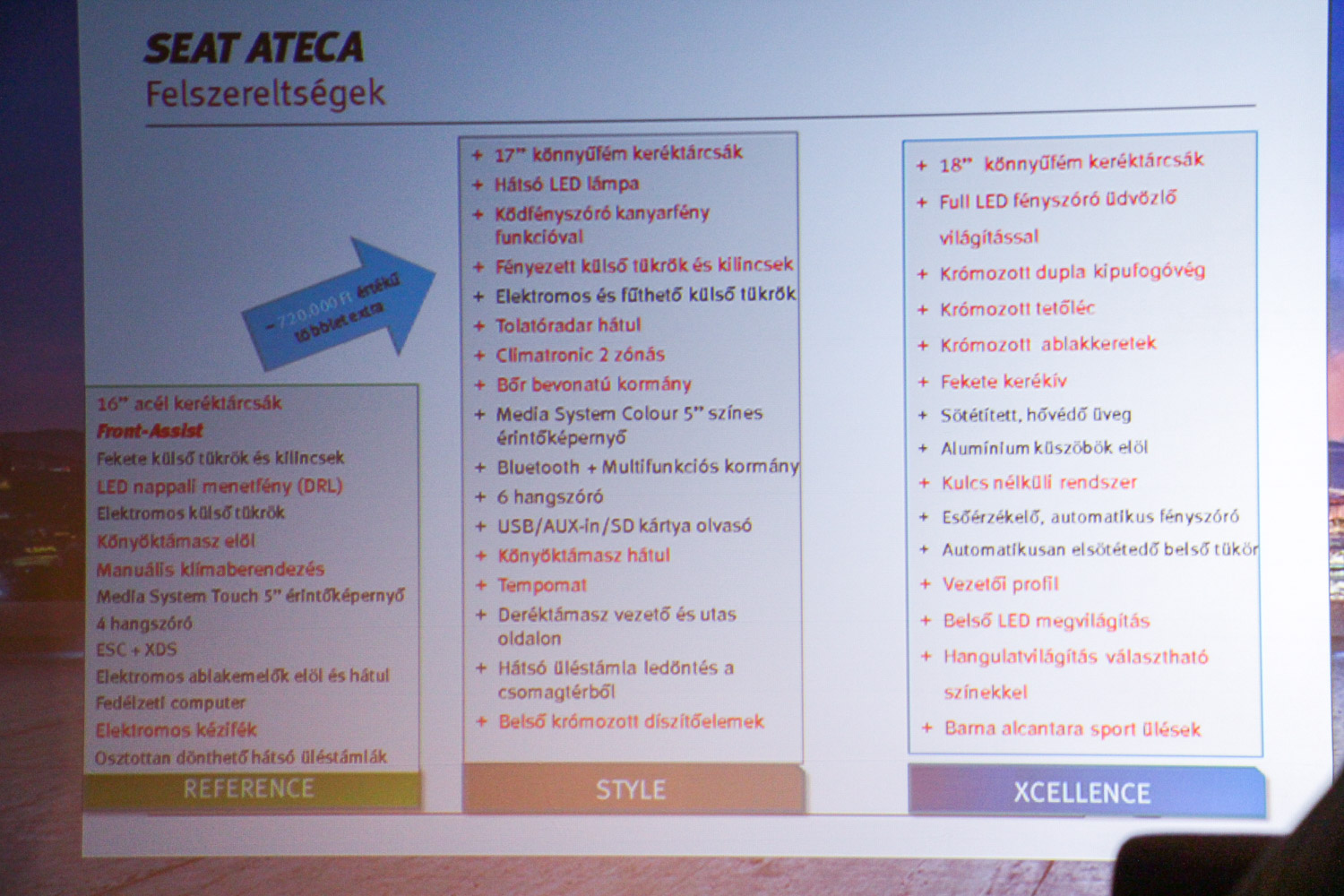 Volt már Altea Freetrack, van Leon X-Perience, de az Ateca a márka első önálló SUV-nak mondott, de talán mégsem igazán annak számító modellje. 4,36 méteres hosszával és jellegével is leginkább a crossover kategória atyjának tekinthető Qasqhai konkurense. A kategóriák összemosottságát mutatja, hogy a SEAT ennek ellenére SUV-nak tartja, pedig alapáron az Ateca is csupán elöl hajt. Szinte biztos, hogy az eladott autók zöme fronthajtású lesz. Az alapverziók nem is léteznek másként. Nem nagy meglepetés, hogy a padlólemez ugyanaz az - elöl MacPherson, hátul mulitilink futóműves - MQB, ami a Leon vagy akár a konszernen belüli konkurens új Tiguan alatt is van. Az Ateca utóbbinál persze nem csak kisebb, lejjebb is pozicionált, magyarul olcsóbb. Hogy mennyivel, azt most még konkrétan nem tudhatjuk, hiszen az árlista egyelőre még nem publikus, azt viszont elárulta Papp Zoltán, a SEAT magyarországi márkaigazgatója, hogy az alapmodell 5 millió forint alatti lesz. [BANNER type="1"]