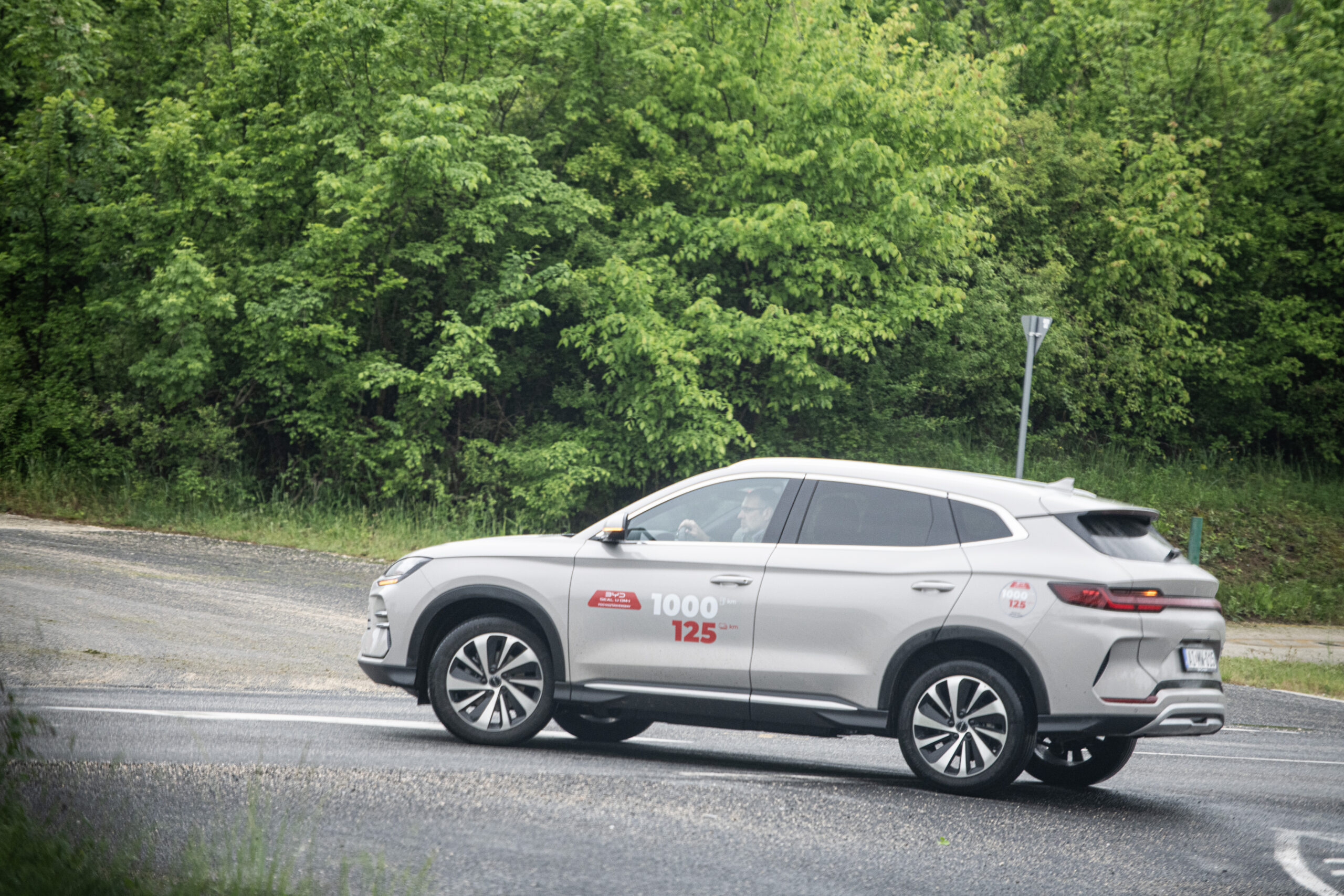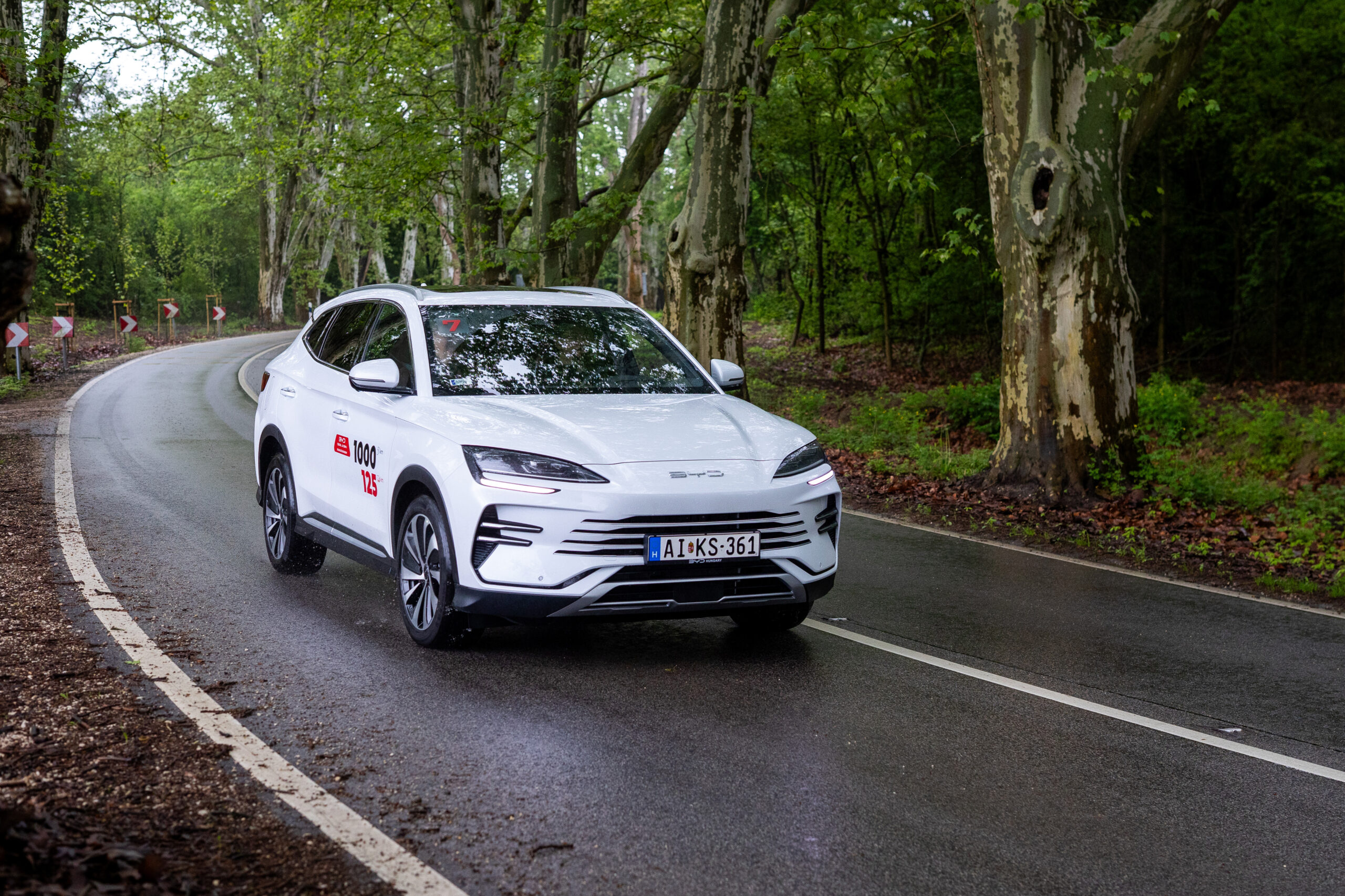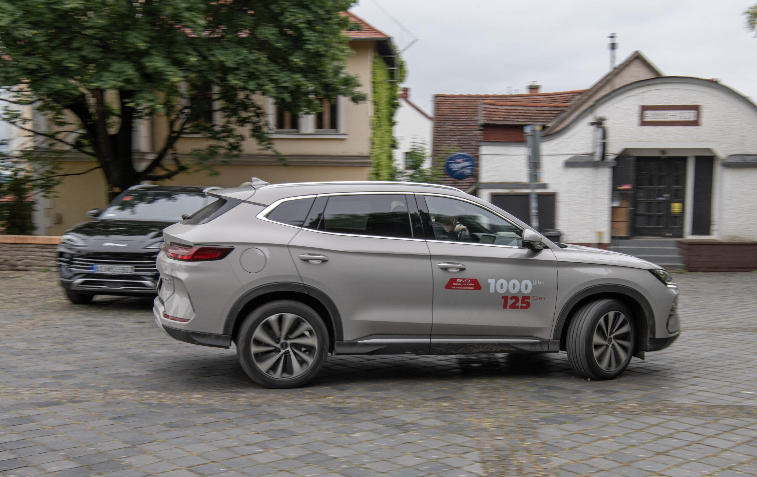 Szerencsére Kolos, a Driven atyja tökéletes navigátori munkát végzett mellettem, úgyhogy dobogós reményekkel vágtunk neki az útnak a BYD szabadidő-autójával, amelynek mozgatásáról tehát egy benzin és egy villanymotor gondoskodik. A benzines 98 lóerős, a villany pedig 197 pacit ad a házasságba, a rendszerteljesítmény pedig 218 lóerő, amelyhez 300 Nm forgatónyomaték társul. Mindez az első kerekekre jut, ami teljesen ideális megoldás az átlagos SUV-felhasználóknak. Akkumulátorból a nagyobbik változatot kaptuk 26,6 kilowattórás kapacitással, és ezzel ígéri a 125 kilométeres tisztán elektromos hatótávot a BYD. Nos, Tihanyba „felülről jutottunk el, nem csak simán lecsorogtunk az M7-esen, hanem kirándultunk egy 157 kilométeres dimbes-dombos útvonalon. Az eredményünk: 145 kilométer kizárólag villannyal. Persze trükköztünk: nagyon figyeltünk a gyorsításokra, óvatos gázpedálkezeléssel, hogy véletlenül se induljon be a benzinmotor. Na, meg amikor párásodni kezdtek az üvegfelületek nem légkondiztunk, lehúztuk kicsit az ablakokat és ilyen apró kis fortélyokat vetettünk be, amit „civil közlekedés közben nem tennénk, de nagyon valószínű, hogy a 125 kilométeres villany hatótávot úgy is megközelítenénk.