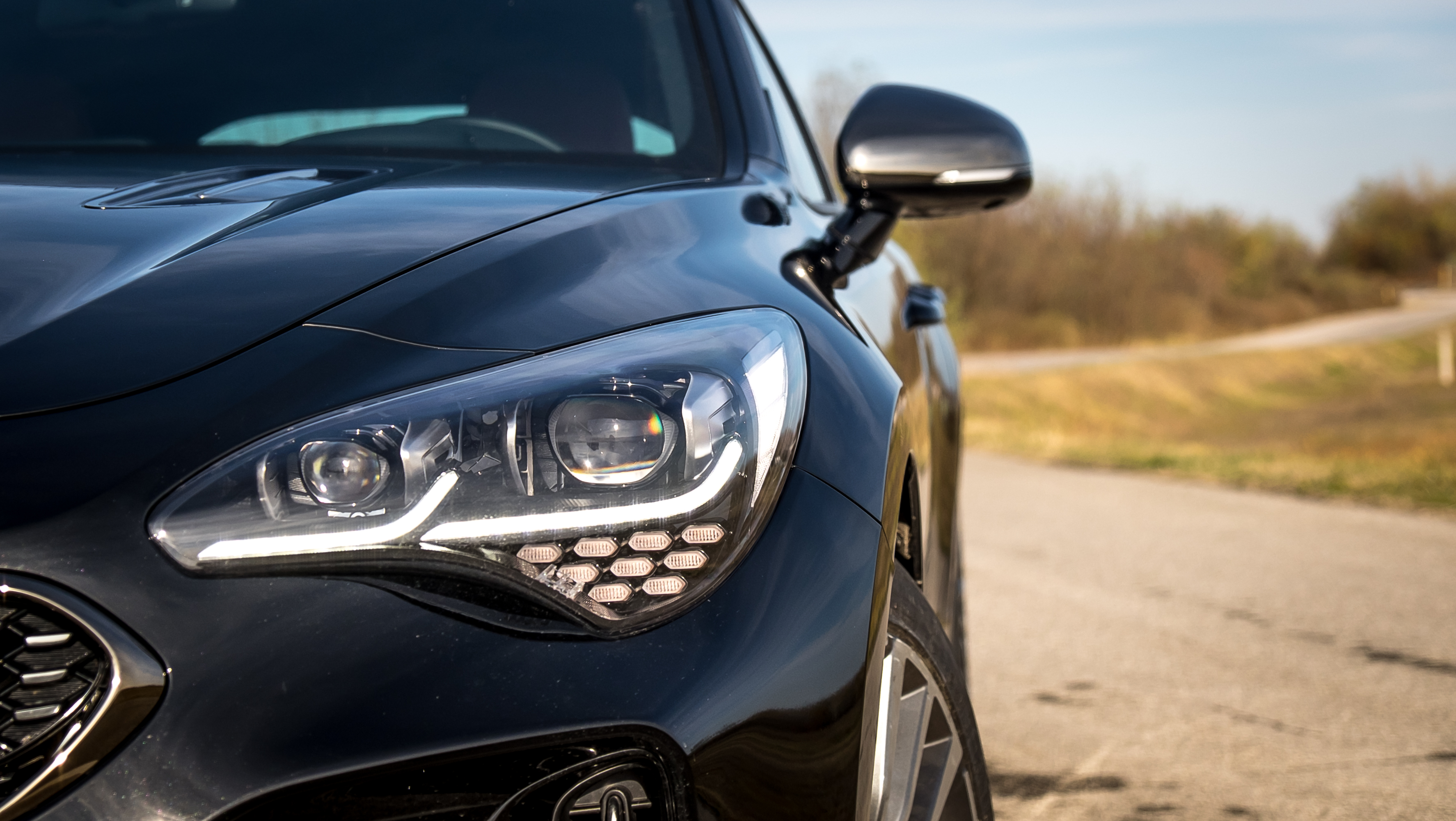 Markáns megjelenésű autó a Stinger, jól áll neki a fekete fényezés