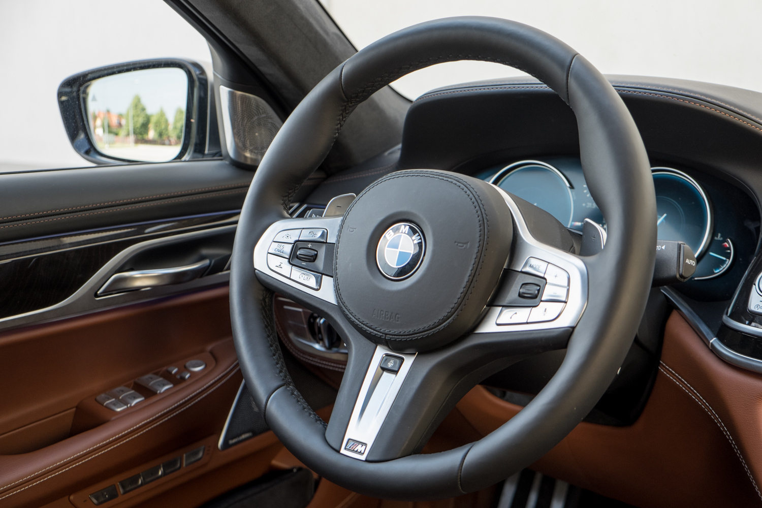 20 colosak a felnik és matt szürkék a kiegészítők, még a mágikus számsor is, amitől főleg a BMW-sek képesek kiesni saját autójuk ablakán. Ez bizony az első olyan 7-es, amihez az M Performance-nak jelentős köze van