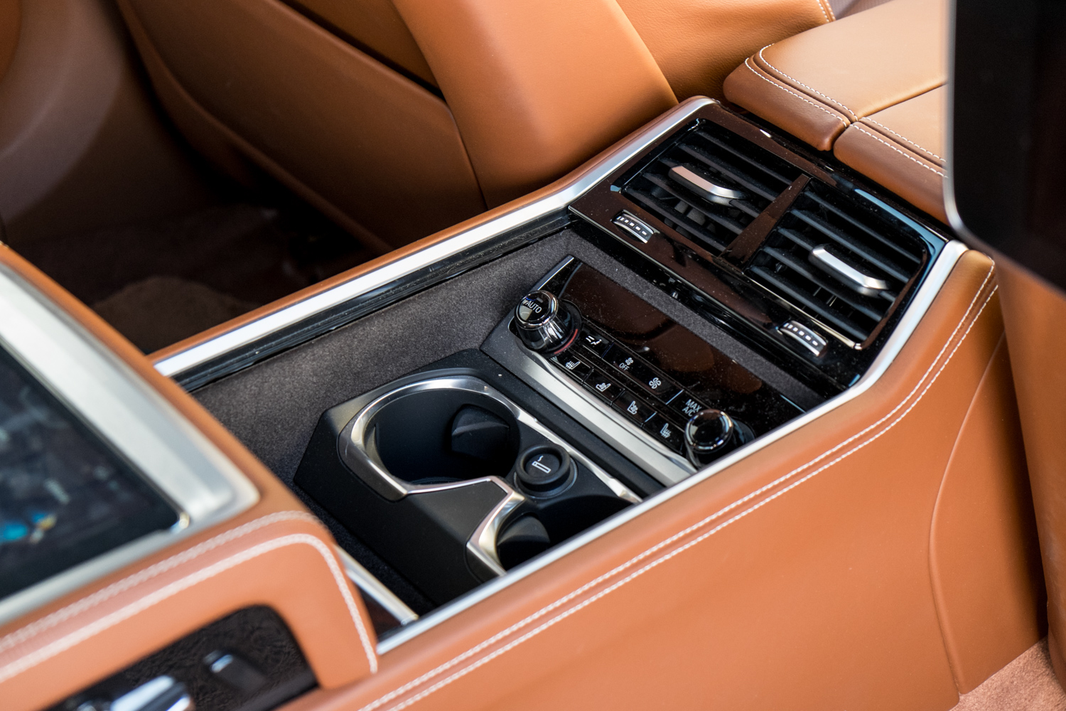 Félelmetes. Egyszerre velőtrázóan izgalmas, fenséges és borzasztóan ijesztő. Minden a megdöbbentésről szól, mind a bent ülők, mind a kintről irigykedve figyelőknek. Nem tudom, ki a szerencsésebb, akit bent masszíroz az ülés – de csak a sofőrt és a hátul ülőket - , vagy akik hallhatják a hangját odakint, ugyanis bent olyan síri csönd van, hogy azt elképzelni is nehéz. Dupla hangszigetelésű üvegek tartják kint az alantas zajokat, mondjuk dupla hővédelemnek jobban örültem volna. Jó, hogy 40 fok volt a teszthéten, de elvárnám 64 milliótól, hogy ne legyen melegem. Plusz egy érv a hőszigetelés mellett, hogy a csöndben így feltűnően zavaró a szellőzés süvítése, kevesebb hő, kevesebb klíma, kevesebb zavaró zaj. Minden ülés elektromosan állítható, minden irányban, a 1 793 200 forintos Executive Lounge csomag miatt viszont a legrosszabb hely a jobb első ülés lesz. Így nincs se deréktámasz, se masszírozás, se állítható magasságú fejtámla, a legjobb jobb hátul. Vagy bal elöl.
