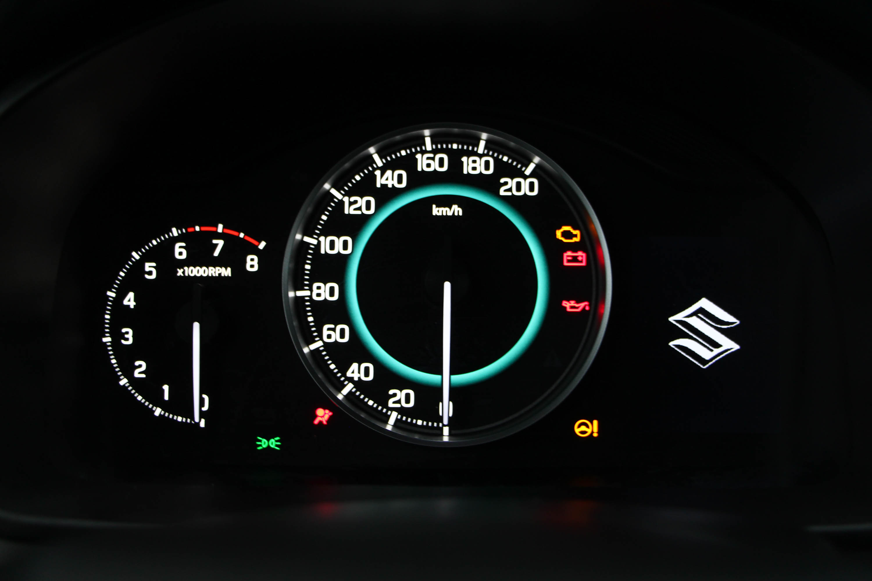Nem lettek lenullázva az órák induláskor. Csak az SX4 S-Cross-ról tudok nyilatkozni, ahol pillanatnyi fogyasztásmérő működött. Normál közúti hajtásnál 5 literig ment fel a jelzés, pontosabban 0-és 5 liter között ugrált. Motorféknél 0, teljes benyomott gázpedállal 10 liter/100 km jelzést mutatott. Tesztautóknál mindig fals értéken áll az átlagfogyasztás jelzés, a nem átlagos vezetés miatt.