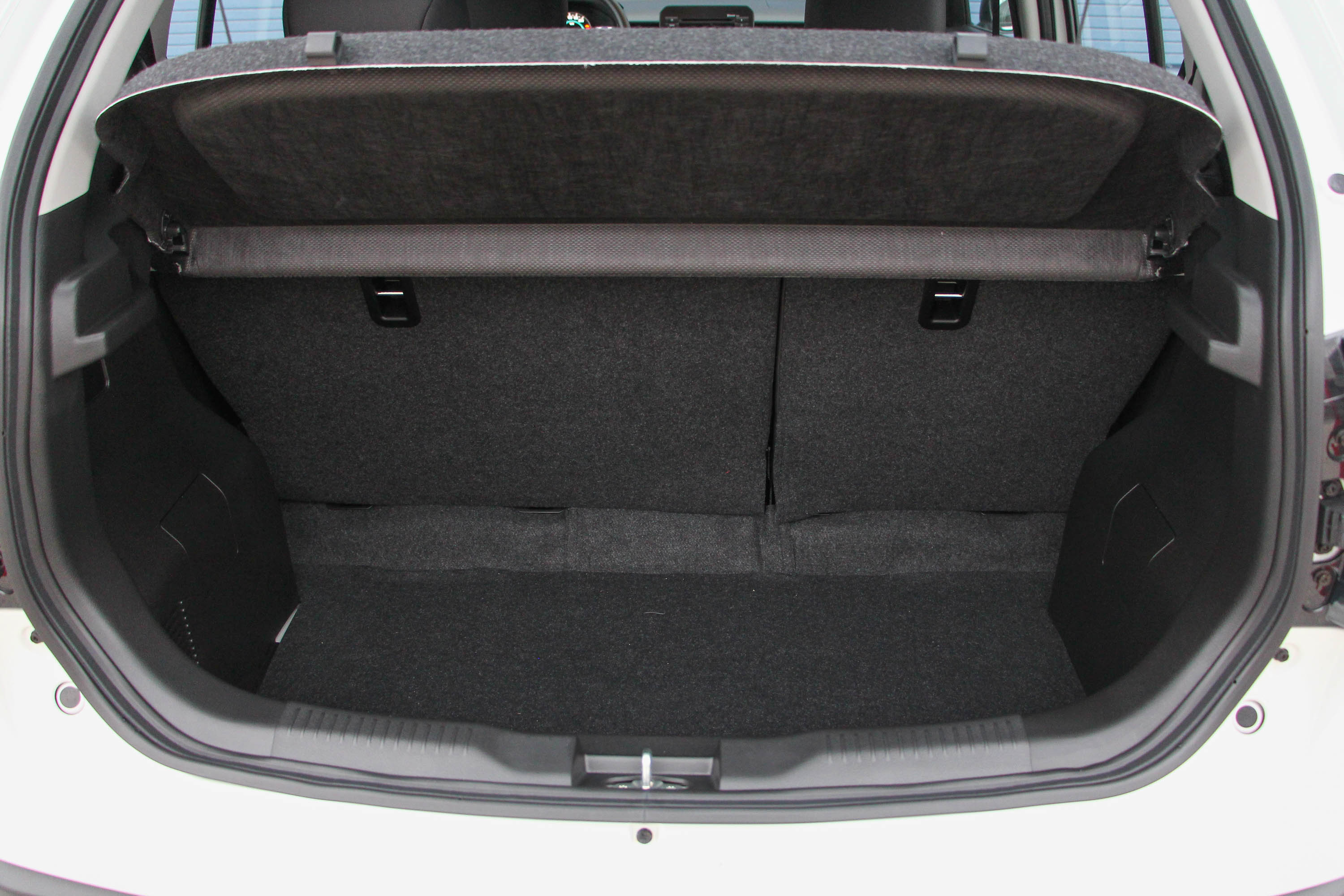 Korrekt méretű, 267 literes, de magas küszöbön keresztül pakolható, ülésdöntéssel lépcsős padlójú a csomagtér