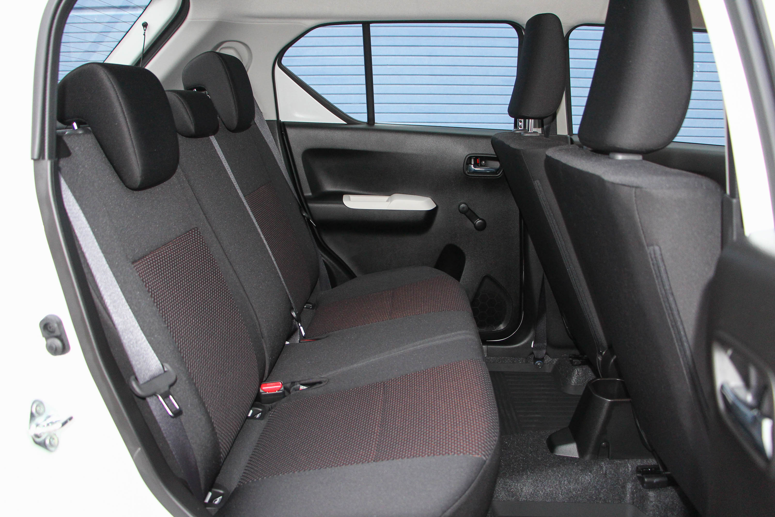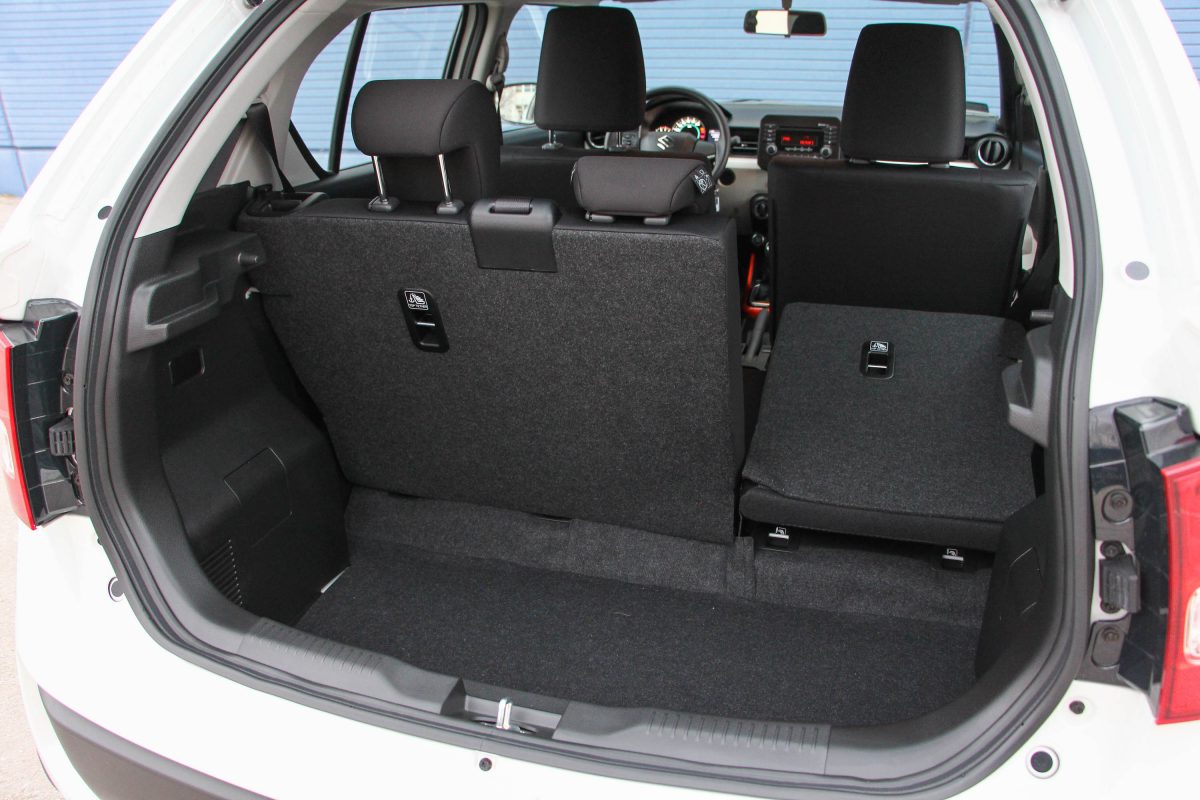 Hátul döbbenetesen nagy a lábtér, elöl korrektek az ülések. Az Ignis négy felnőttet is simán, kényelmesen vihet