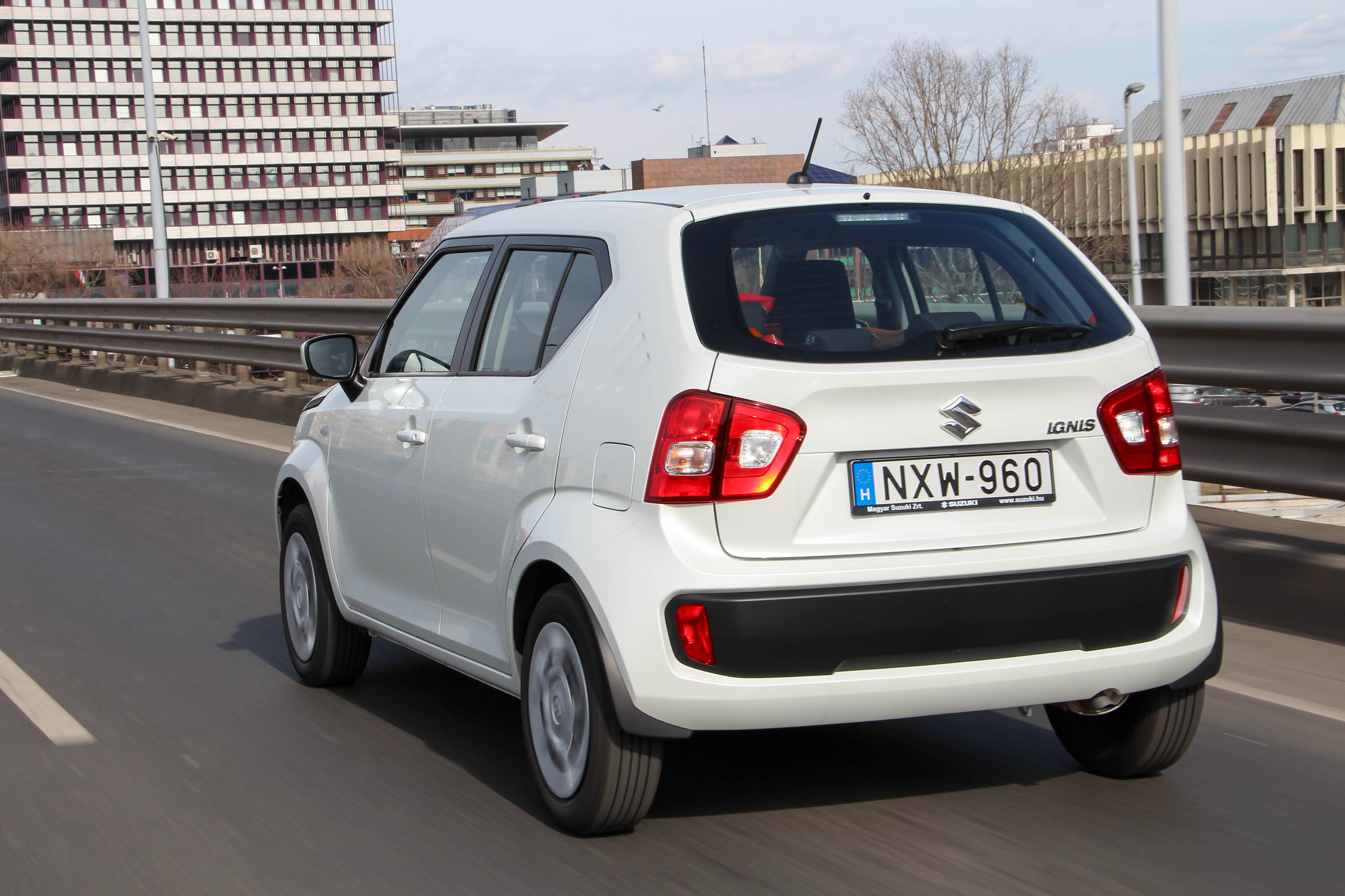 Nem csak városba való. Bár méreteivel az Ignis elsősorban városban érzi jól magát, országúton legalább annyira jó, ott szinte némán, nevetséges fogyasztással fut, de még autópályán is vállalható. Futóműve barátságos, forszírozottabb helyzetekben persze jelentős az oldaldőlés. A csillapítás lehetne jobb, de a kisautók között az enyhén kemény rugózás is gond nélkül elmegy. A kormányzás több mint 3,5 volánfordulattal egy kissé, de nem vészesen indirekt, az elektromos rásegítés mértéke viszont eltalált. Talán meg fognak kövezni, de hatalmas hátsó lábterével, szinte derékszögben nyíló hátsó ajtajaival családi autónak is beválik. Csomagtere persze nem nagy, de 267 literével azért el lehet lenni.