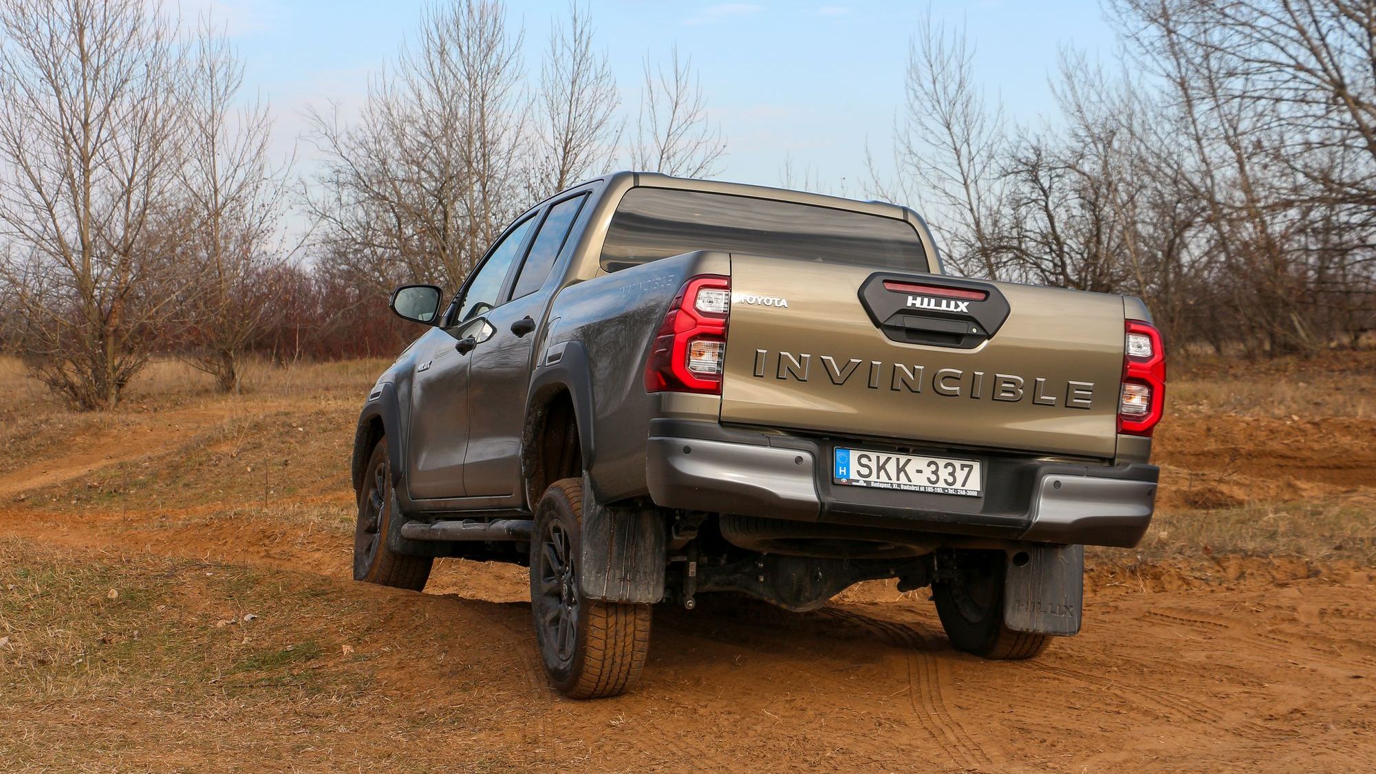 A duplakabinos 1,52 méter hosszú platója bár a kerékdoboknál jelentősen összeszűkül, a többi helyen fél centi híján 1,65 méter széles. A kulccsal zárható platóajtó masszív, akár rá is ülhetünk, a platóra felmászást pedig a hátsó lökhárító lépcsője is segíti. Kellemesen duruzsoló, higgadt, de mégis erős turbódízelével a Hilux akár 42 fokos emelkedőt is megmászhat, első terepszöge 29, a hátsó 26 fokos, oldalirányú dőlésből is igen extrémet, 45 fokosat bír, gázlómélysége pedig 70 centiméter. A terepképességeket zárható hátsó differenciálmű és lejtmenetvezérlő is fokozza, de ha terepezni kívánunk, érdemes egy megfelelő abroncsgarnitúrát is vásárolni. Igazi terepjáró úgy lesz az amúgy személyautós beltéri minőséget adó Hiluxból, aminek az Invincible jól láthatóan a csúcsverziója. Itt már tényleg fényűző ellátmányt kapunk, ám nem olcsón, bruttó 15 millió forintért. Nettó áron ez a fullos pickup már csak 11,84 millió, maga az új, 2,8 literes motor a 6 fokozatú automatával áfamentesen 9,49, a 27%-os forgalmi adóval növelt áron 12,05 millió forinttól érhető el.