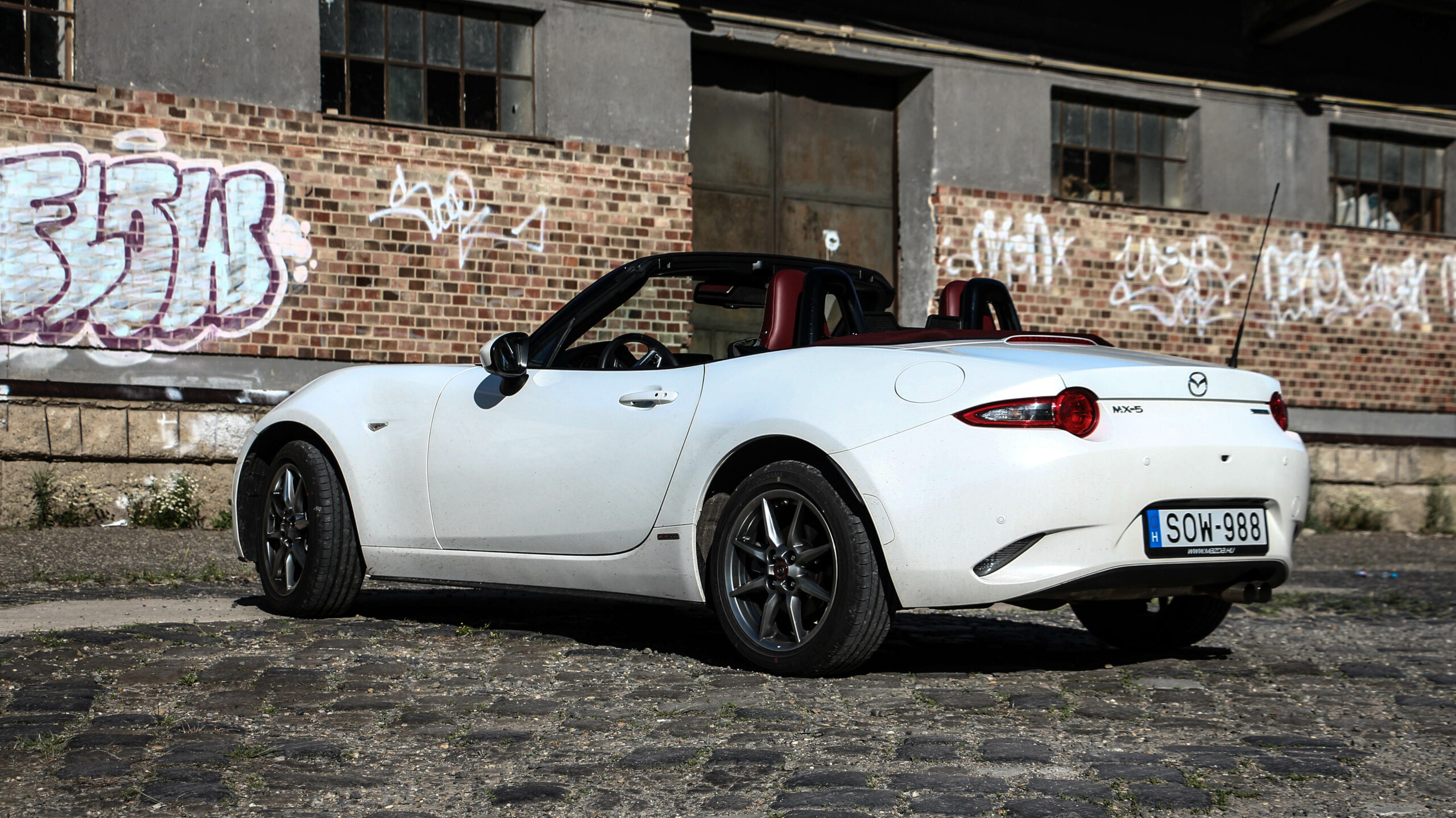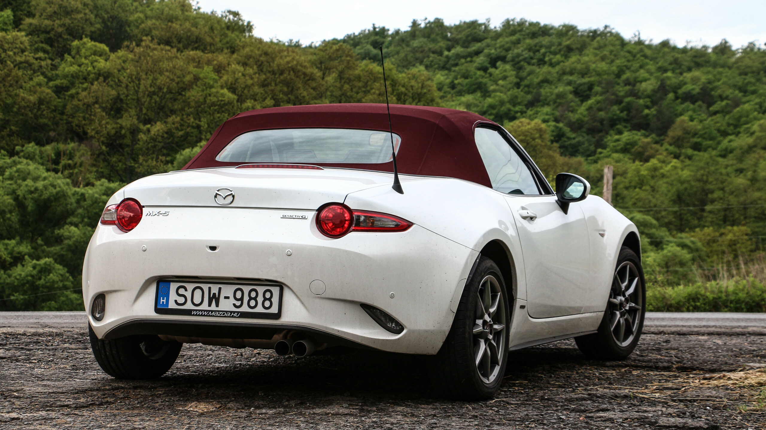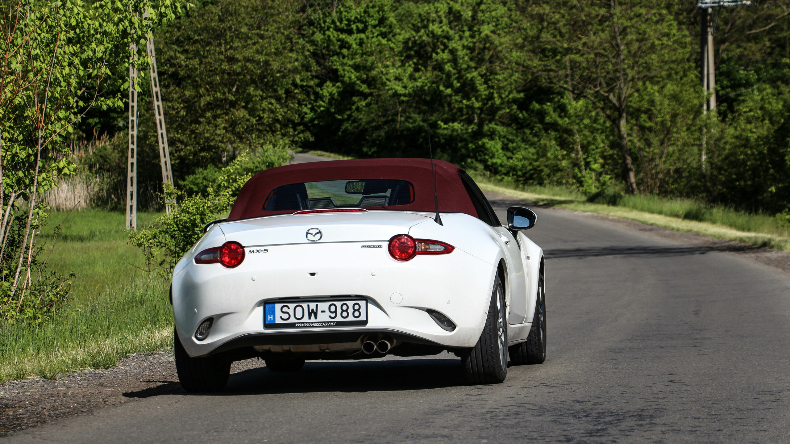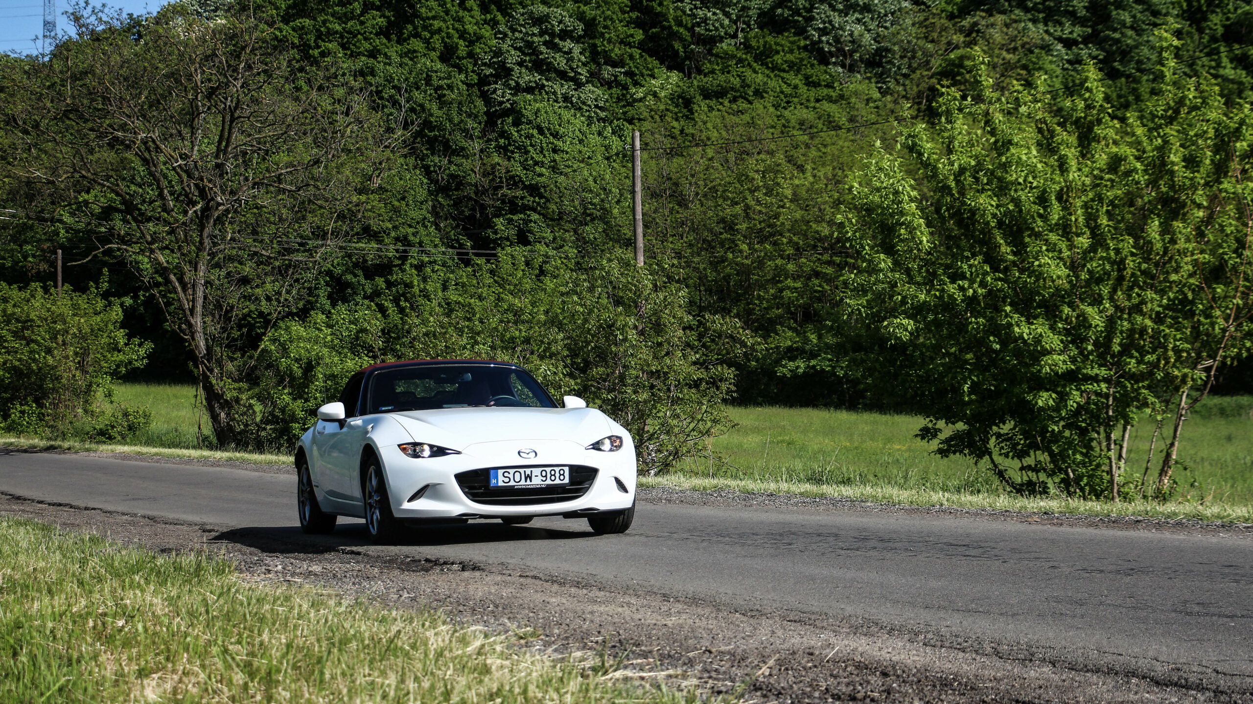 Hihetetlen szabadságérzet és kiemelkedő vezetési élmény, ezeket adja ez a kocsi, főleg nyitott tetővel egy kanyargós országúti szerpentinen. Ráadásul könnyedén és biztonságosan lehet vele kilinccsel előre közlekedni, egyszerűen kívánja, hogy egy kicsit körzőzz vele. Mindeközben annyira stabil és kezelhető marad, hogy a legtöbb esetben egy mozdulattal vissza lehet terelni a fenekét, és már meg is úsztad az esetleges vészhelyzetet. Ezt a remek súlyelosztásának és kiváló 1,5 literes szívómotorjának köszönheti, ami a 132 lóerejével meglepően elég az alig egy tonna körüli MX-5-be. Mindemellé 5 liter alatt eszik országúton, 6 körül pályán, de még városban is 8 alatt marad, bármiféle kompromisszum, vagy küzdelem nélkül. Ha pedig mégis erősebbet akarnál, röhejesen minimális összeg a kétliteres, 184 lóerős motor 180 ezer forintos felára.