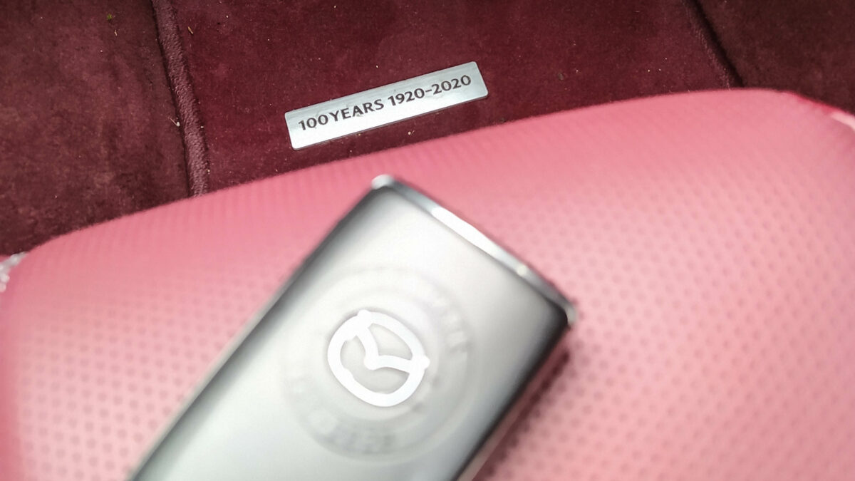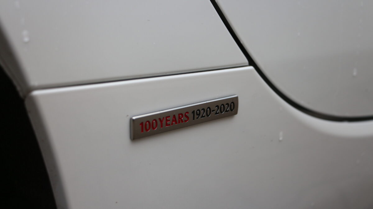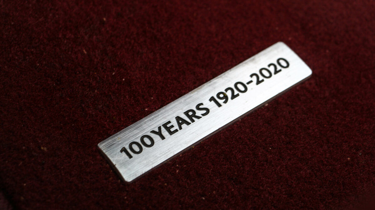 Ezt adja a 100. születésnapi változat, bordó tetőt és rengeteg plakettet, na meg bordó belteret