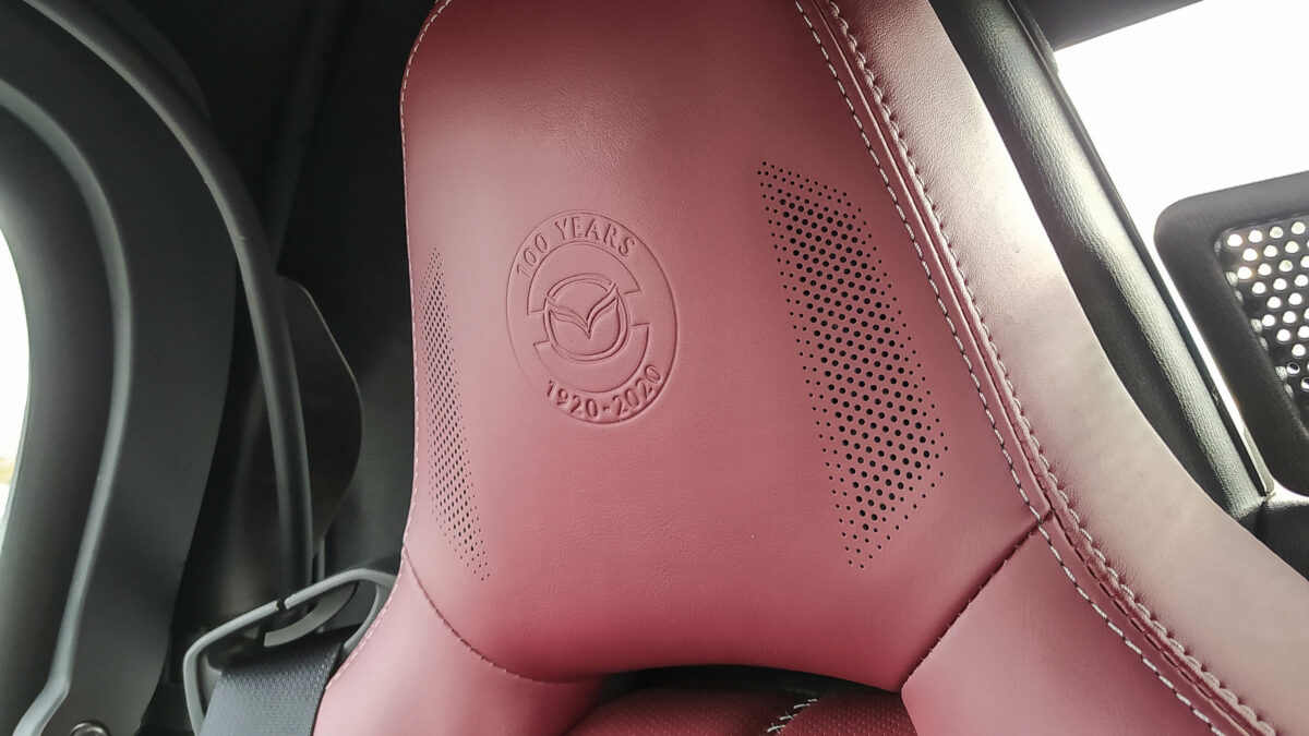 Ez a sok-sok eddigi tény viszont mind a típus érdeme, nem pedig a különkiadásé. Felmerül hát a kérdés, hogy mit ad pontosan az ünnepi változat a megszokott MX-5-höz képest? Esztétika és felszereltség terén is pontosan azt, amit kell. Előbbi kategóriába sorolható a gyönyörű, bordó tető, ami a beltér színösszeállításához is passzol, na meg a szülinapi plakettek mindenhol, ahová csak fért: még a kulcs műanyagháza is a centenáriumot hirdeti. De mint már említettem, felszereltség terén is pontosan azt kapta az autó a különkiadással, amire szüksége volt a tökéletességhez: semmit, mert ez így jó, ahogy van, és ezt a Mazdánál is jól tudják.