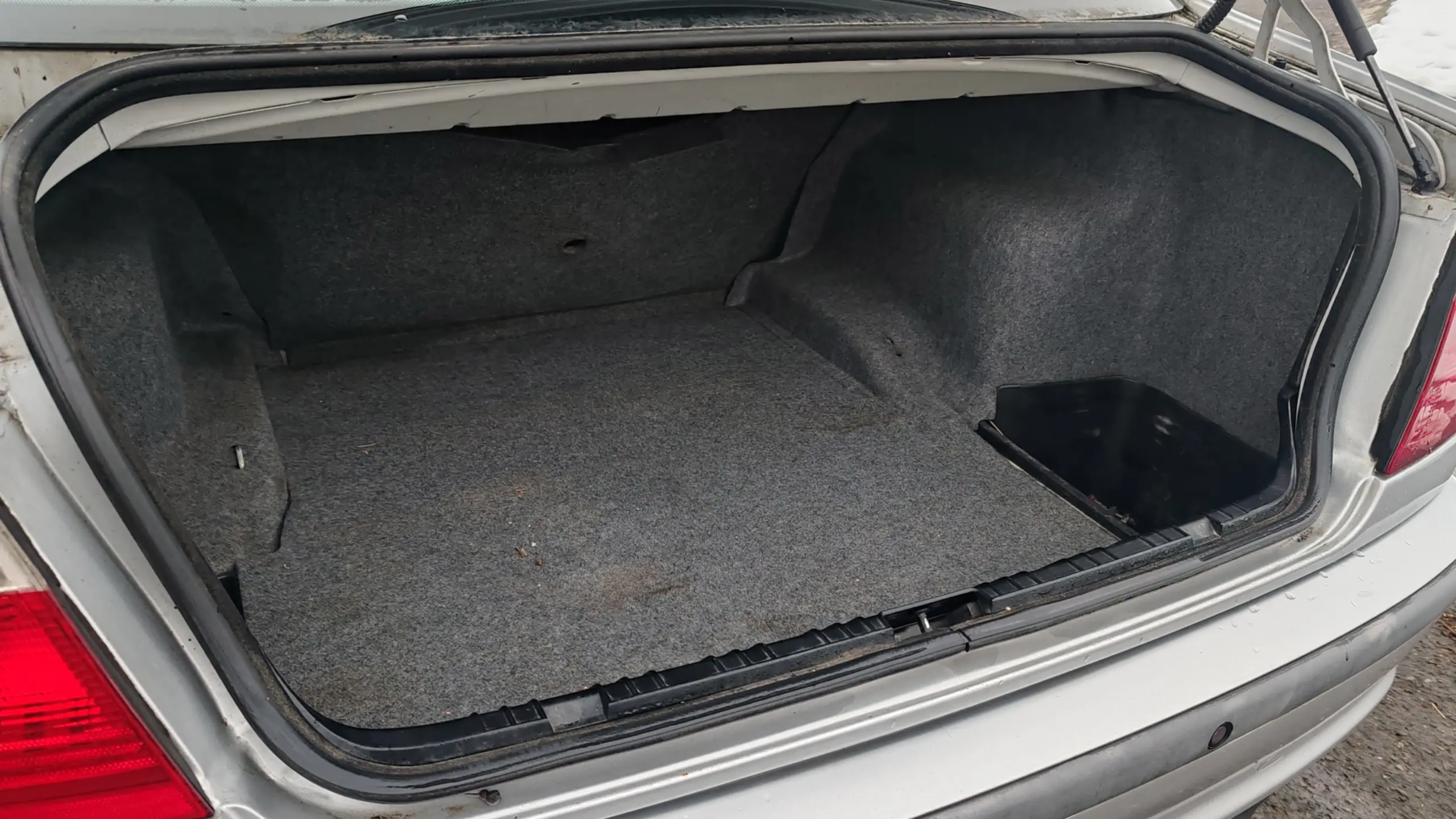 Hogyha a második sorban csak a szélső üléseket nézzük, akkor a lábtér, a fejtér, illetve a pad szélessége tekintetében is tágasabbnak hat a korabeli C-osztálynál és A4-nél, illetve az ülések is puhábbak. A középső hely a magas és széles kardánalagút miatt azonban legfeljebb szükségülésnek nevezhető, ezen a téren mindkét közvetlen konkurensben ügyesebben oldották meg a mérnökök a problémát. Hátra az alacsonyabban extrázott példányokba tekerős ablak jutott, itt is ez a helyzet, ám akkoriban ez is teljesen elfogadott volt a kategóriában. A csomagtartó is az elvárhatót hozza, a kapacitással nincs probléma, ám a szedán forma miatt nagyobb tárgyak szállítására aligha alkalmas.
