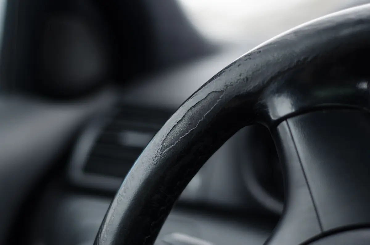 A bőrözött kormányon is található már szakadás