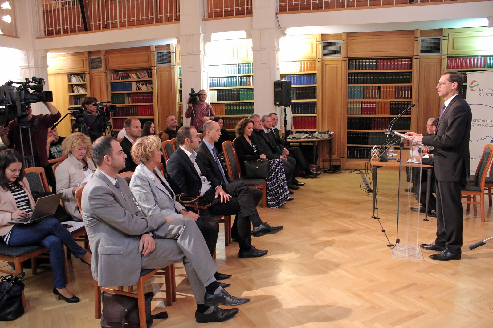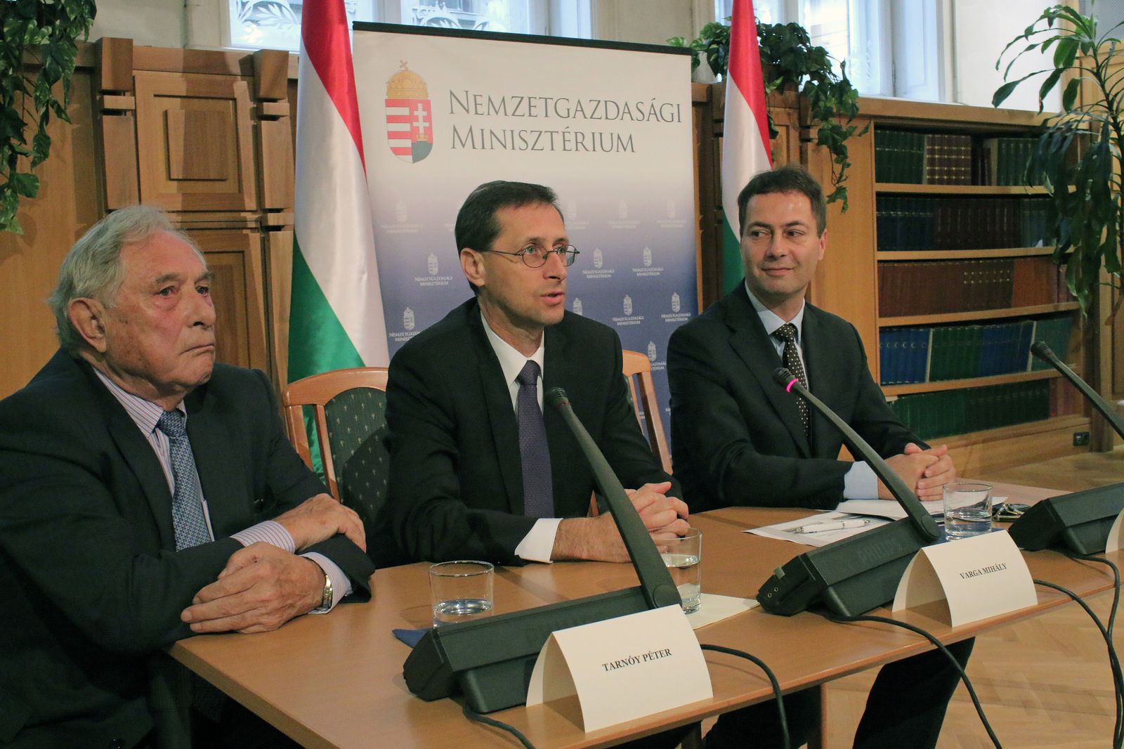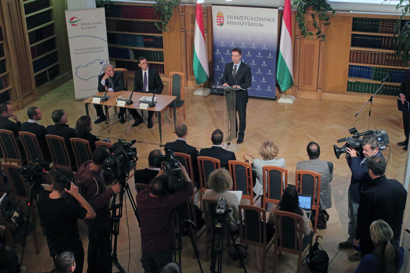Varga Mihály nemzetgazdasági miniszter (középen) jelentette be a Jedlik Ányos Klaszter megalakulását. Elnöke Tarnóy Péter (balra)