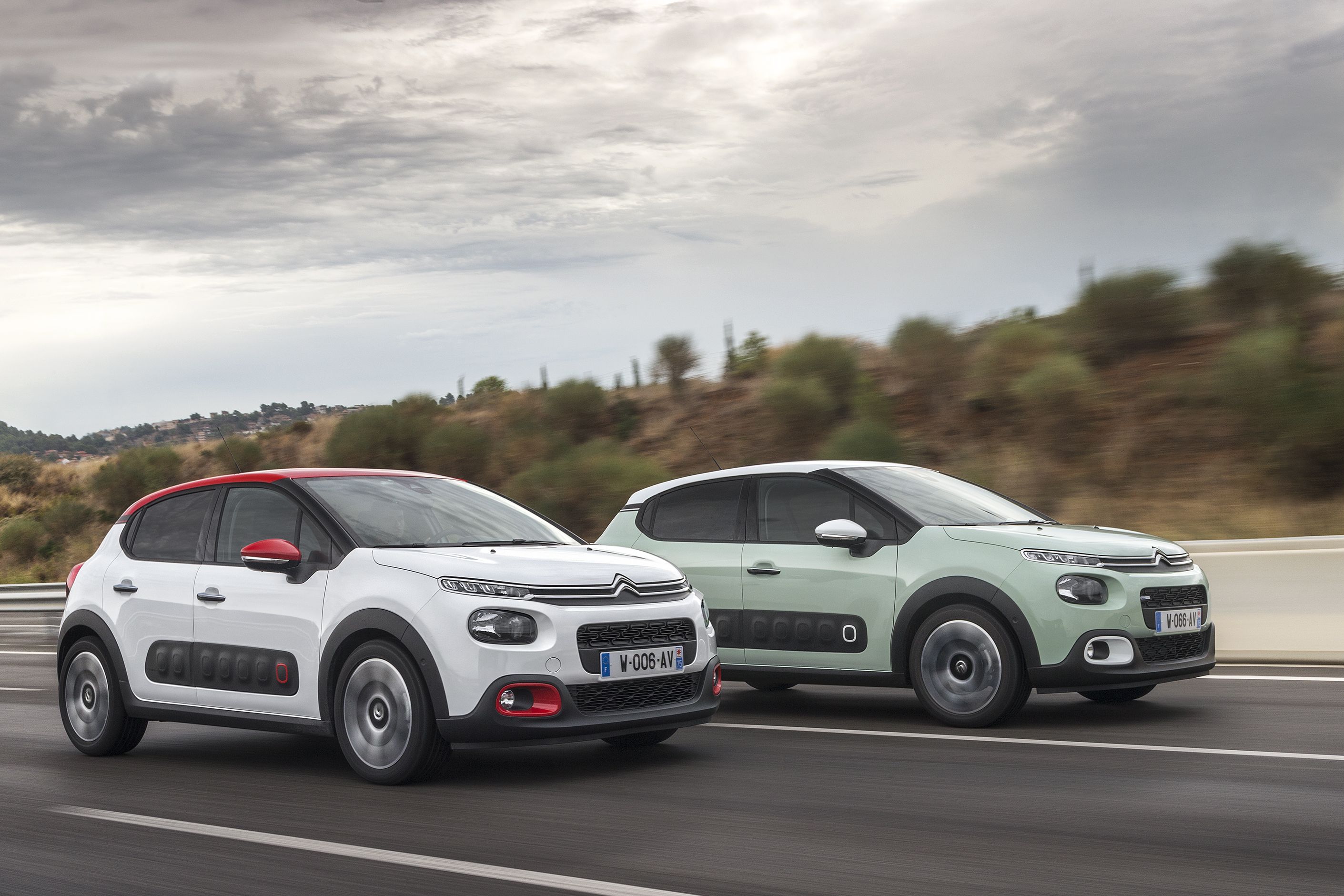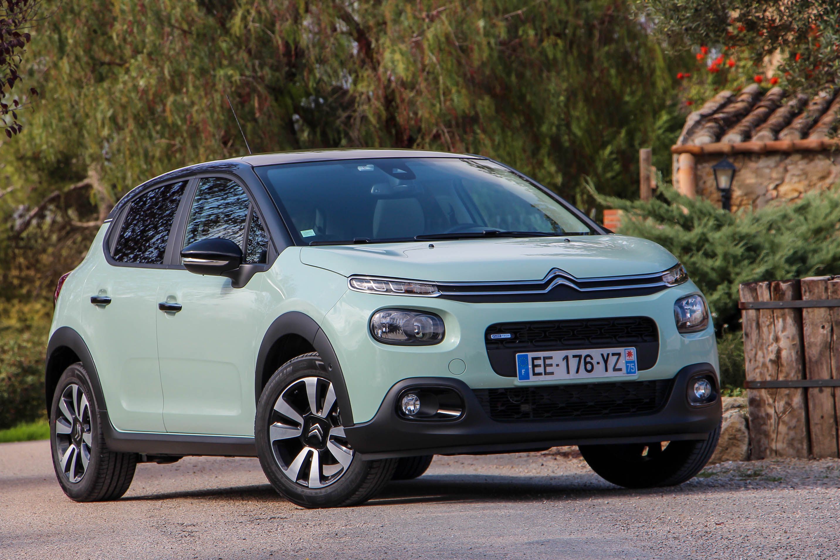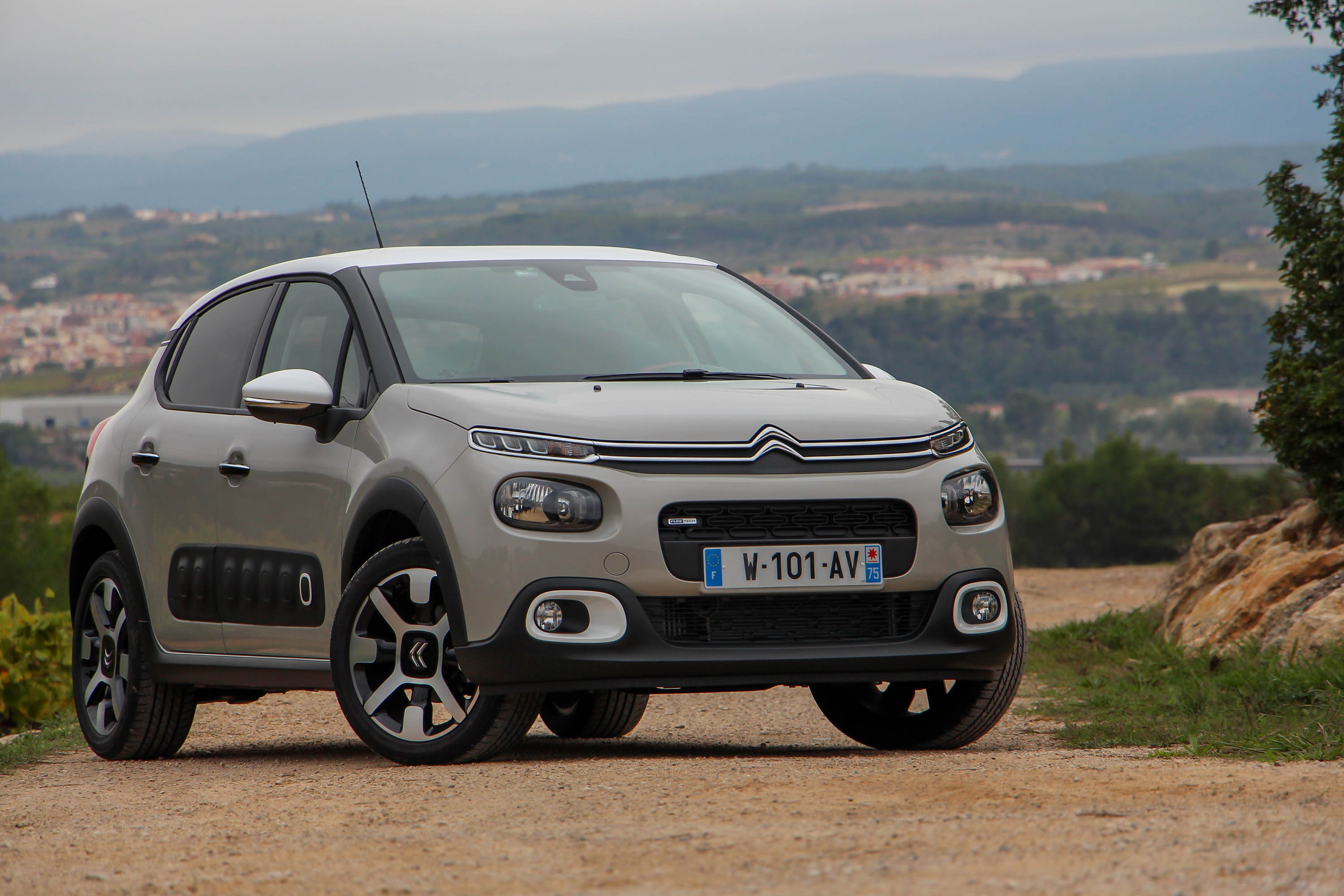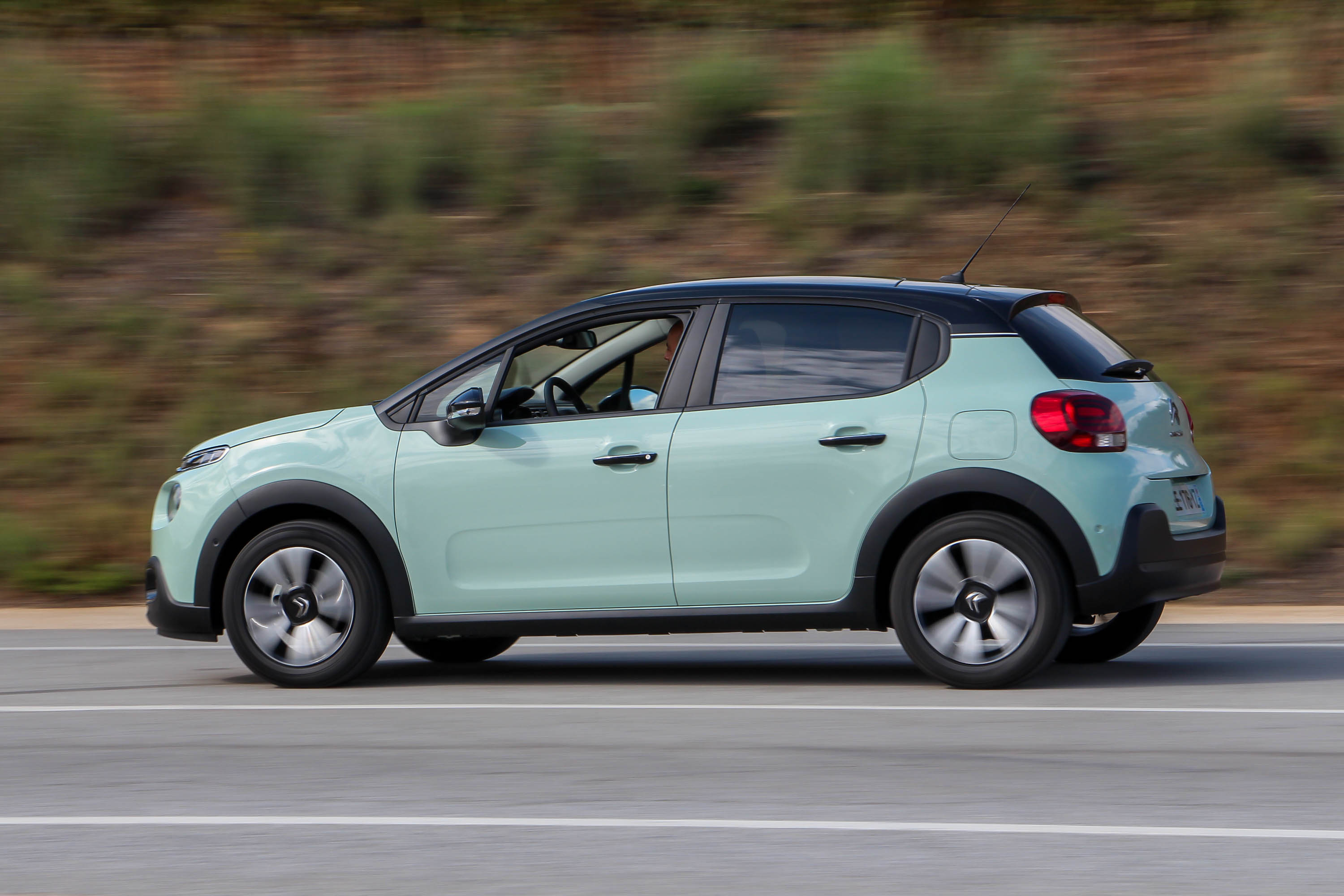 A Barcelona környéki menetpróbán a hazai kínálatban várhatóan az eladások döntő részét adó 82 lóerős szívó és a 110 lóerős turbós benzinest lehetett kipróbálni. Utóbbit a hozzá egyedül opciós hatfokozatú automatával. A többi motor mind ötsebességes kézi váltót kap. A PureTech 82 esetén utóbbi hosszú, nem túl határozottan megvezetett úton, franciásan járt. Viszont a nem egész 1 tonnás kisautót két személlyel meglepően jól vitte az erősebbik szívómotor is. Városban egészen élénknek mutatkozott, autópályán is elment, 130 km/óránál közel 4000/perc a fordulatszáma. Hangja ott már jól hallható, kissé wartburgos, alapjárata érezhetően háromhengeres, de rezonanciája nem vészes. Bár az NEDC norma szerinti vegyes fogyasztási érték 4,7 l/100 km, a Citroën inkább az új, valós fogyasztási ciklus szerinti 6,0 l/100 km értékre büszke, én kicsikét arra is, hogy az elég vegyes, autópályás és városi részeket is masszívan tartalmazó tesztkörünkön 5,9 l/100 km adódott.