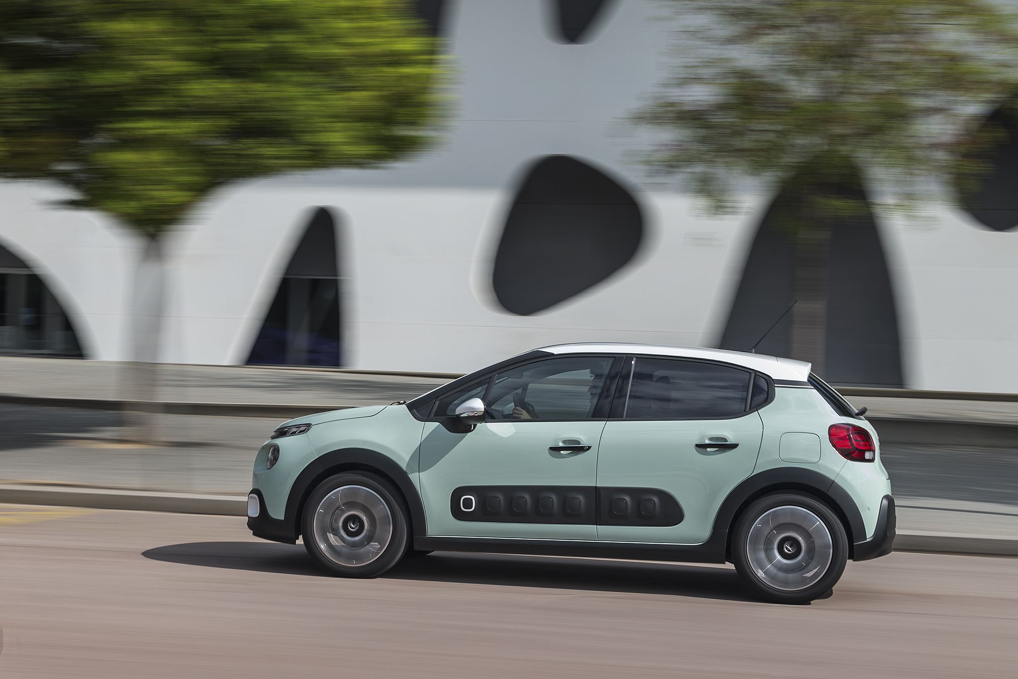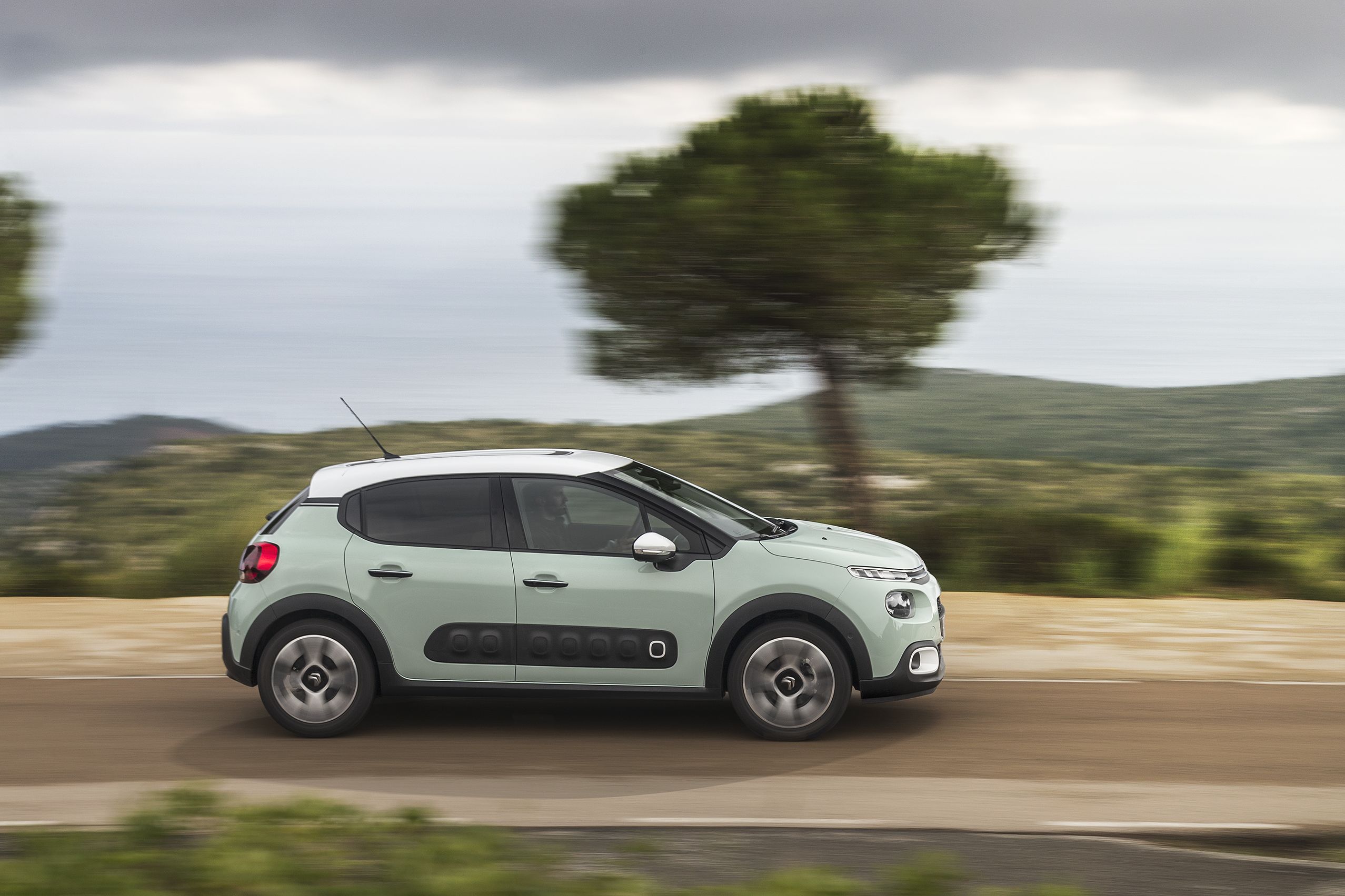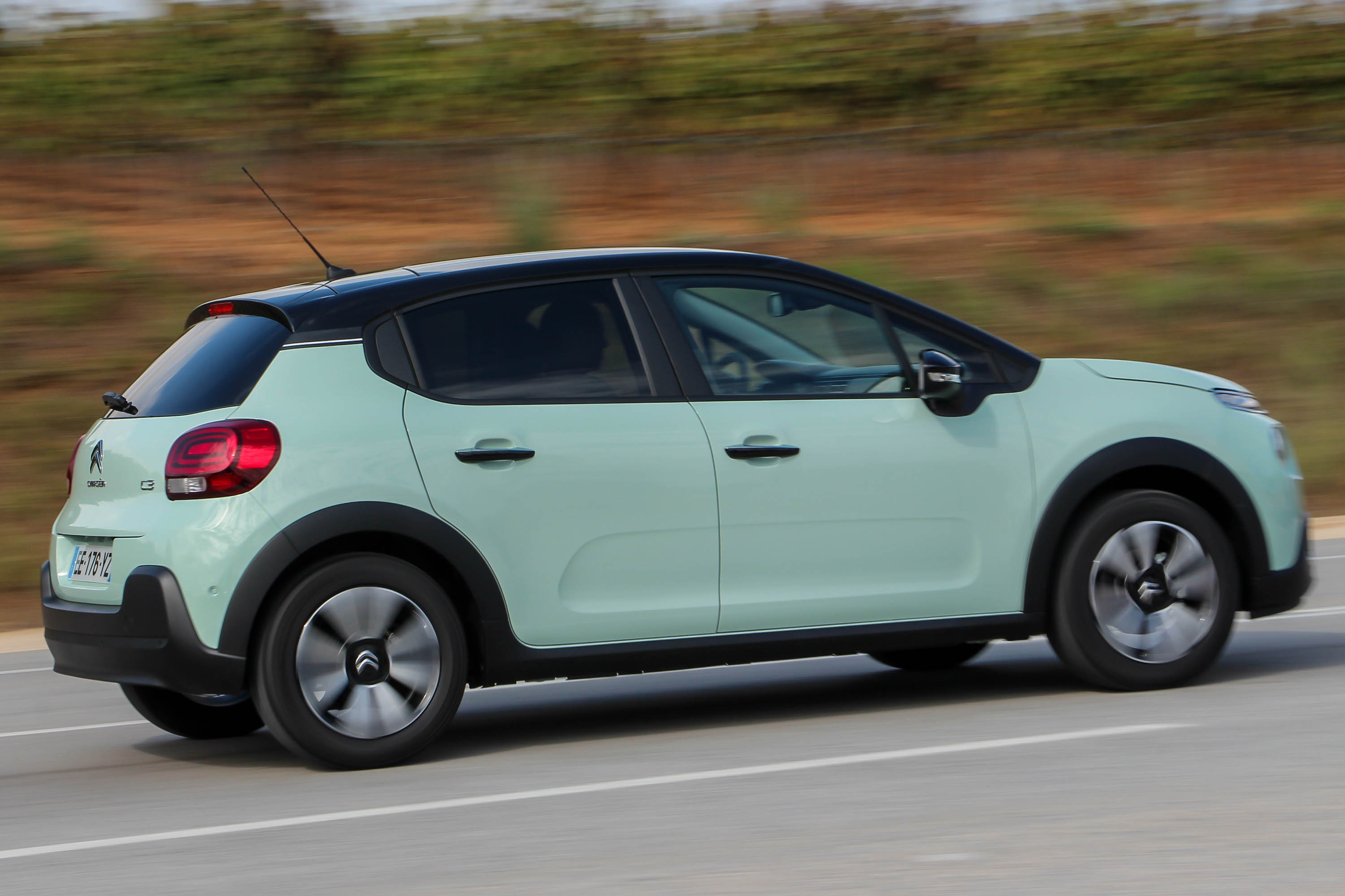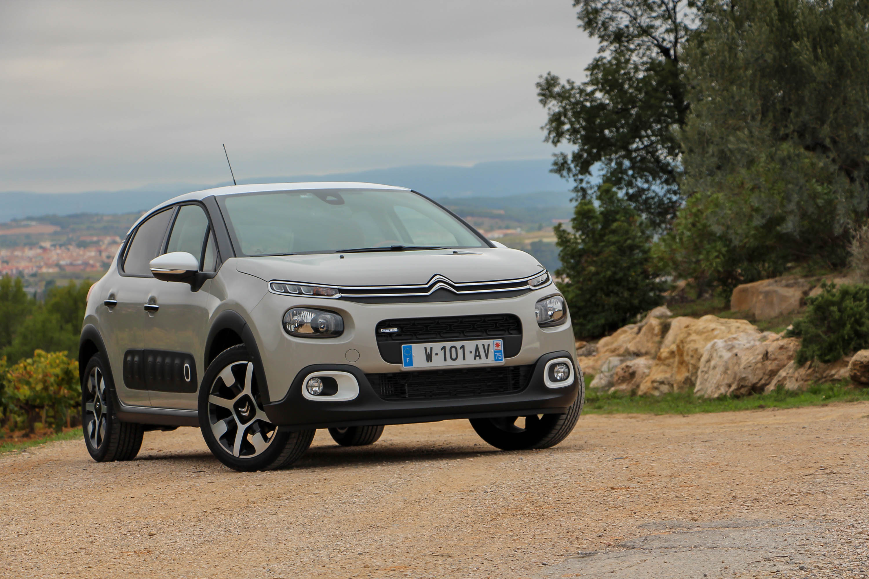 Airbump betétek nélkül is csinos a C3, nem csak az itt látható 16 colos, a másik próbált példány 17 colos kerekeivel is komfortosnak bizonyult - a spanyol utakon