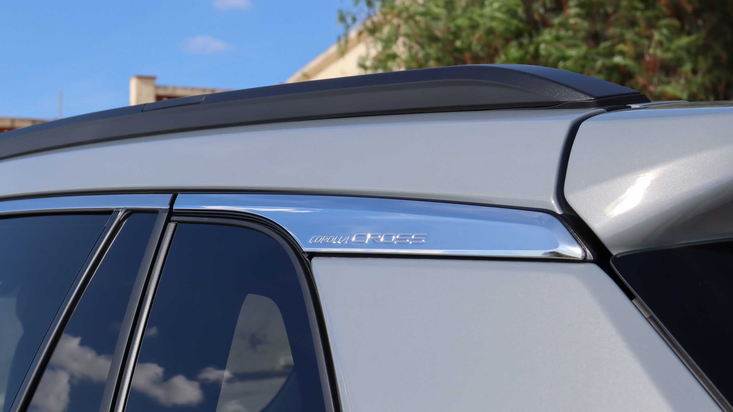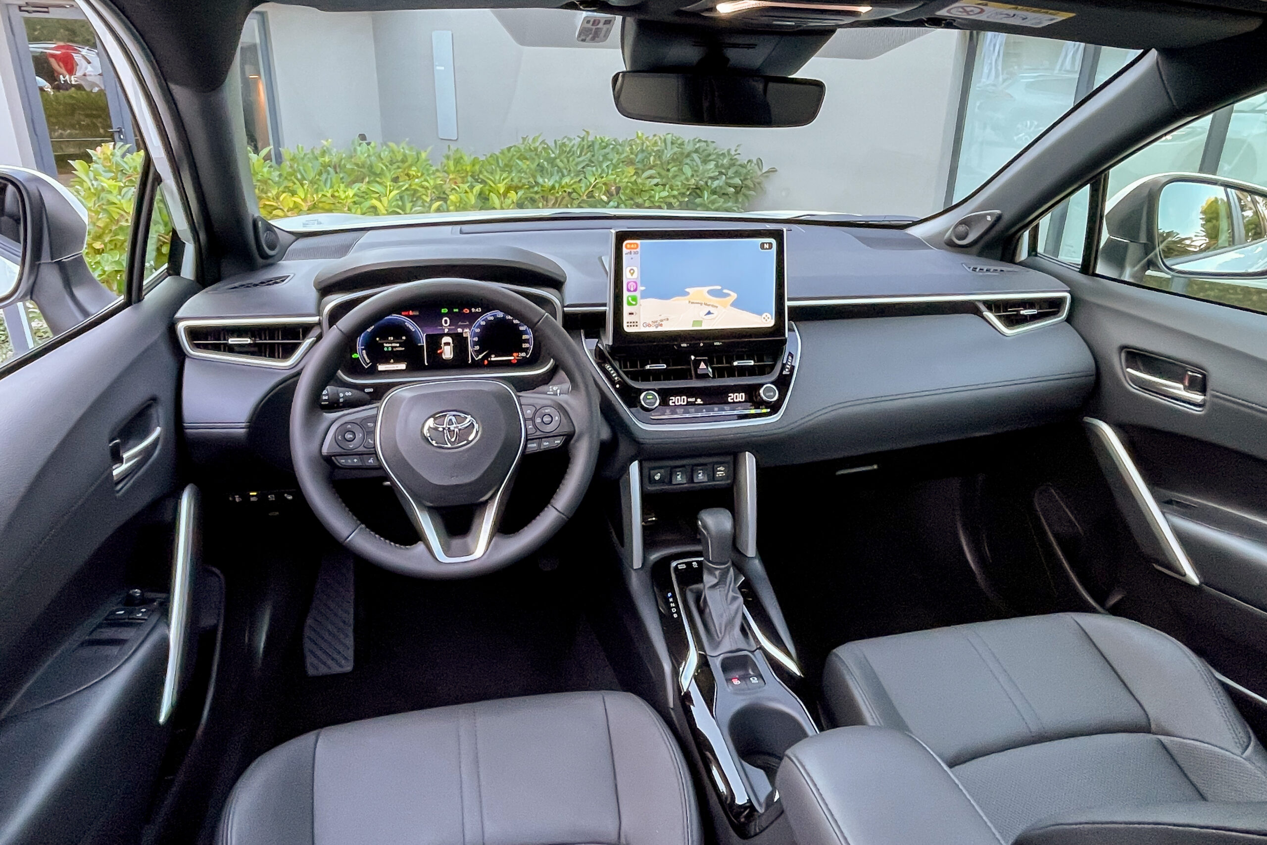 Robusztus kiállású, 4,46 méteres hosszával ugyanakkor messze nem ormótlan. Kellemesen magasra kell beülni, de a fejtér is bőséges. A magasabb üléspozícióval és a még magasabbra emelt műszerfallal sokkal kellemesebb a Corollából ismert beltér-dizájn. Lényegében itt debütált az a 12,3 colos, személyre szabható digitális műszerblokk, amit az előszériás példányaival nyáron már vezetett, de a piacra később érkező frissített Corollákban már láthattunk, ugyanez mondható el a 10,5 colos, vezeték nélküli Apple CarPlay-t már most támogató központi érintőképernyőről is. Mindkettő alapáron jár és utóbbi itt végre nem tűnik túl nagynak, nem rontja a kilátást, remek felülnézeti kameraképet is adhat.A tágas beltérben a Corolla és a RAV4 dizájnjának egyvelegét kapjuk, alapáron változtatható képű, 12,3 colos, digitális és persze színes műszerblokkal, 10,5 colos központi érintőképernyővel