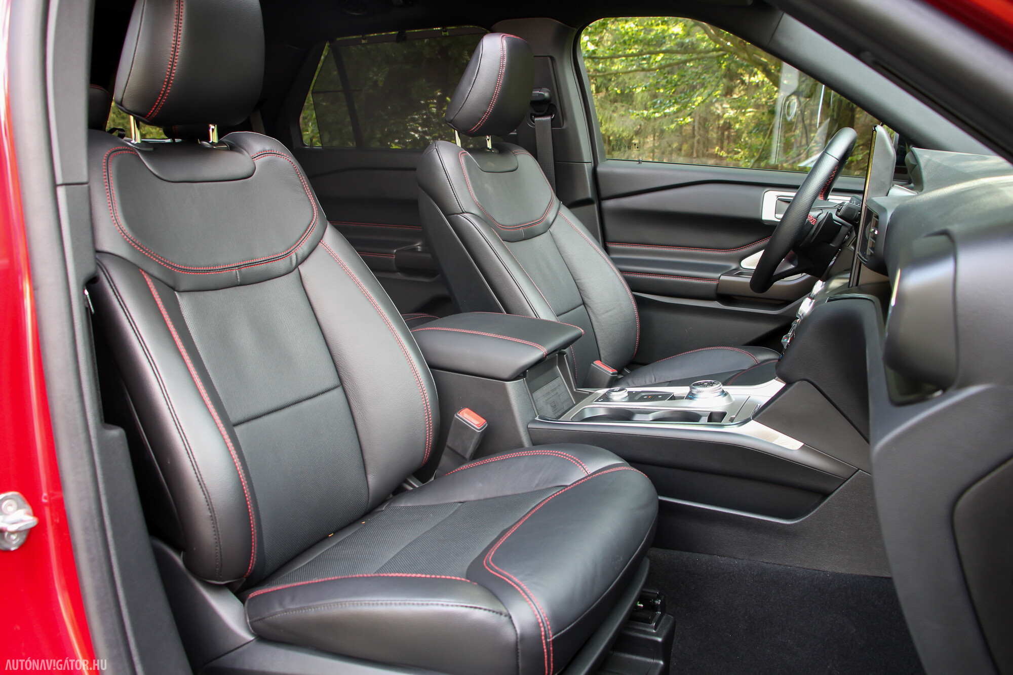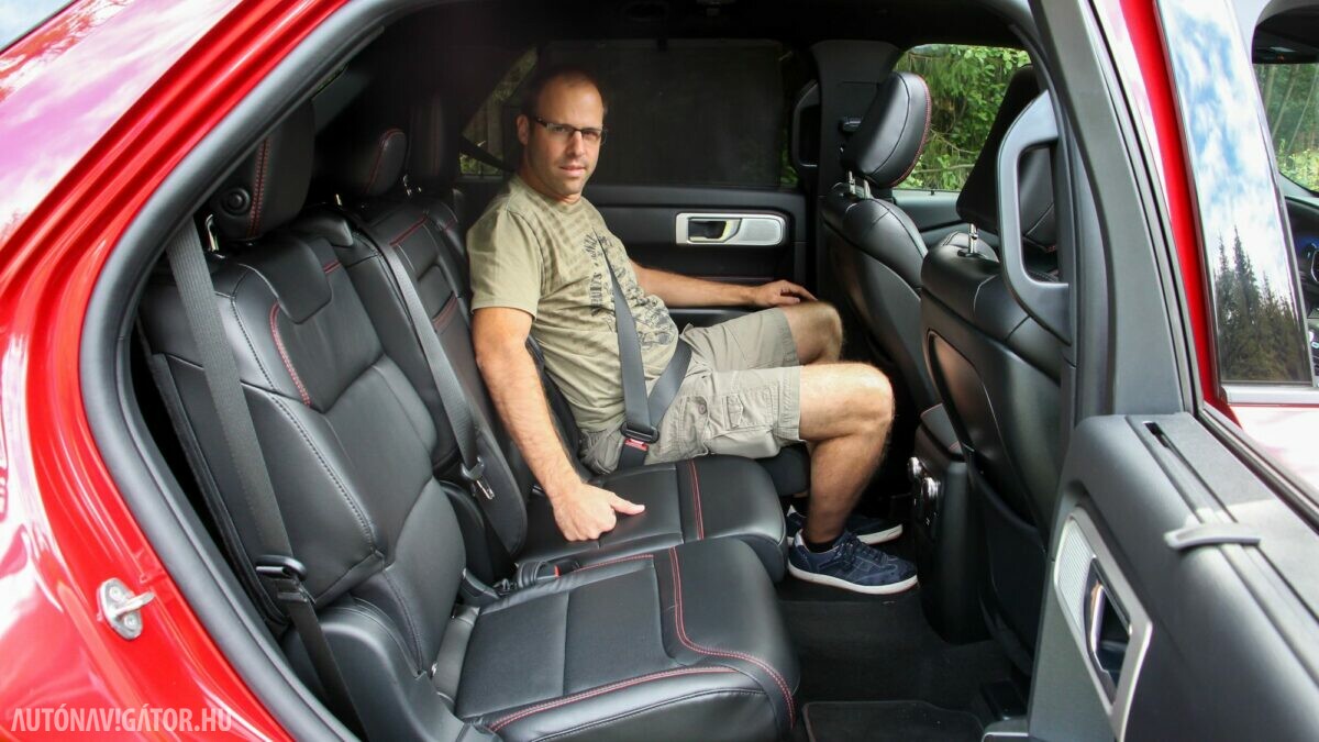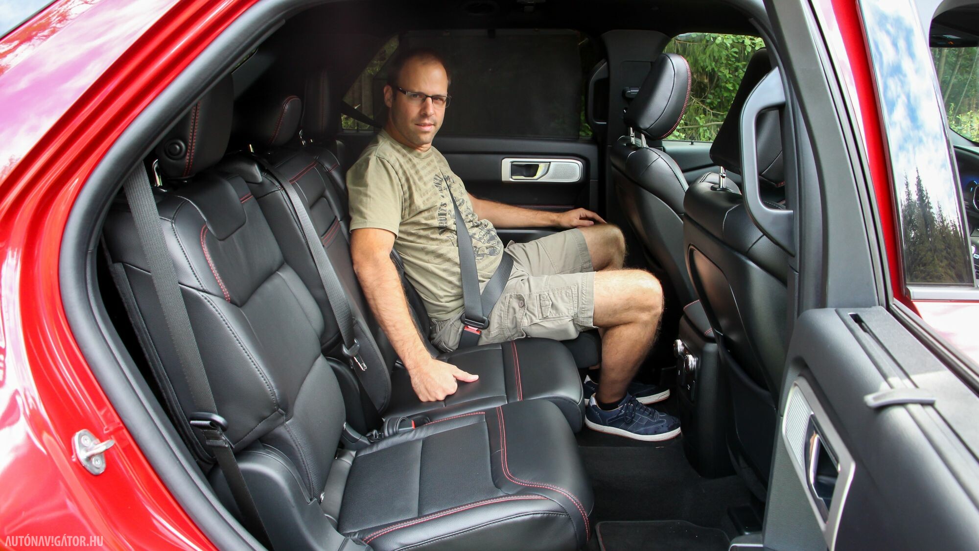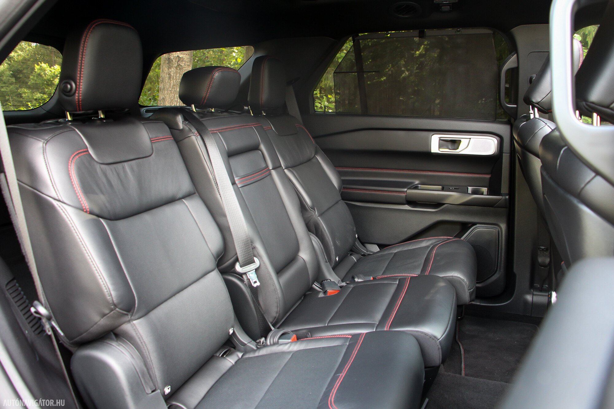 Ahogyan a külső, úgy a belső is tökéletesen hozza Amerikát, tiszta New York-i helyszínelők hangulatot kapunk. Magasra ülhetünk fel a mindenképp bőr borítású, elöl hűthető-fűthető, különféle masszázsprogramokat is kínáló ülésekbe. Hátul is magasan ülünk, jó a kilátás, a belső szélesség az első két sorban 1,5 méter feletti. Ha nincs középső utas, a manapság oly fontos távolságtartás is simán megvan az Explorer fedélzetén. A fontosabb azonban talán az, hogy
