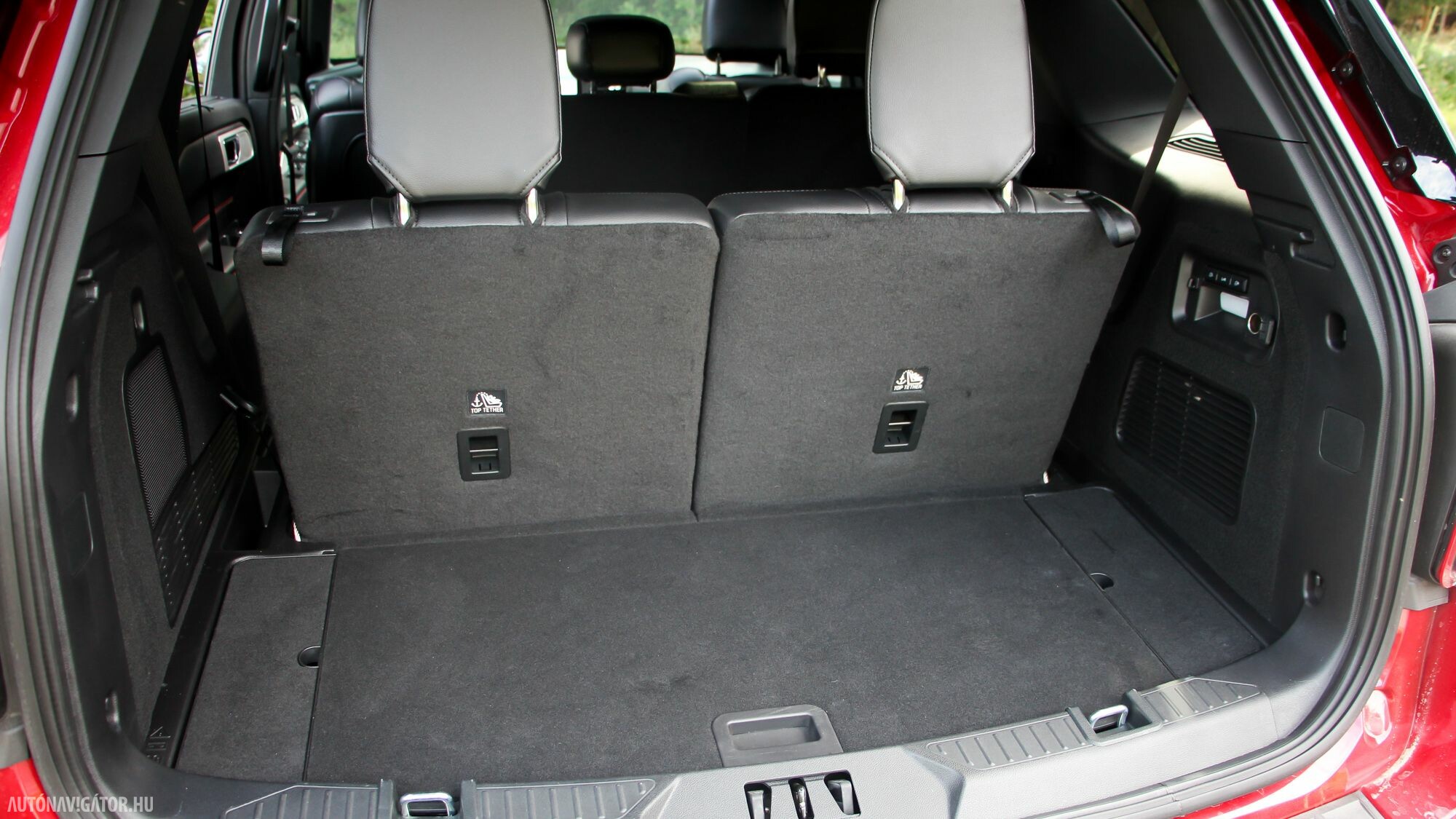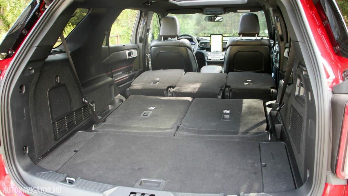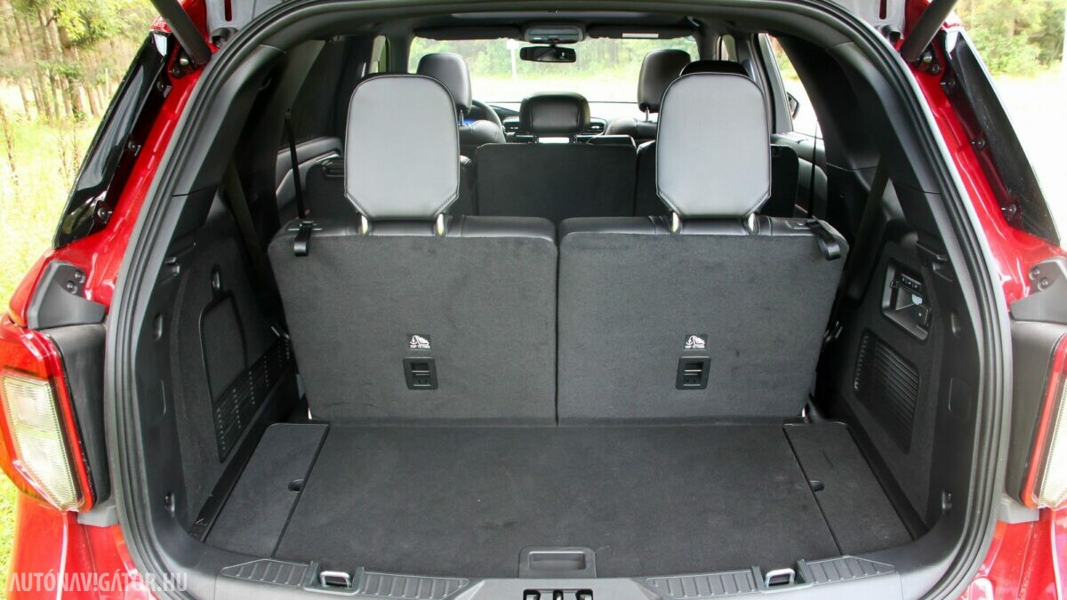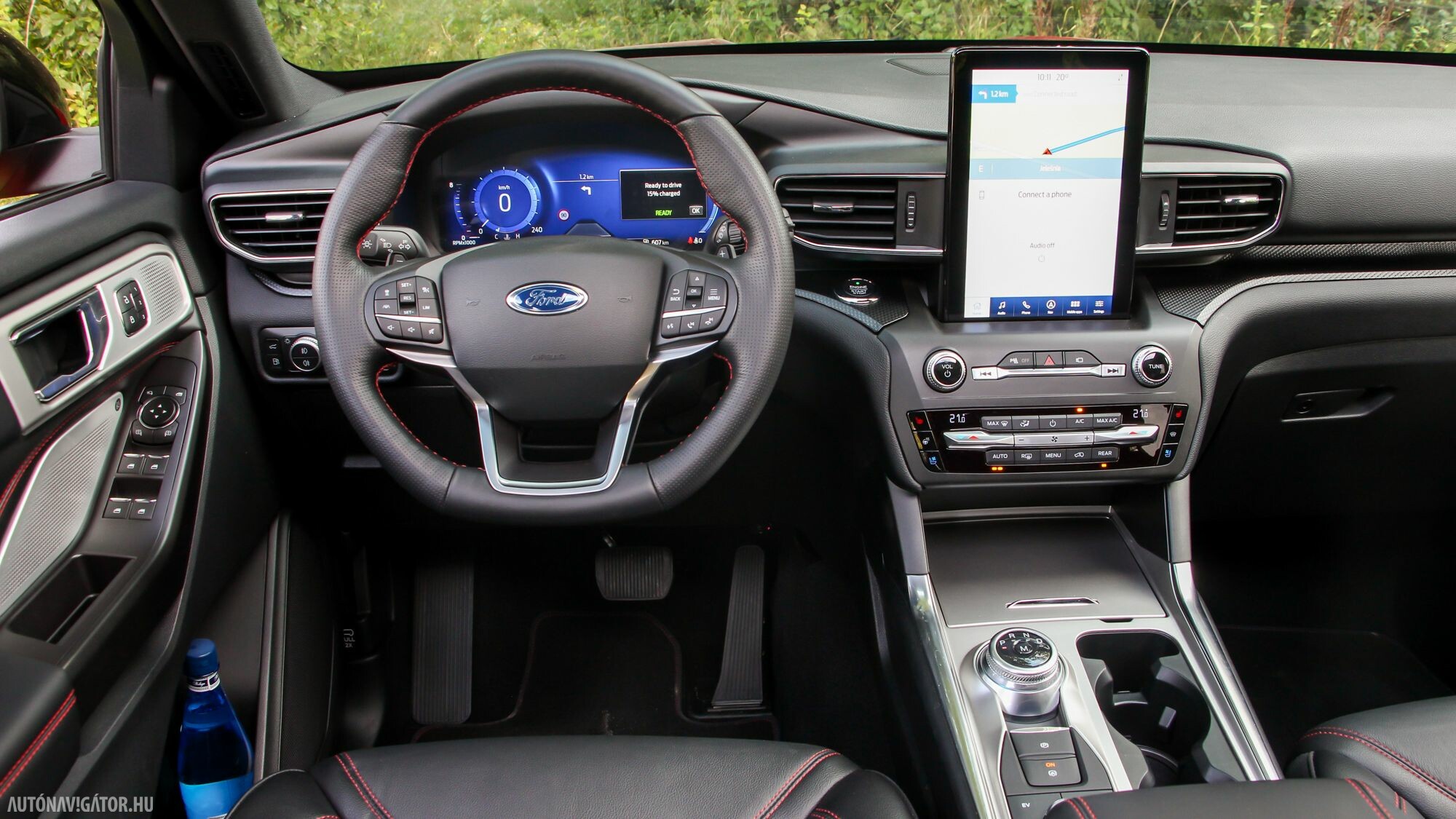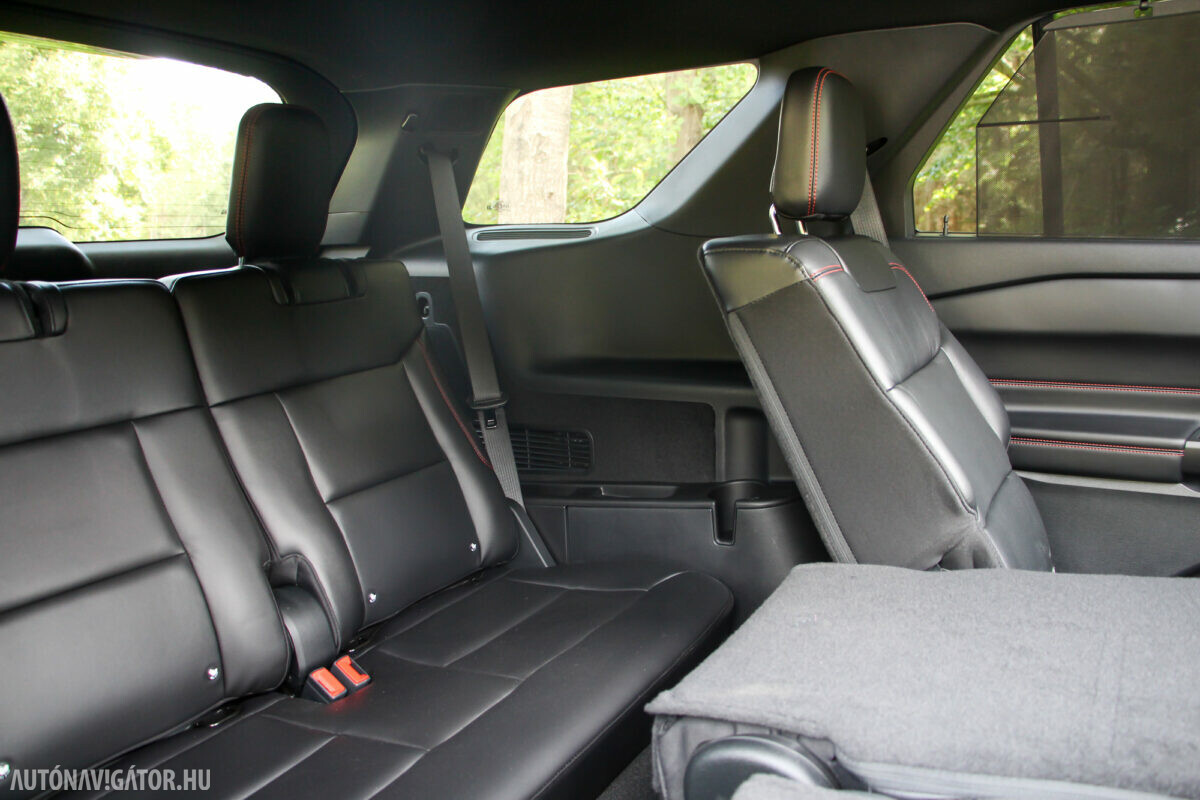 Ahogyan a külső, úgy a belső is tökéletesen hozza Amerikát, tiszta New York-i helyszínelők hangulatot kapunk. Magasra ülhetünk fel a mindenképp bőr borítású, elöl hűthető-fűthető, különféle masszázsprogramokat is kínáló ülésekbe. Hátul is magasan ülünk, jó a kilátás, a belső szélesség az első két sorban 1,5 méter feletti. Ha nincs középső utas, a manapság oly fontos távolságtartás is simán megvan az Explorer fedélzetén. A fontosabb azonban talán az, hogy