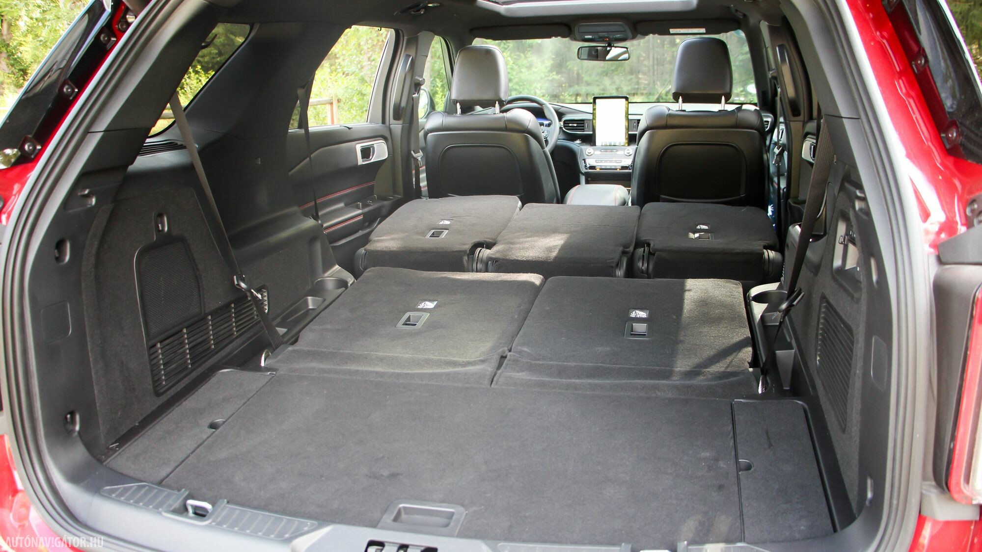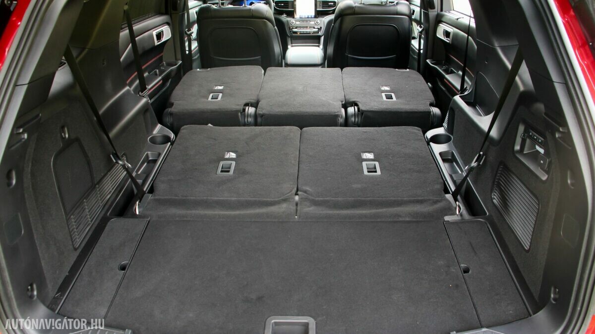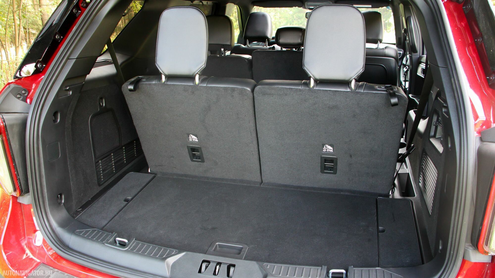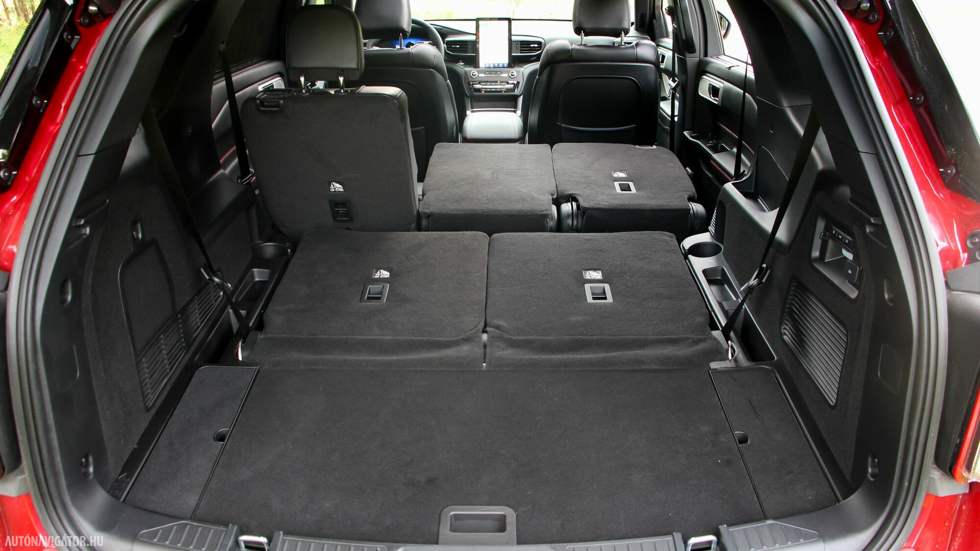 Ahogyan a külső, úgy a belső is tökéletesen hozza Amerikát, tiszta New York-i helyszínelők hangulatot kapunk. Magasra ülhetünk fel a mindenképp bőr borítású, elöl hűthető-fűthető, különféle masszázsprogramokat is kínáló ülésekbe. Hátul is magasan ülünk, jó a kilátás, a belső szélesség az első két sorban 1,5 méter feletti. Ha nincs középső utas, a manapság oly fontos távolságtartás is simán megvan az Explorer fedélzetén. A fontosabb azonban talán az, hogy