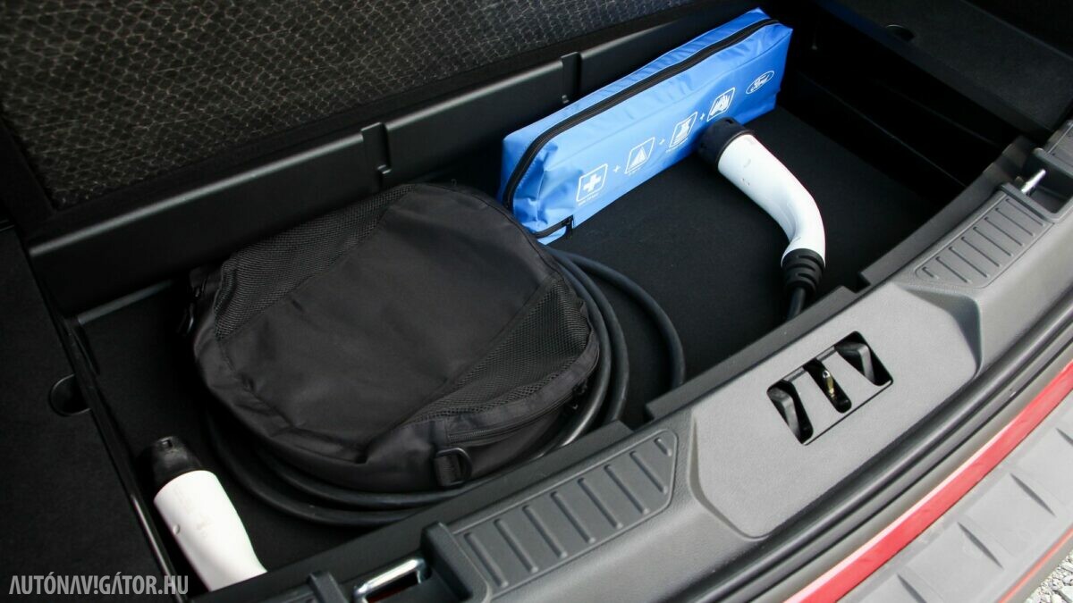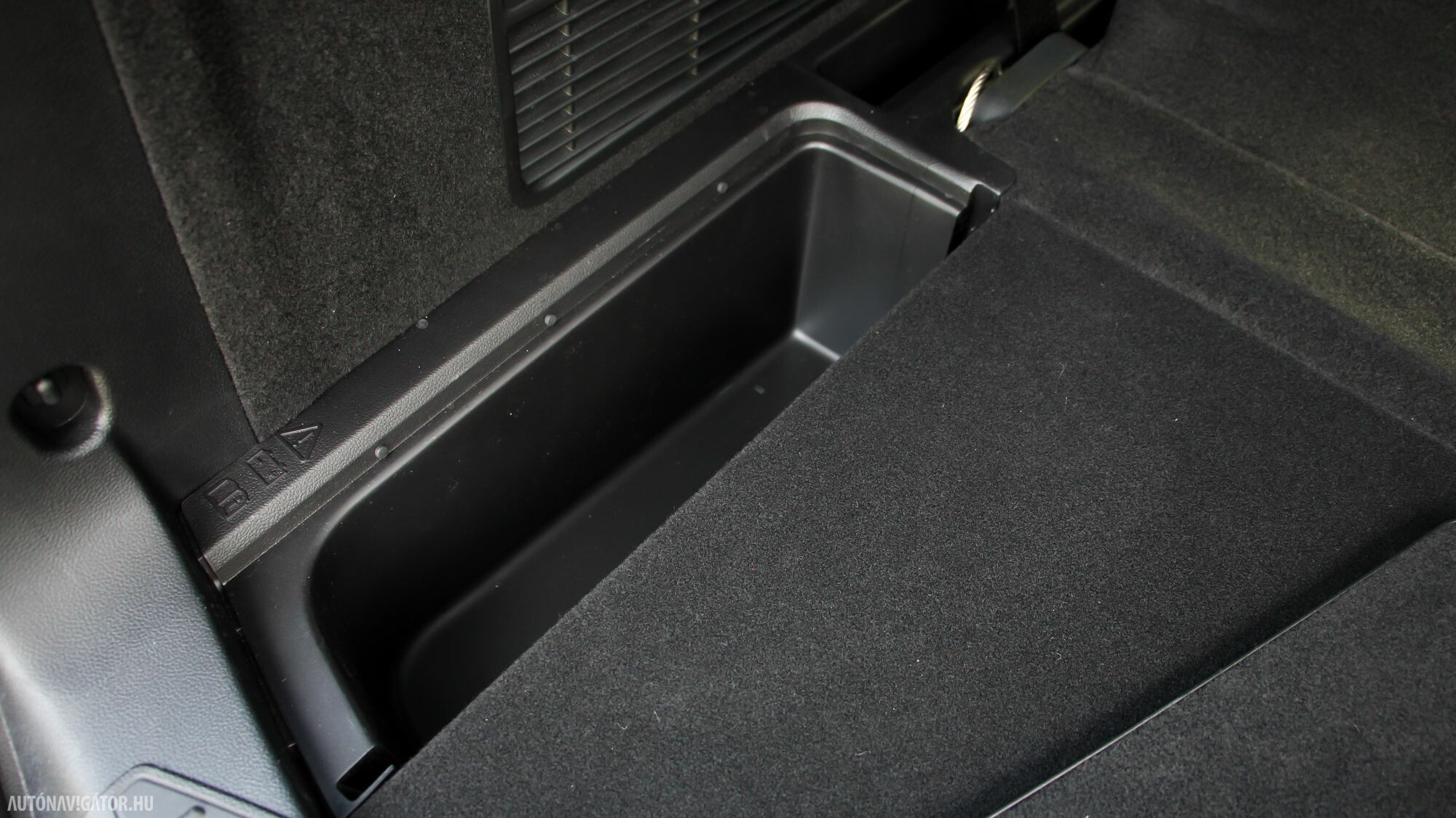 Pohártartó, 12V-os csatlakozó mindenhova jutott, a leghátsó sor is isofixes, mint a középső sor szélső helyei, a csomagtér végében padlórekeszbe tehetjük a töltőkábelt