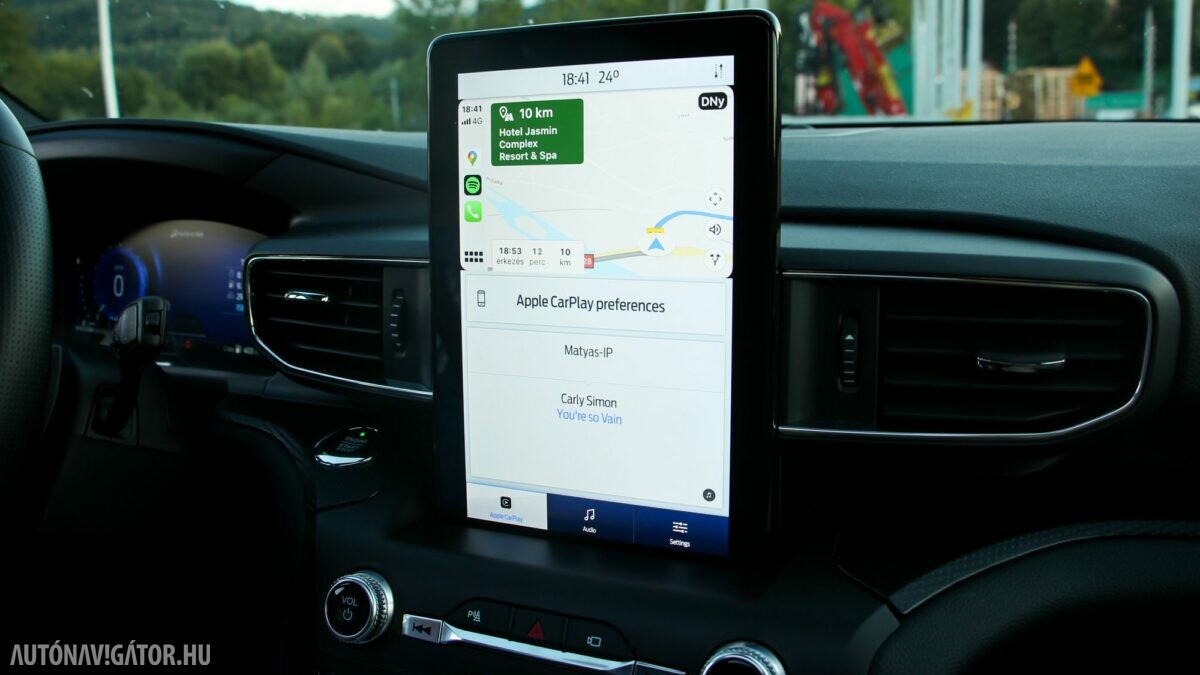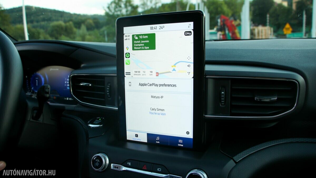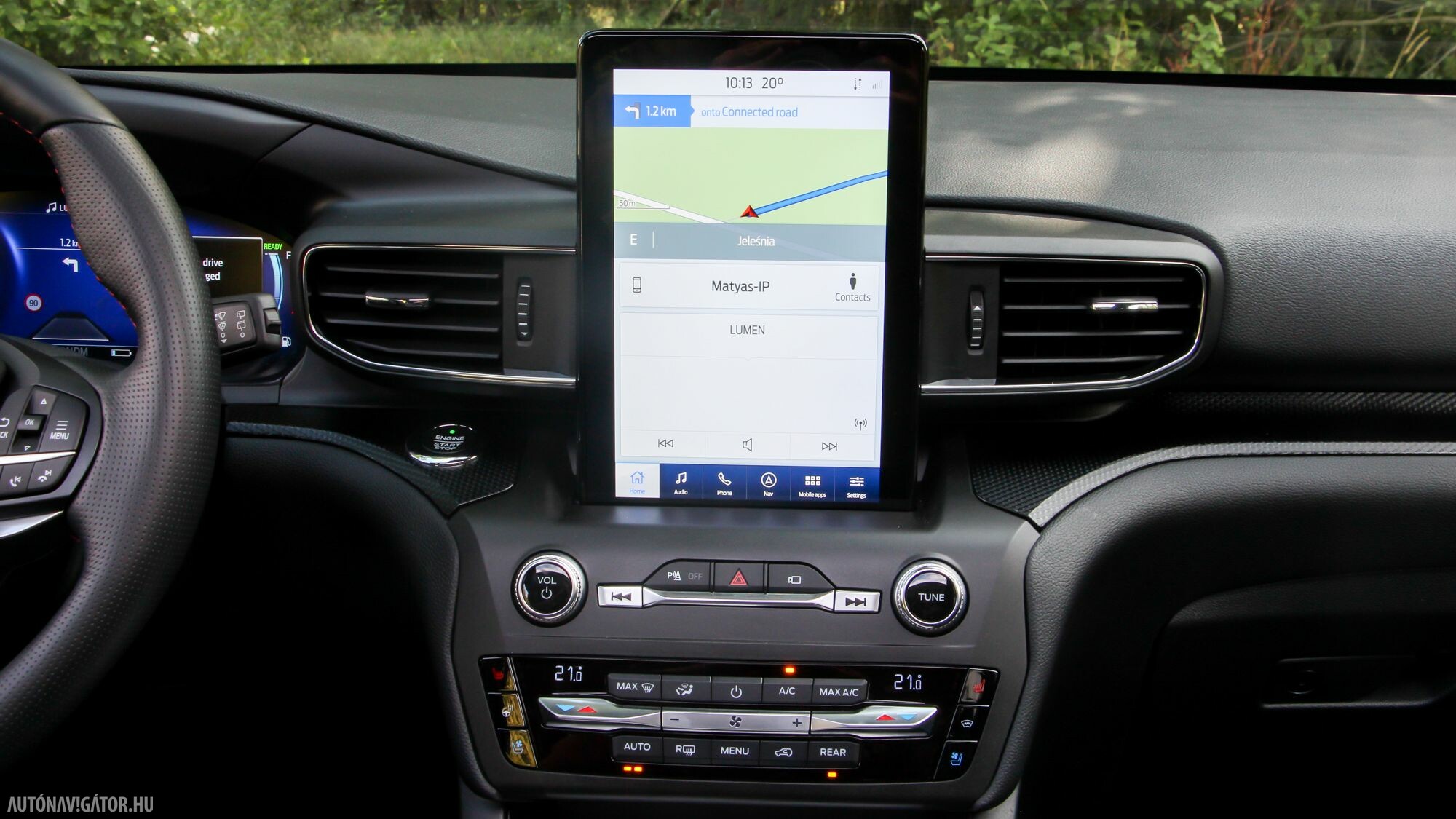 Nyilván nem olcsó a 25,98-26,18 milliós vételárával, ám ha azt vesszük, hogy csakis a metálfényezés az egyetlen extra, amit kérhetünk hozzá (nem mellesleg a Platinum verzió felára többszörösen megtérül az olcsóbb fényezés-feláraival), már rögtön nem rossz a fekvése. Millió egyéb mellett az Explorer is ad fedélzeti wifit, okostelefonos vezérelhetőséget, a már említett bőrkárpitot és napfénytetőt, araszolófunkciós távolságtartós tempomatot és sávtartót, parkolóautomatikát és első-hátsó (felülnézeti képet is adó) kamerákat, továbbá 12,3 colos digitális műszerfalat, Apple CarPlay funkciós, 10,1 colos érintőképernyőt és 14 hangszórós B&O hifit. Utóbbi mindenképp megérdemli a dicséretet: valóban prémium hangélményt kapunk, a tágas autóban mondjuk volt tér a hangszórók megfelelő elhelyezésére.