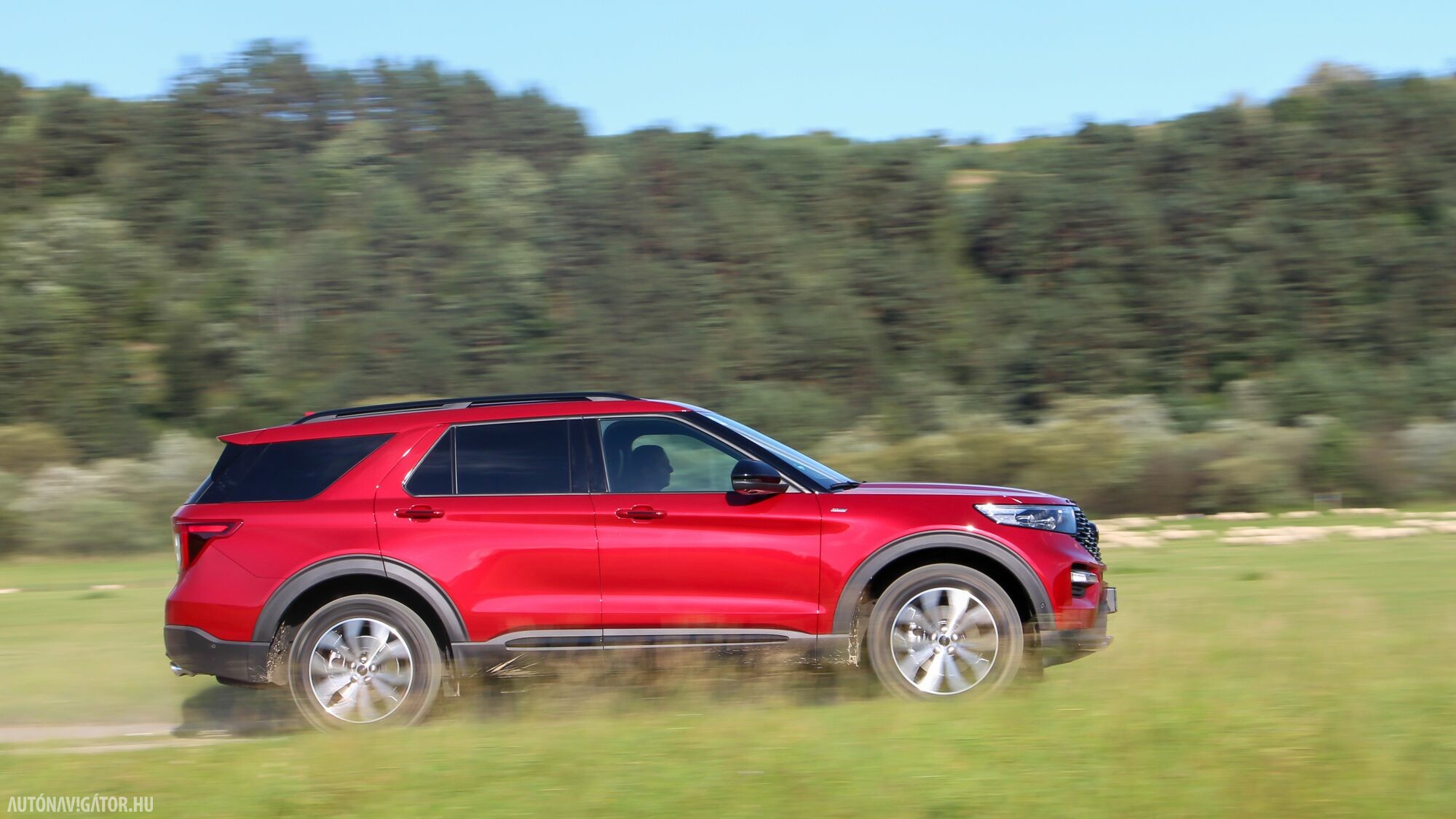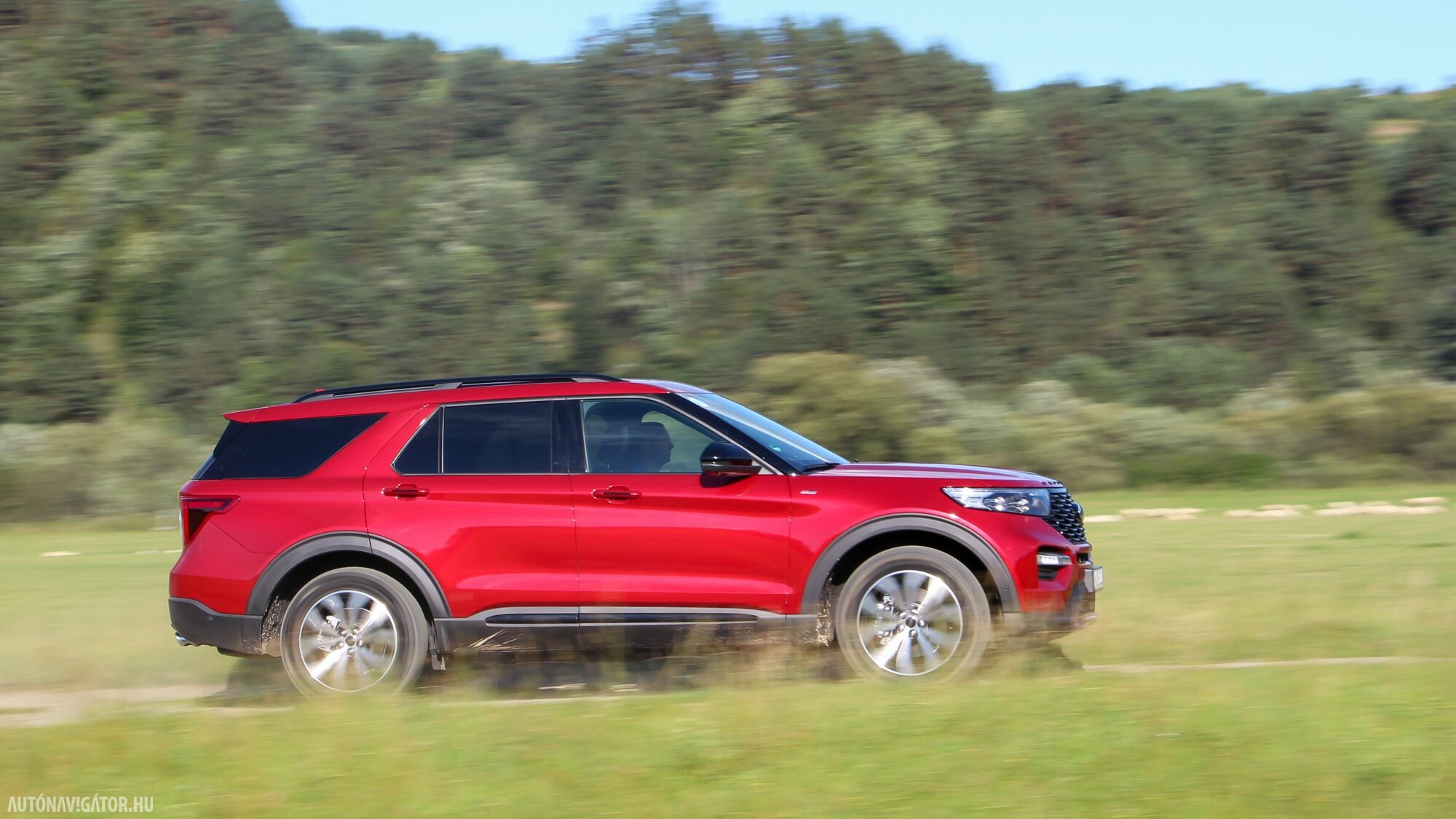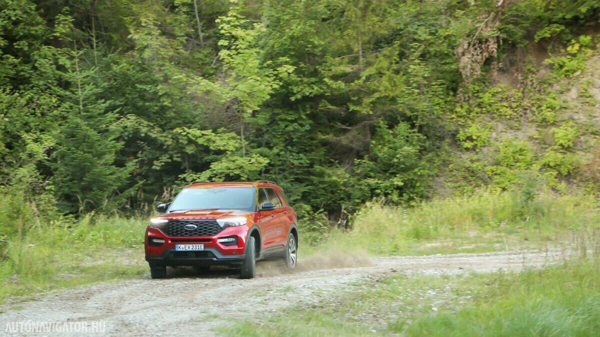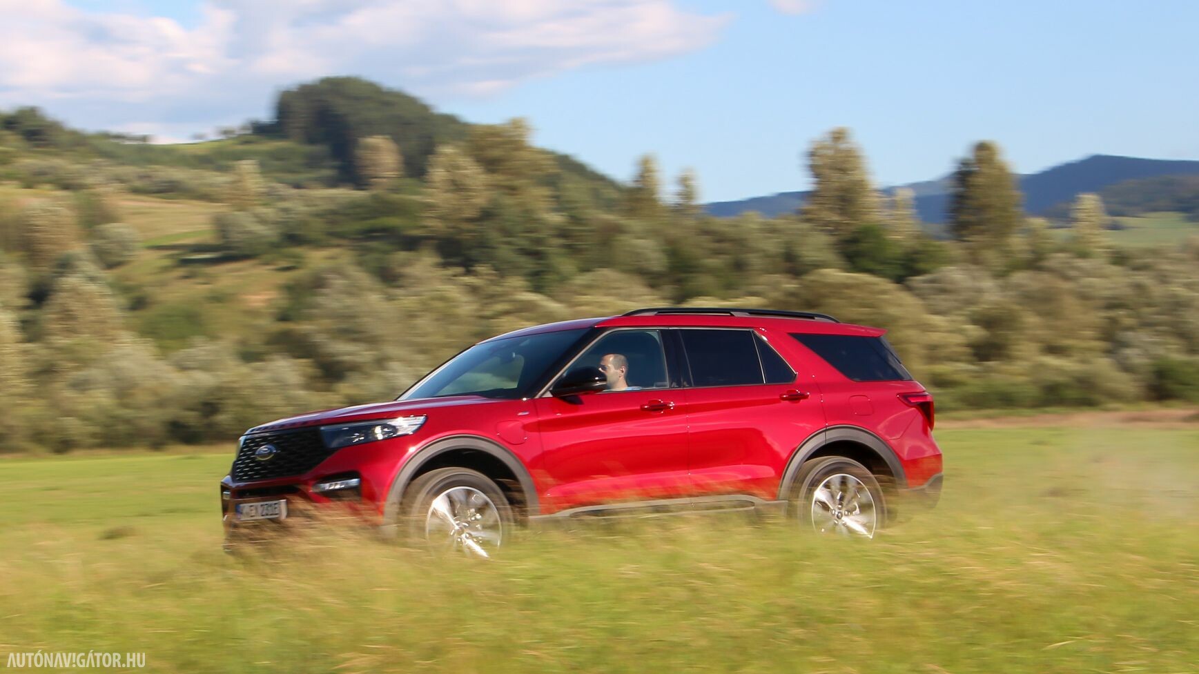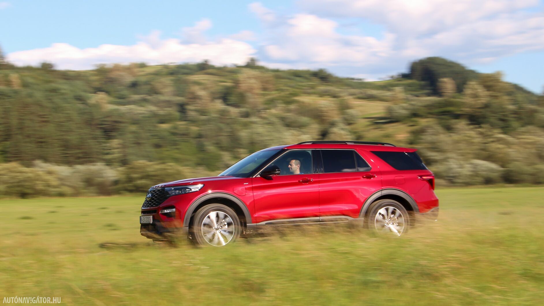 A 457 lóerő és a 825 Nm nyomaték az összetett rendszerrel is érdekes eredményt szül: laza talajon kis gázra is négy elforgó kerék a reakció (igaz, az előszériás autókon még az európaiaknál ócskább, tengerentúli abroncsok voltak). Ha viszont megvan a tapadás, a rendszer nem kérdez, hanem gyomorszorító gyorsulással válaszol, mindezt mesés V6-os motorhang mellett. A 6 másodperces 100-as sprint a 2,5 tonnás, 2 méter széles monstrumban elképesztő élmény. És a vicc az, hogy mindezt gyakran próbálva, ahol lehetett, ott élményautózva hozott az Explorer 9,1 l/100 km átlagfogyasztást (a fedélzeti számítógép szerint) az egész napos nyúzópróbán. Nem mondom, hogy ezzel az autóval fogjuk megmenteni a világot, mert nyilván nem, ha viszont egy dinamikus és méretes SUV-ra vágyunk, az Explorer nagyon jó választásnak tűnik, már csak azért is, mert a napi ingázás akár benzinégetés nélkül is letudható vele, akkumulátorát konnektorból is nem egész 6 óra alatt felölthetjük, míg egy fali töltődobozzal már 4 óra alatt megvagyunk.