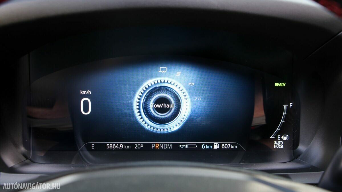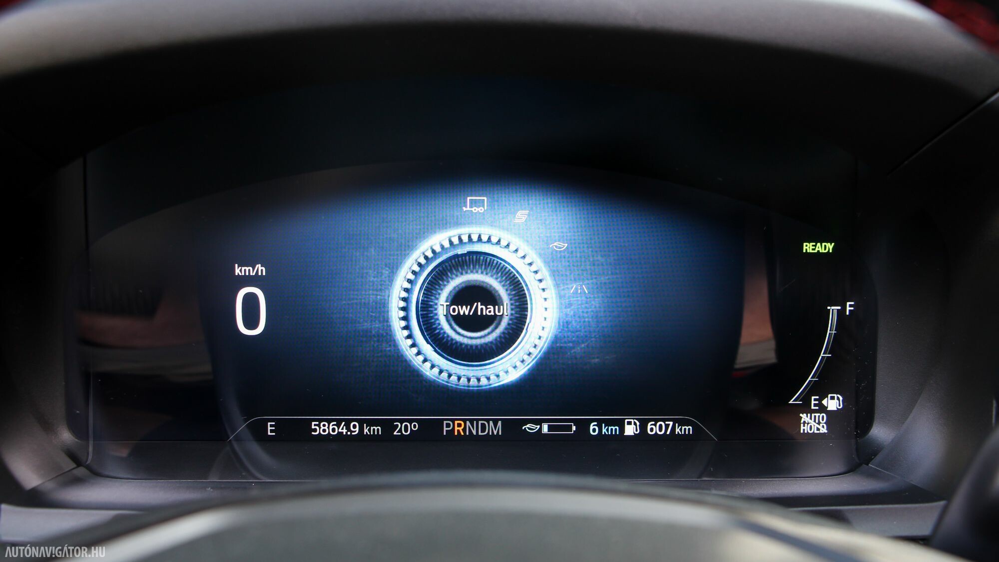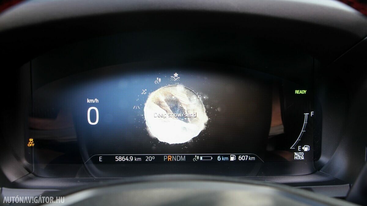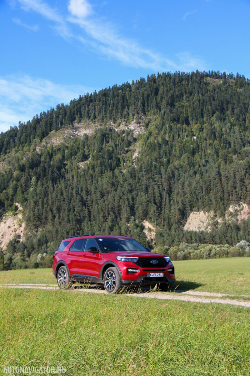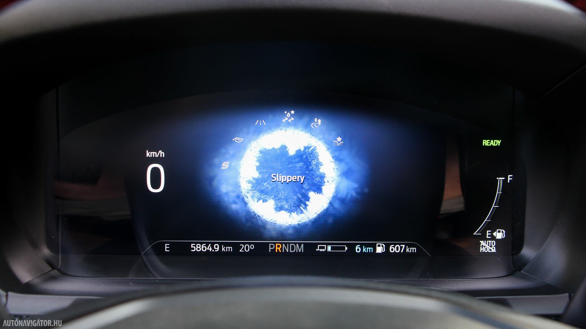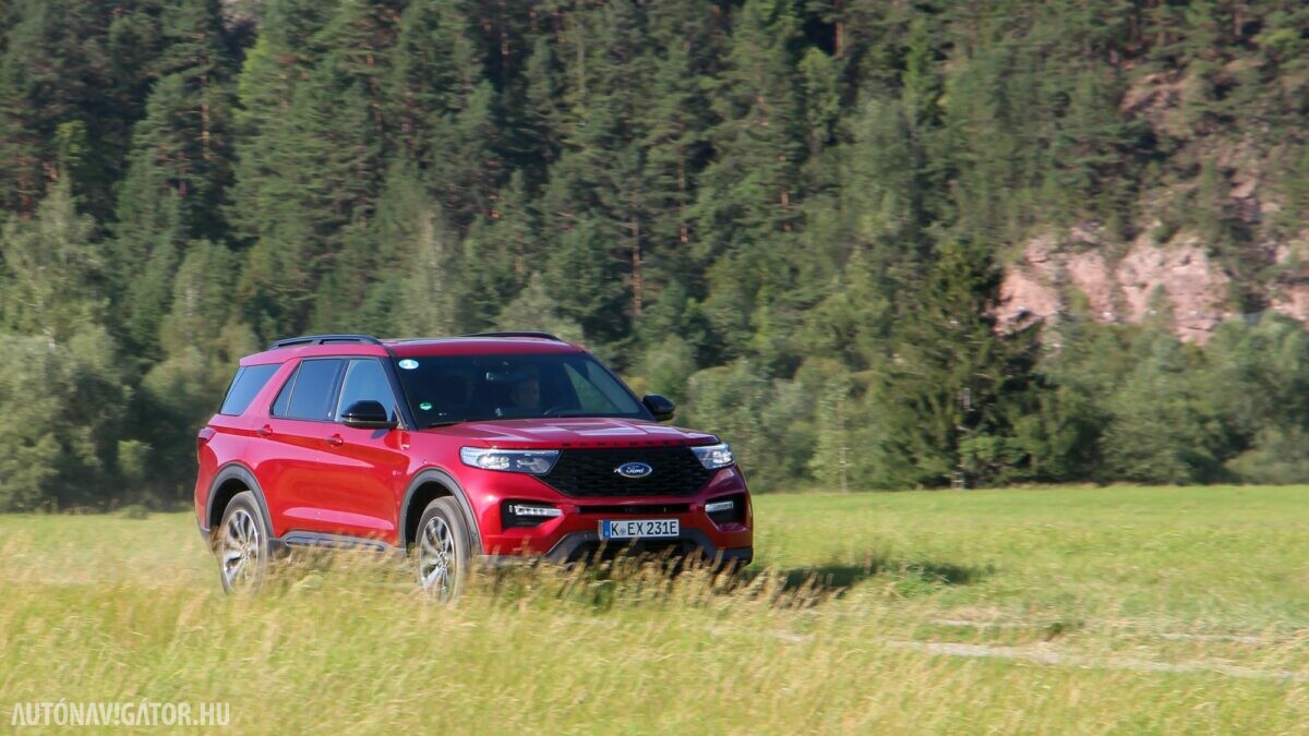 A 457 lóerő és a 825 Nm nyomaték az összetett rendszerrel is érdekes eredményt szül: laza talajon kis gázra is négy elforgó kerék a reakció (igaz, az előszériás autókon még az európaiaknál ócskább, tengerentúli abroncsok voltak). Ha viszont megvan a tapadás, a rendszer nem kérdez, hanem gyomorszorító gyorsulással válaszol, mindezt mesés V6-os motorhang mellett. A 6 másodperces 100-as sprint a 2,5 tonnás, 2 méter széles monstrumban elképesztő élmény. És a vicc az, hogy mindezt gyakran próbálva, ahol lehetett, ott élményautózva hozott az Explorer 9,1 l/100 km átlagfogyasztást (a fedélzeti számítógép szerint) az egész napos nyúzópróbán. Nem mondom, hogy ezzel az autóval fogjuk megmenteni a világot, mert nyilván nem, ha viszont egy dinamikus és méretes SUV-ra vágyunk, az Explorer nagyon jó választásnak tűnik, már csak azért is, mert a napi ingázás akár benzinégetés nélkül is letudható vele, akkumulátorát konnektorból is nem egész 6 óra alatt felölthetjük, míg egy fali töltődobozzal már 4 óra alatt megvagyunk.