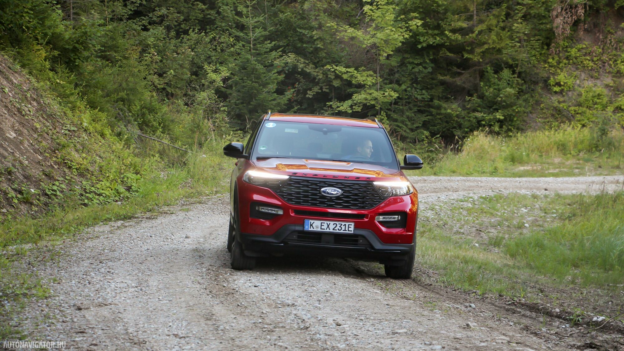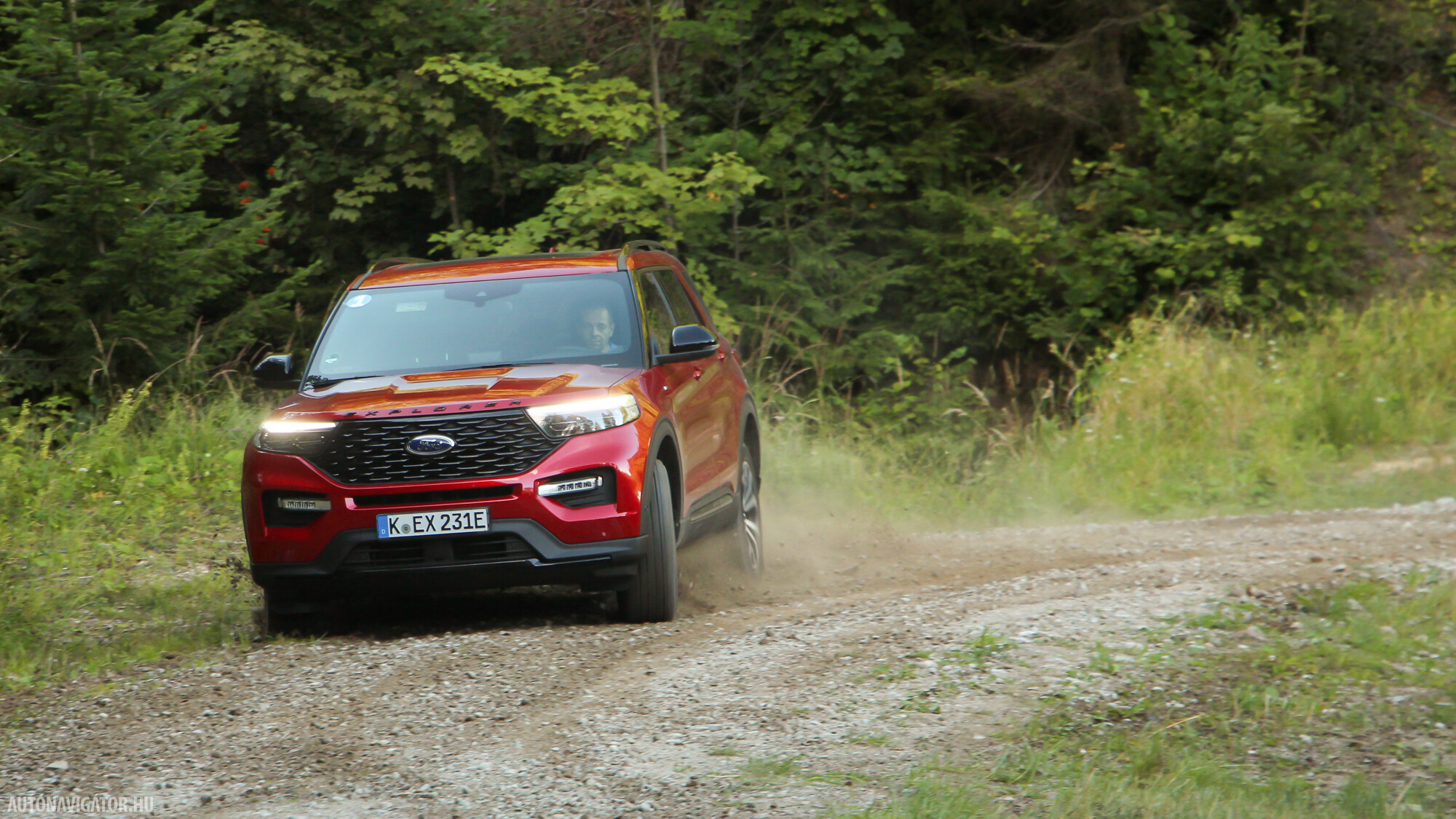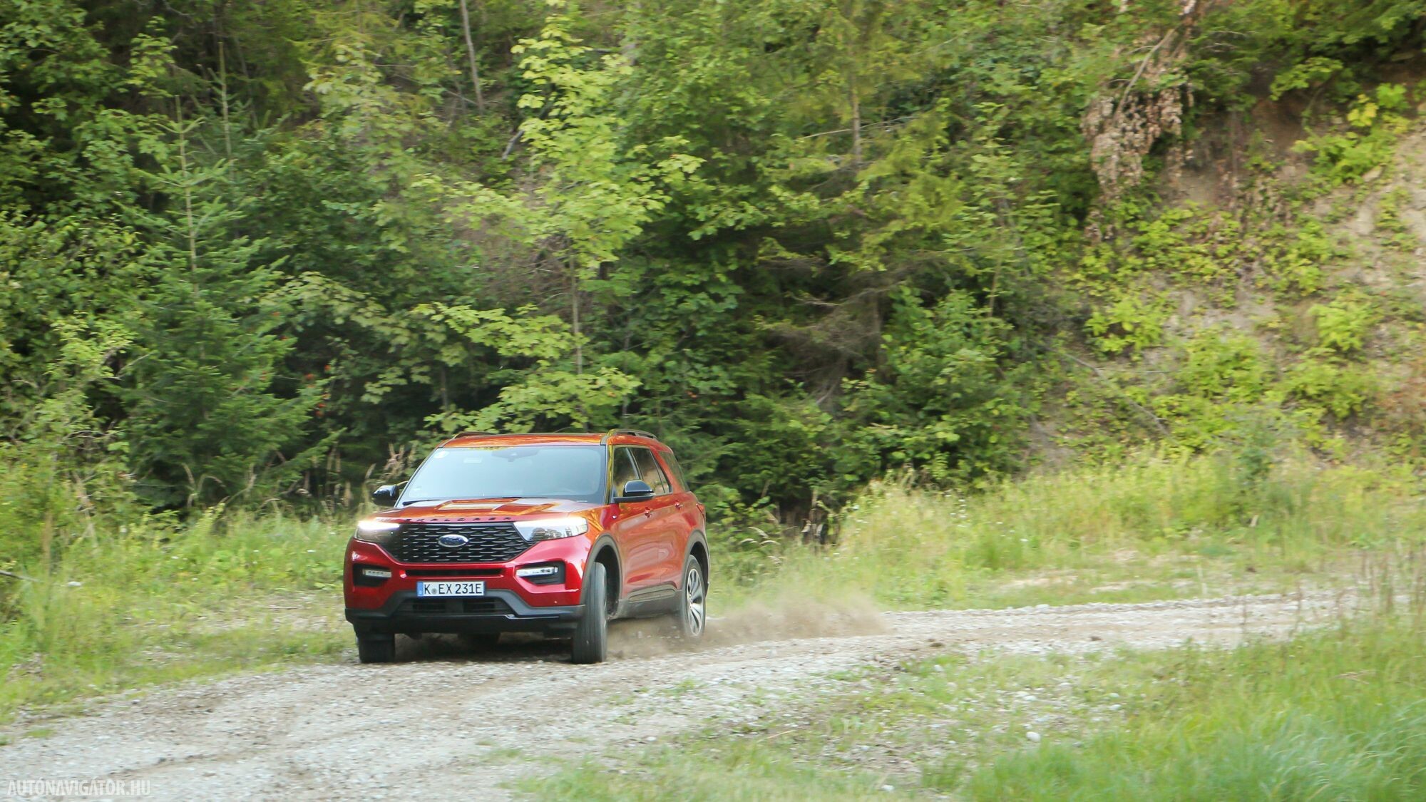 Szinte mindenhol dupla záróvonal, a legkisebb kanyar előtt is sebességkorlátozás - kedvező terep ahhoz, hogy szerény fogyasztást érjünk el, de mi persze túljártunk a szervezők eszén: elvittük terepre, murvás földútra, ahol olyat mutatott az Explorer, amit nem hittünk volna róla. Igaz, ha nem vittük volna, akkor is lett volna ilyen, a Ford új csúcsmodellje sok kellemes meglepetést tartogat. Azt már eddig is tudtuk, hogy gyakorlatilag