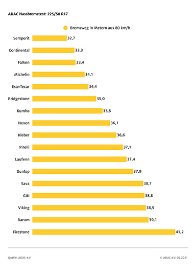 ADAC nyárigumiteszt 2021 − 225/50 R17 Y - eredmények