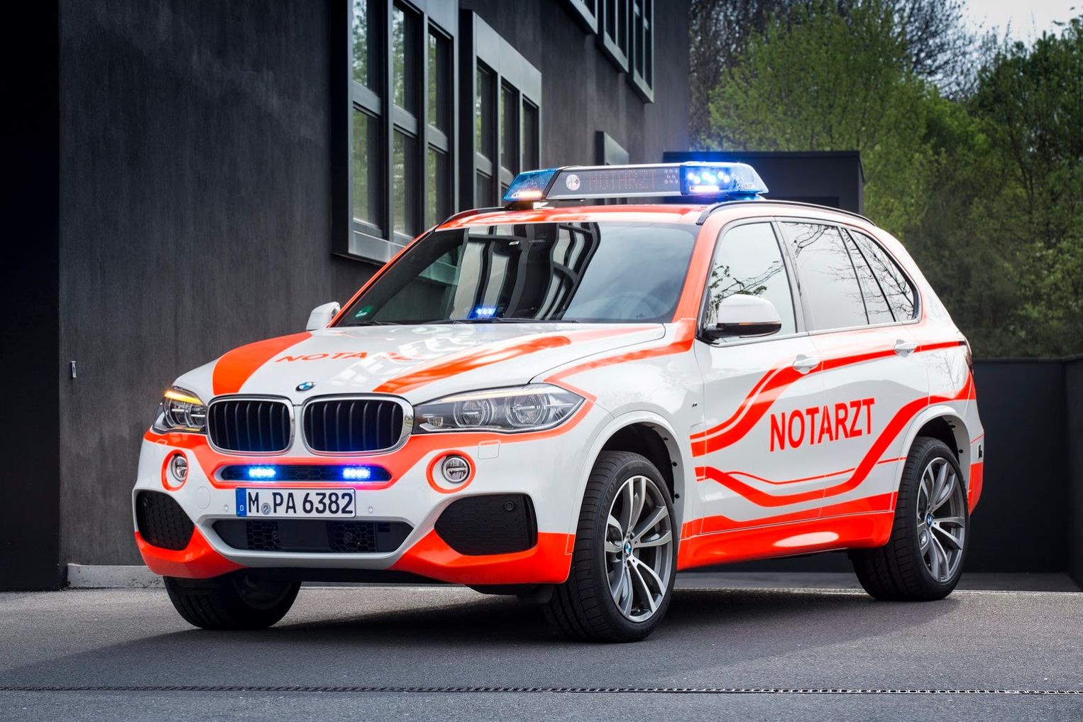 Doktor X5 és tűzoltó X3 az idei RETTmobil kiállításra. A BMW gyárilag átalakított modelljei nem olcsók, de szirénás autónak is beválnak.